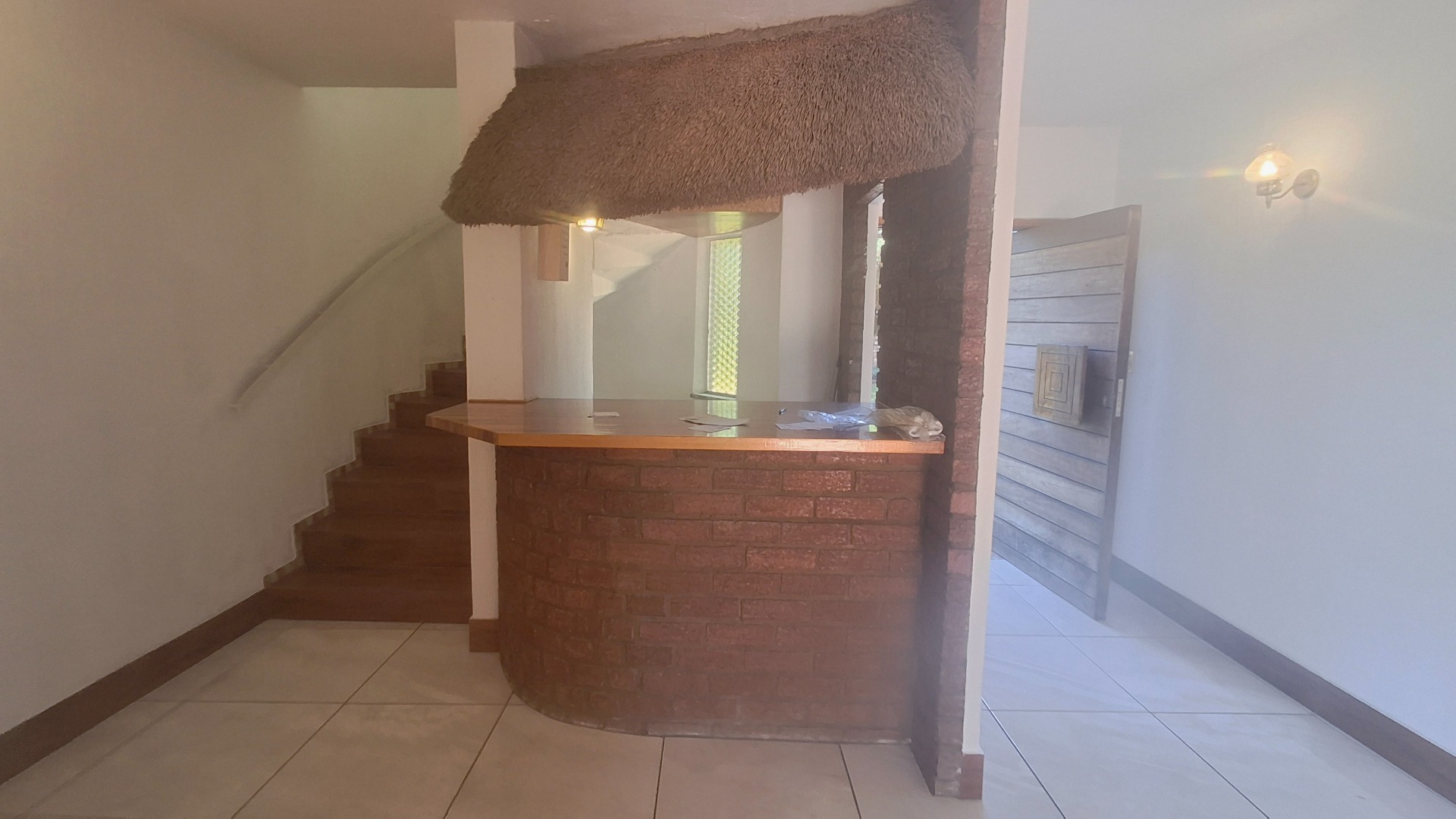 The interior further impresses with unique character elements, including a built-in bar with a charming thatched roof, perfect for social gatherings. A solid wooden staircase adds to the home's appeal. The functional kitchen, accessible via a sliding door, caters to daily needs, while the four well-proportioned bedrooms provide private retreats for the entire family. The two bathrooms are designed for convenience and comfort.