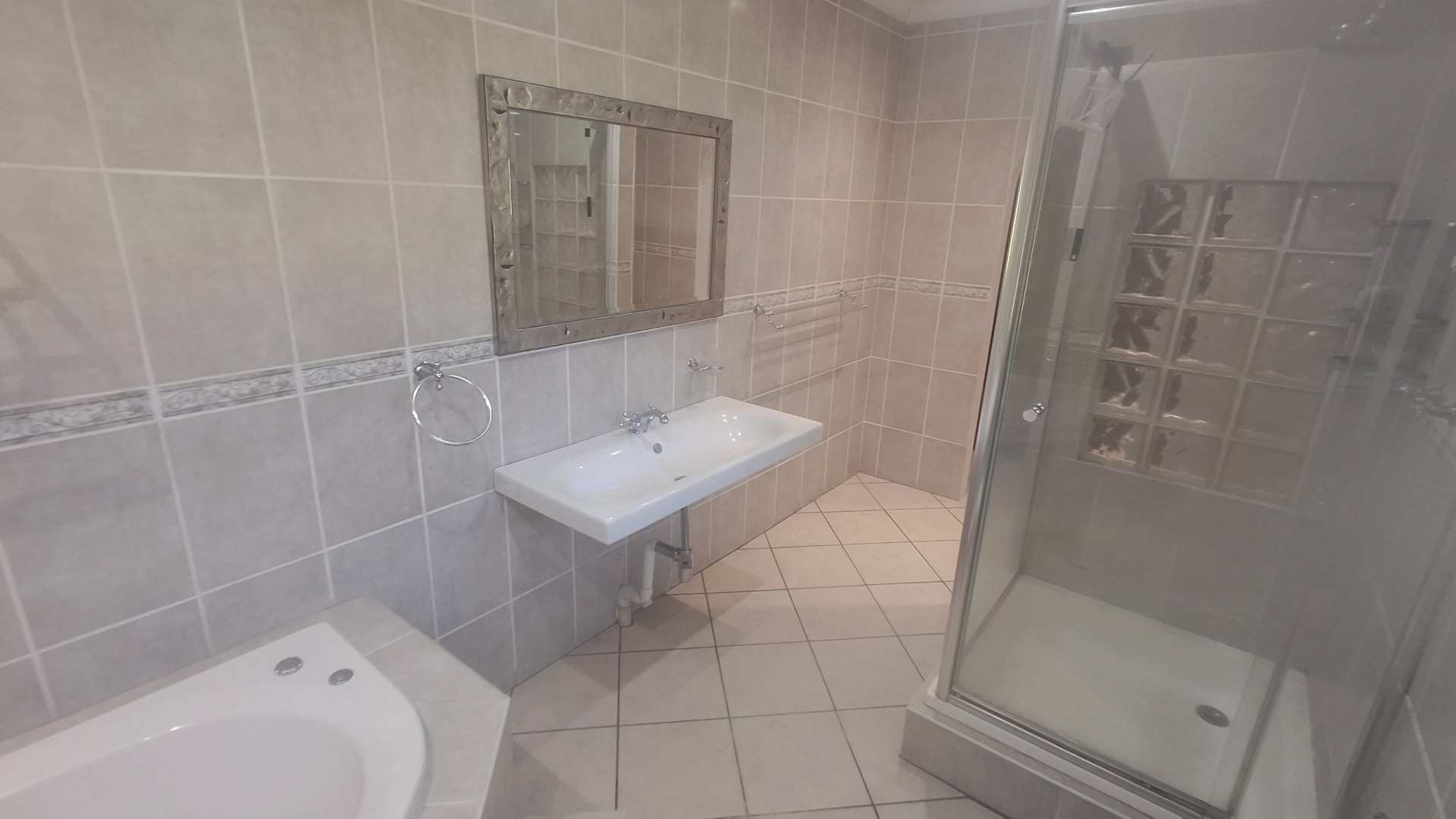 Discover this spacious 4-bedroom, 2-bathroom family home located in the desirable Brackenhurst, Alberton. Boasting a generous 342 sqm under roof on a 1501 sqm erf, this property offers ample space for comfortable living and entertaining. The modern exterior with its distinctive architectural style and well-maintained garden creates an inviting first impression, complemented by secure access gates. Inside, the home features clean tiled flooring throughout, two versatile lounges (including a dedicated family TV room), and a dining room, all bathed in natural light. The main living areas are enhanced by striking vaulted wooden ceilings and a cozy fireplace, creating a warm and welcoming atmosphere.