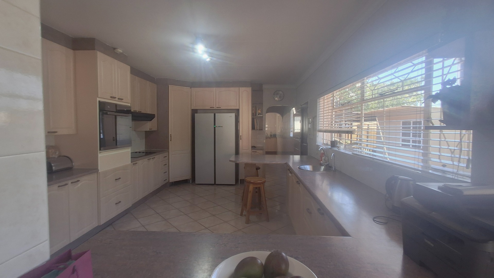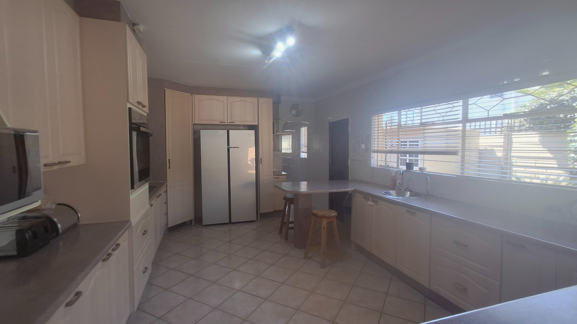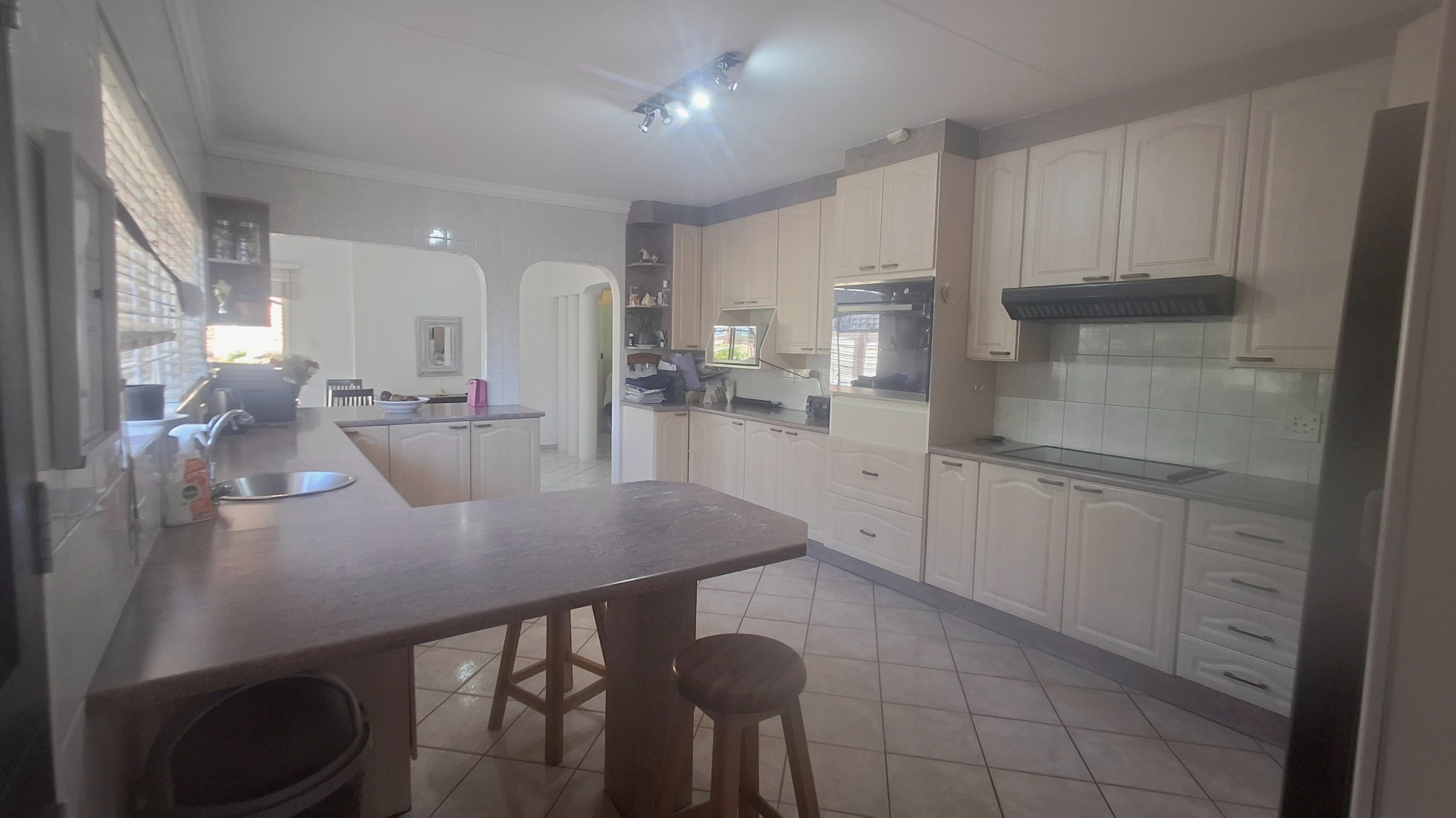 The immaculate kitchen is a true highlight, offering abundant cabinetry, a pantry cupboard, a breakfast nook, and a separate scullery for added convenience. Accommodation includes four well-sized bedrooms and two bathrooms, with the main bedroom boasting an en-suite bathroom and walk-in cupboard.