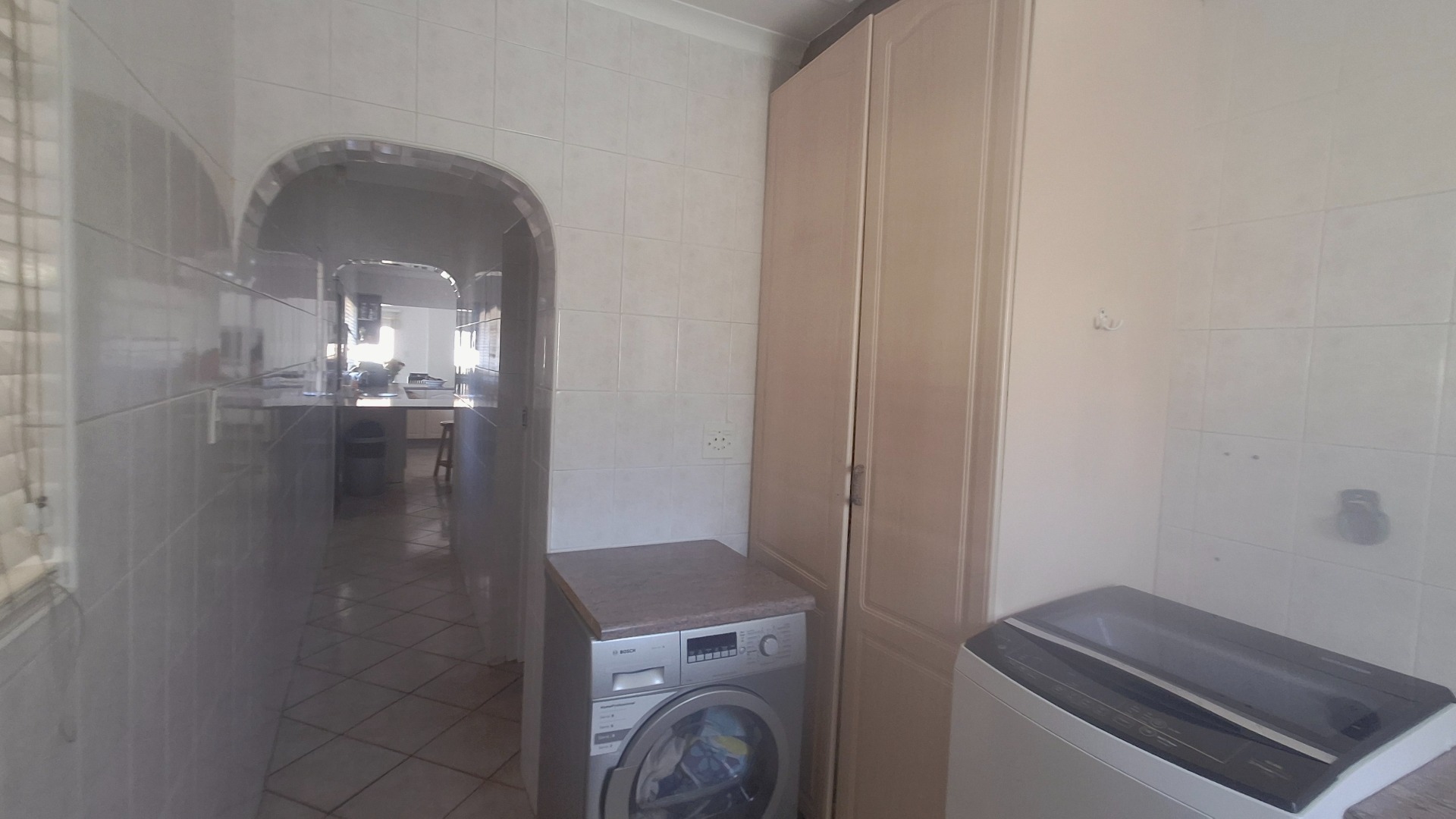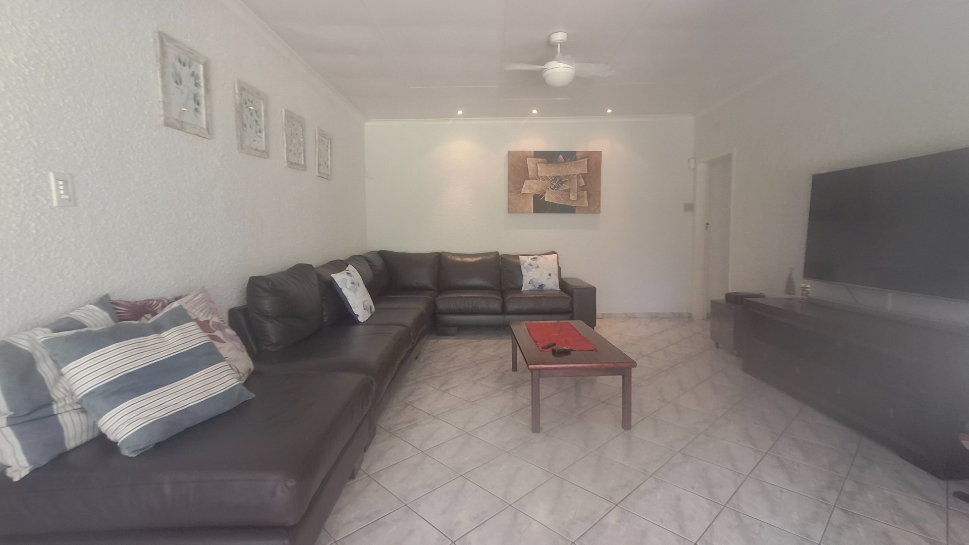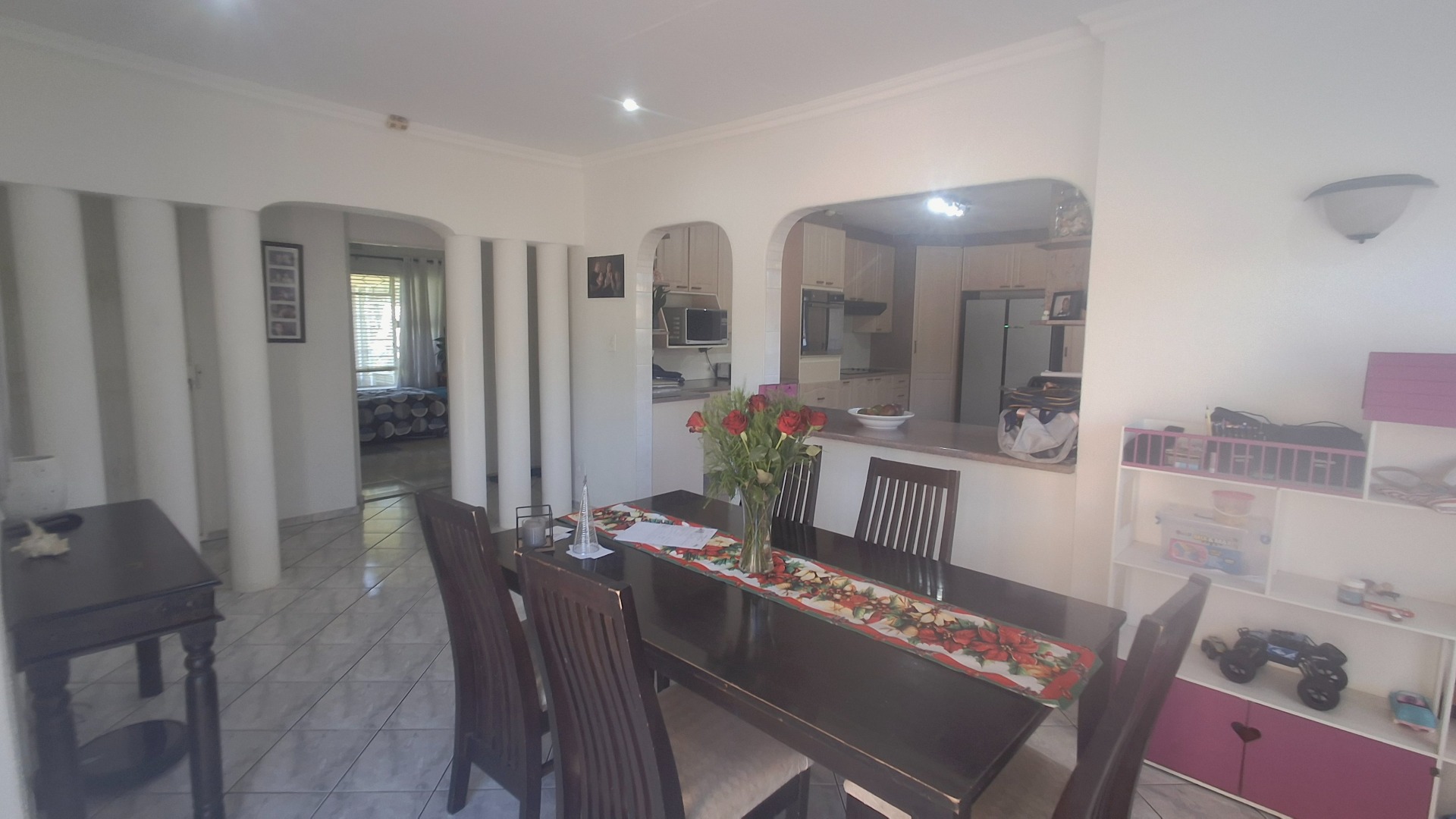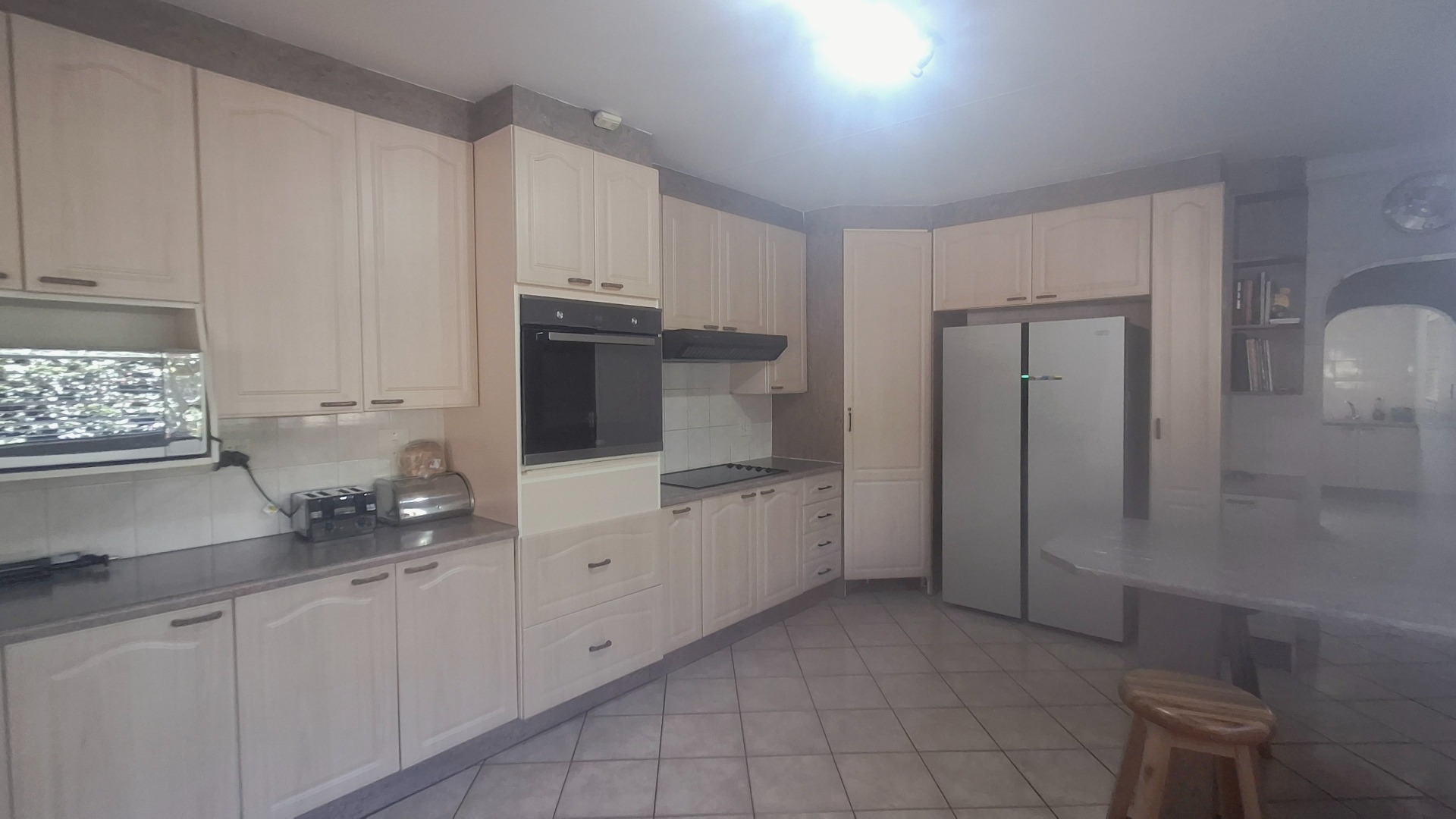 The immaculate kitchen is a true highlight, offering abundant cabinetry, a pantry cupboard, a breakfast nook, and a separate scullery for added convenience. Accommodation includes four well-sized bedrooms and two bathrooms, with the main bedroom boasting an en-suite bathroom and walk-in cupboard.