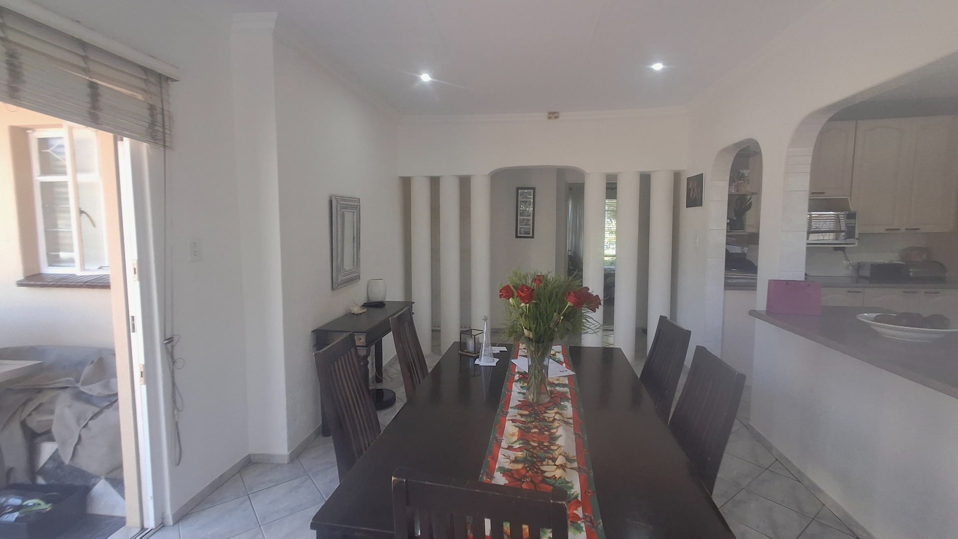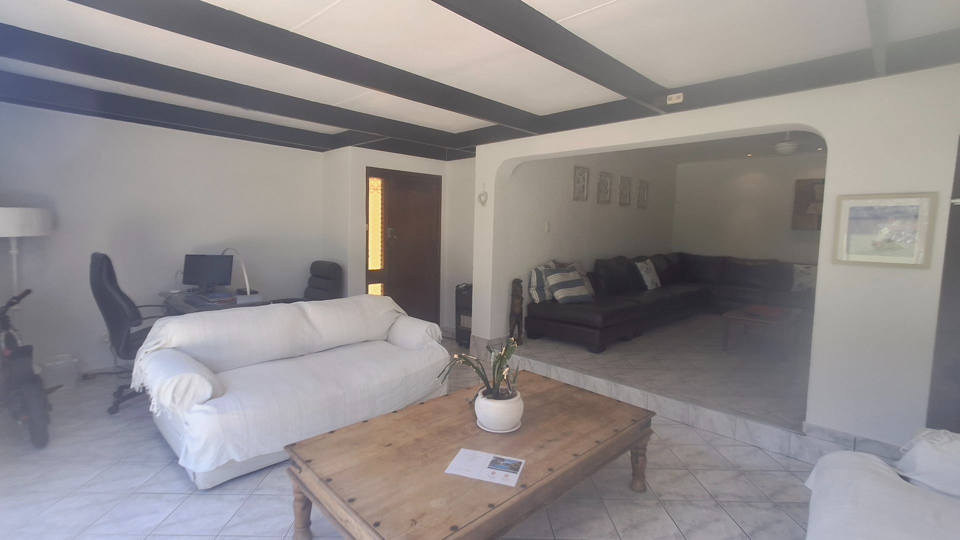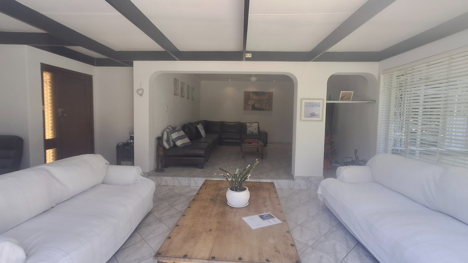 Step into a warm and inviting home designed for effortless family living and relaxed entertaining. The expansive lounge sets the tone with its generous proportions, while the sunlit family room flows seamlessly to the manicured garden. Here, a charming thatched entertainment area overlooks the solar-heated pool, creating the perfect backdrop for weekend braais and summer gatherings.