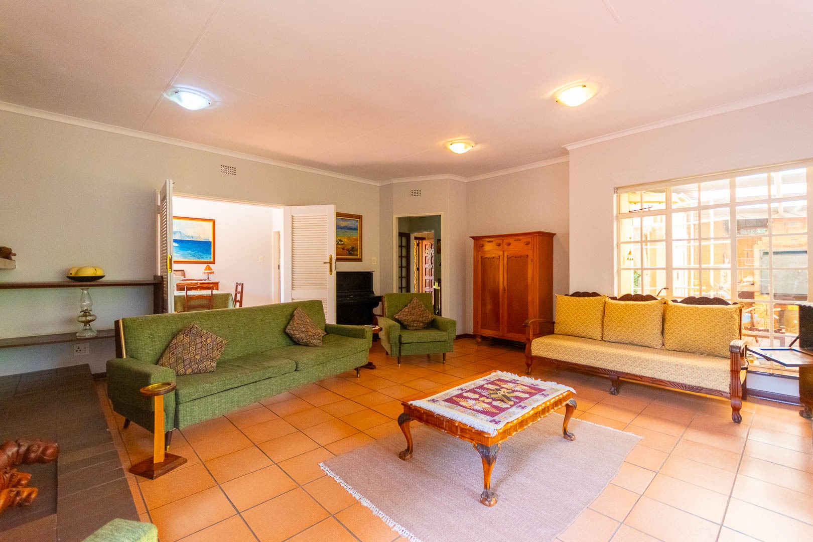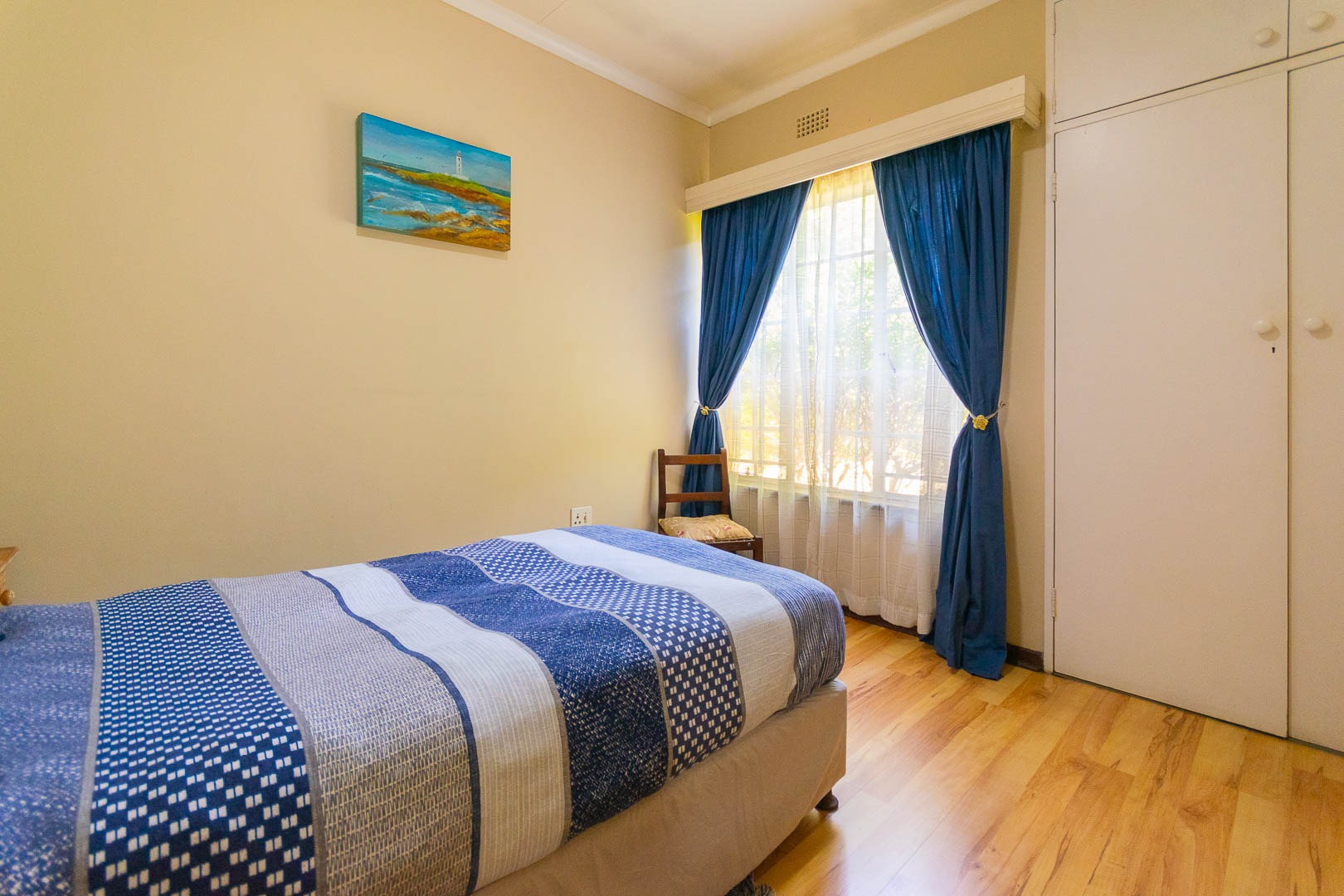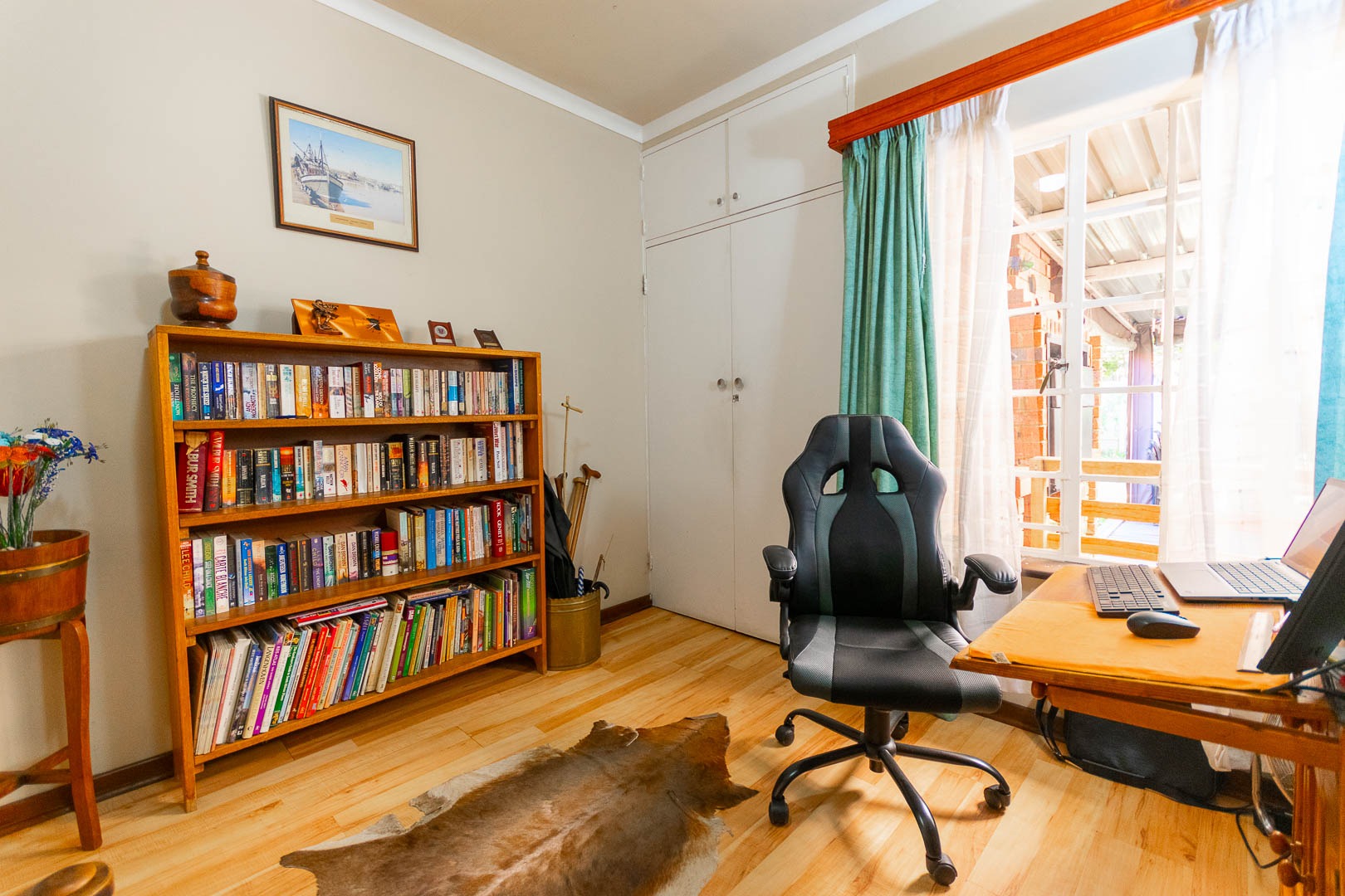 Step outside to a spacious yard with a built-in braai area, fully enclosed with drop-down blinds for year-round entertaining. Practical additions include an outdoor laundry room, a separate bathroom, and a storeroom.