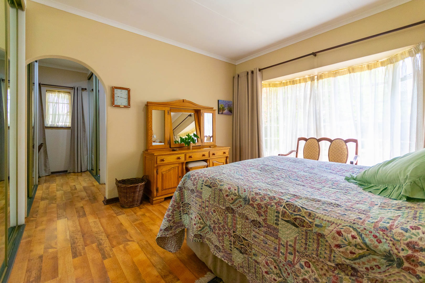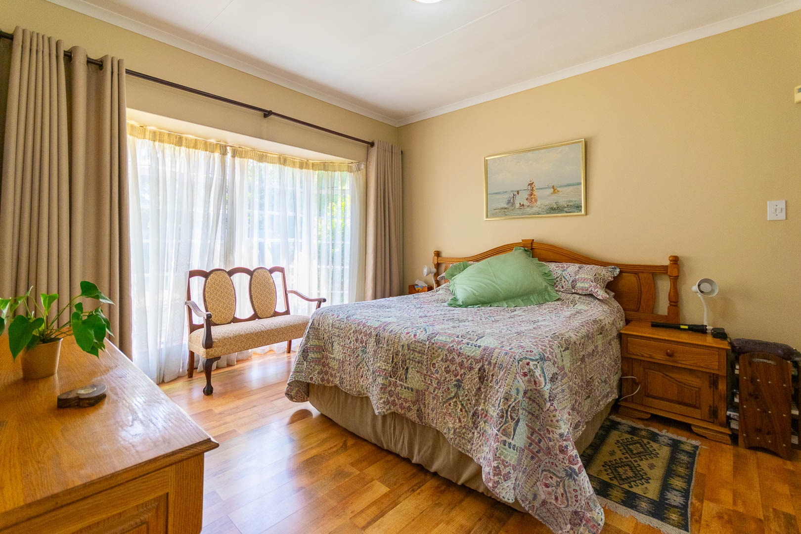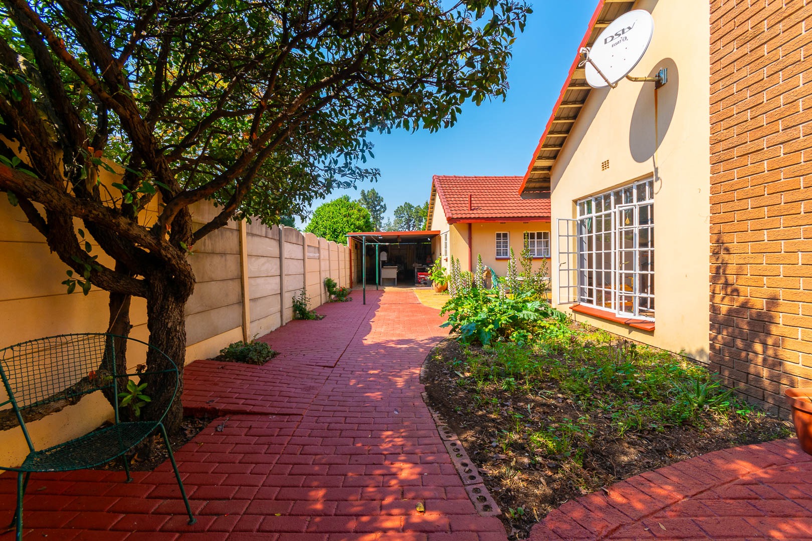 Parking is made easy with a double garage and carport, while security features such as burglar bars and high walls offer peace of mind.