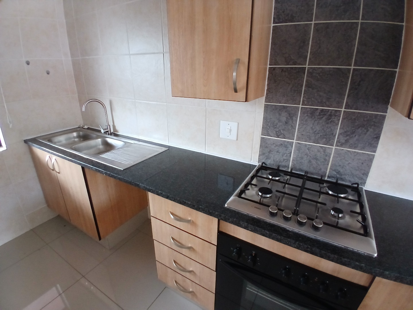 The main bedroom is generously sized, comfortably accommodating a queen-size bed, and includes built-in cupboards. The second bedroom fits a double bed and also offers plenty of storage space.