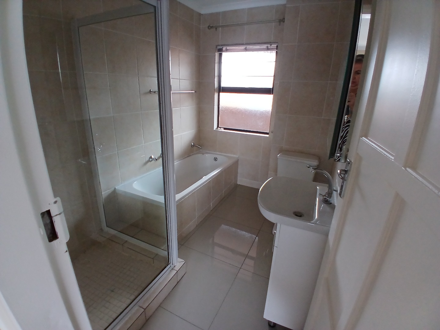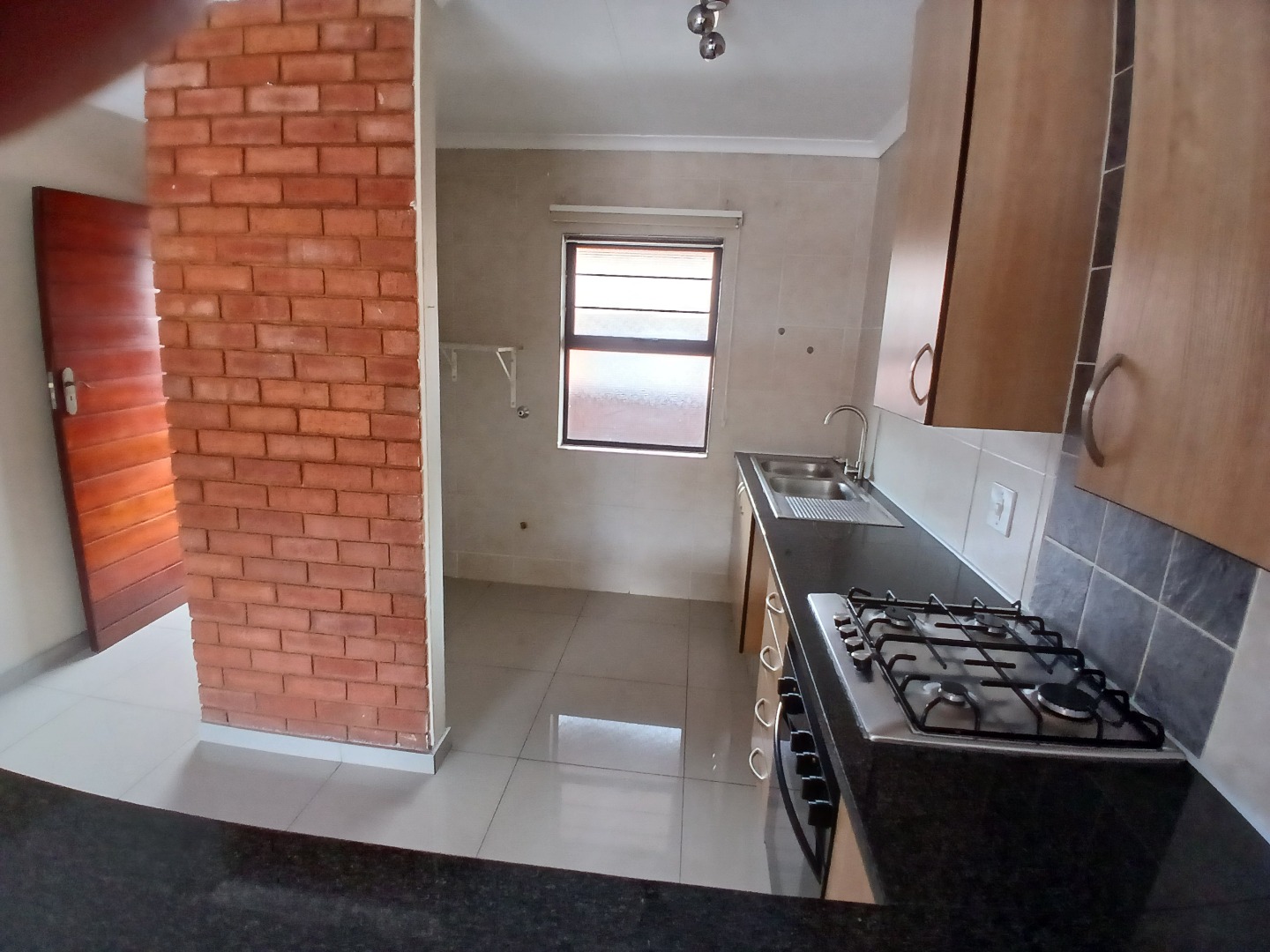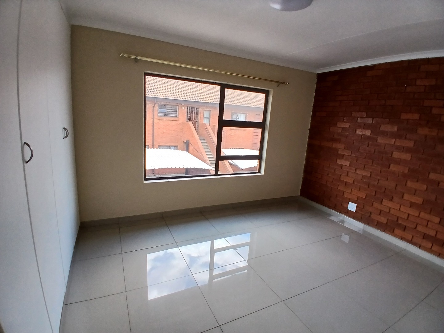 The main bedroom is generously sized, comfortably accommodating a queen-size bed, and includes built-in cupboards. The second bedroom fits a double bed and also offers plenty of storage space.