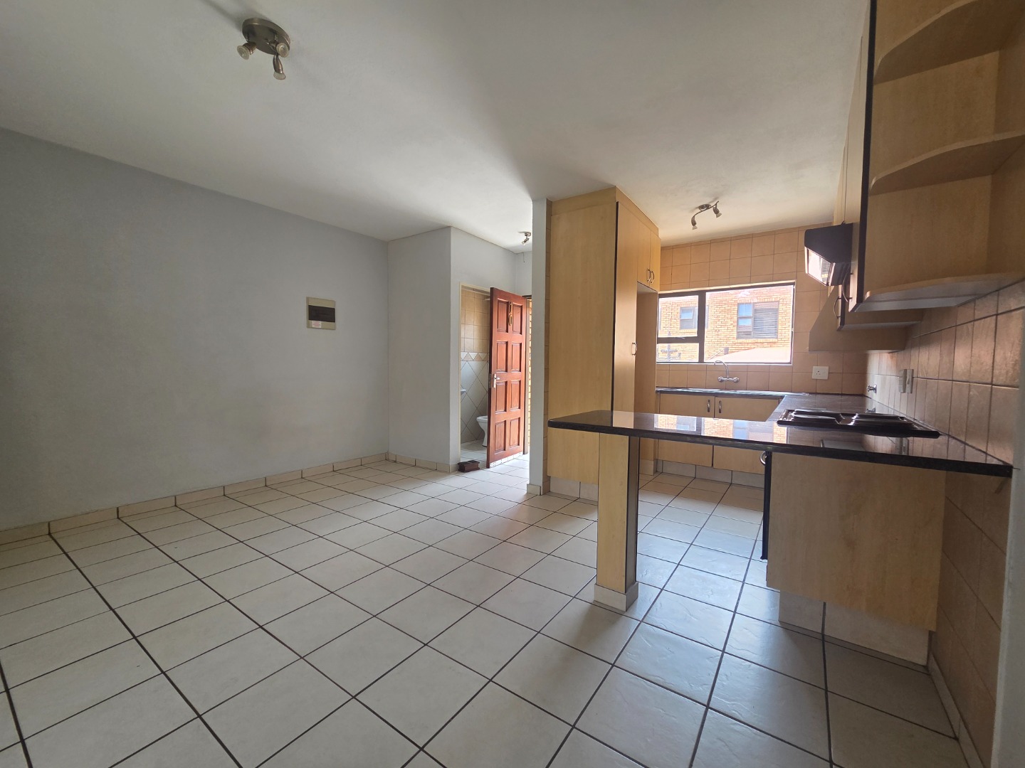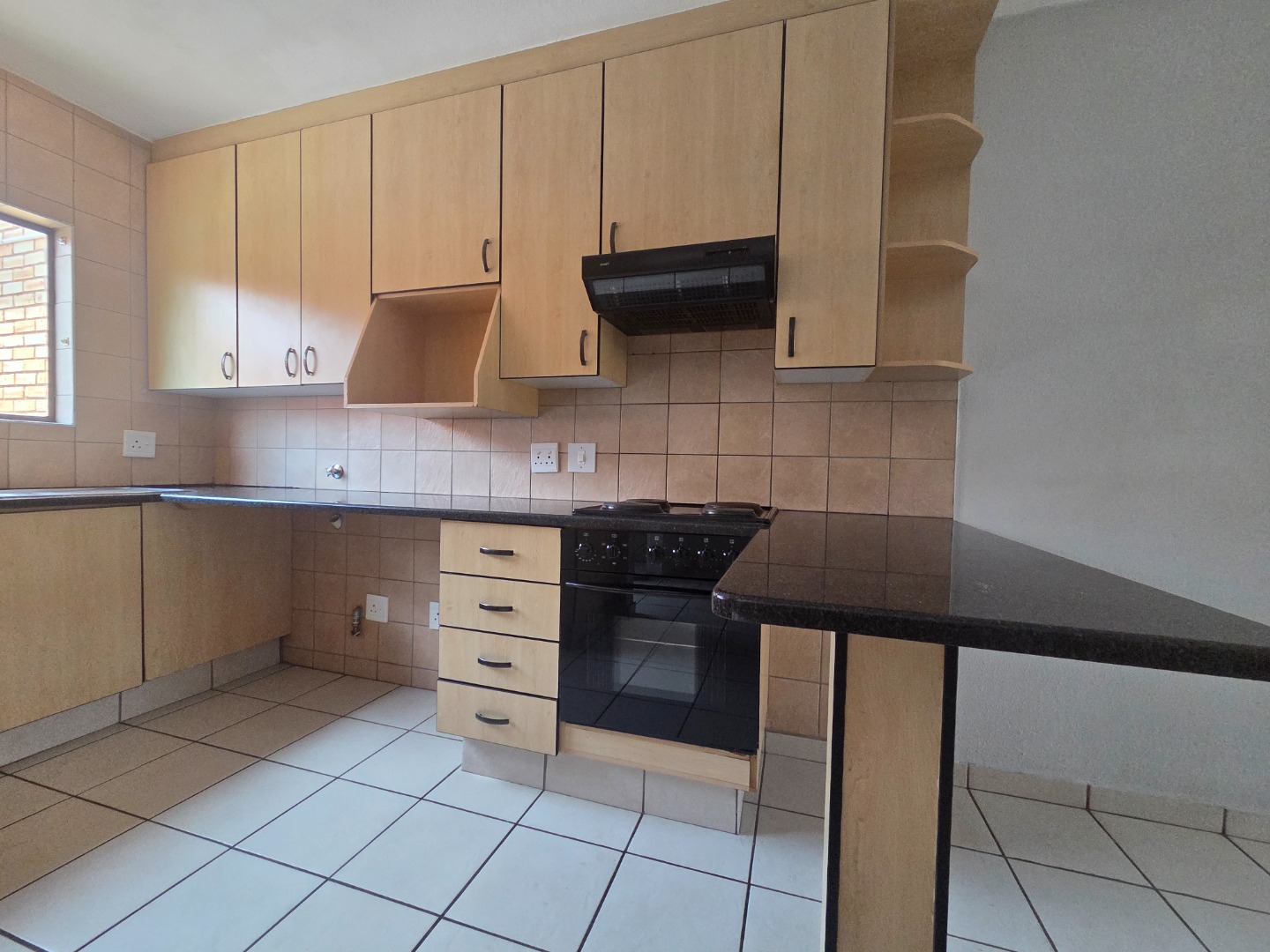 Downstairs, the open-plan kitchen is neatly finished with granite countertops and a breakfast nook, flowing seamlessly into the lounge area. The lounge opens through a sliding door onto a small private patio, ideal for relaxing or enjoying outdoor time. Storage space under the stairs adds extra functionality.