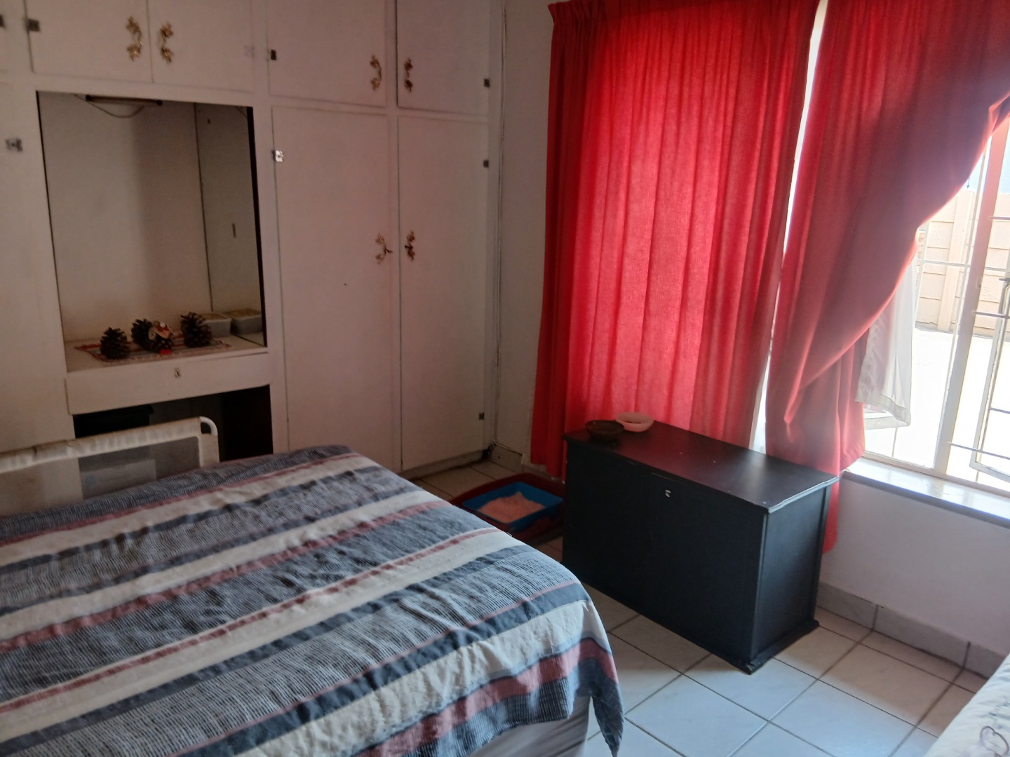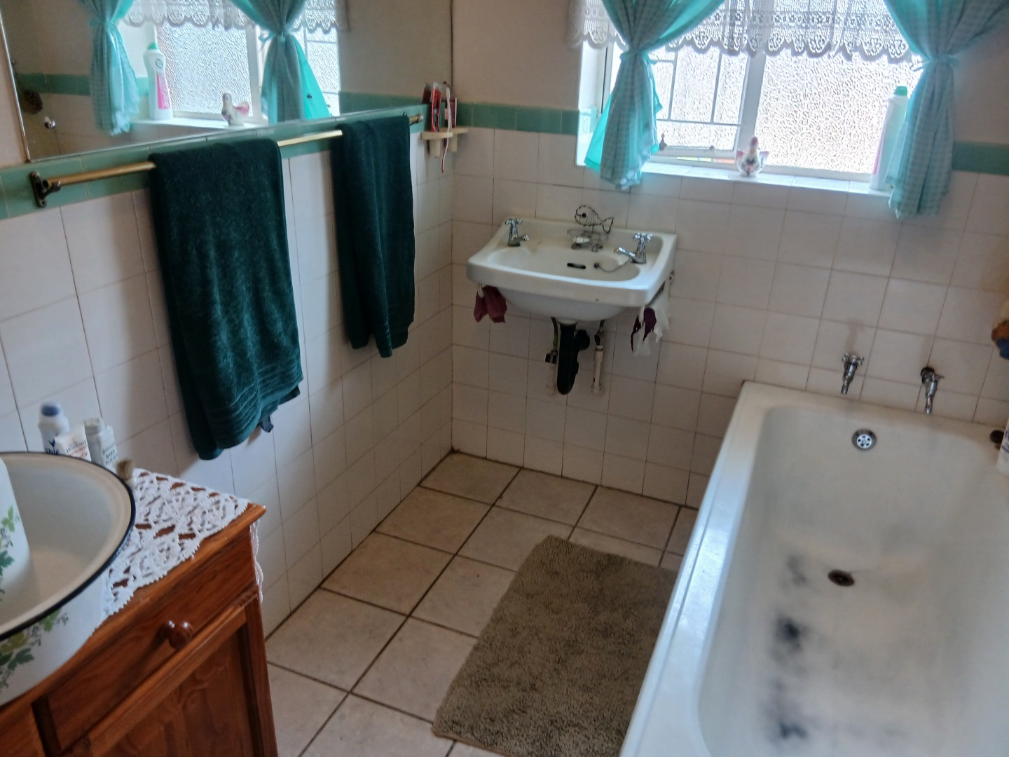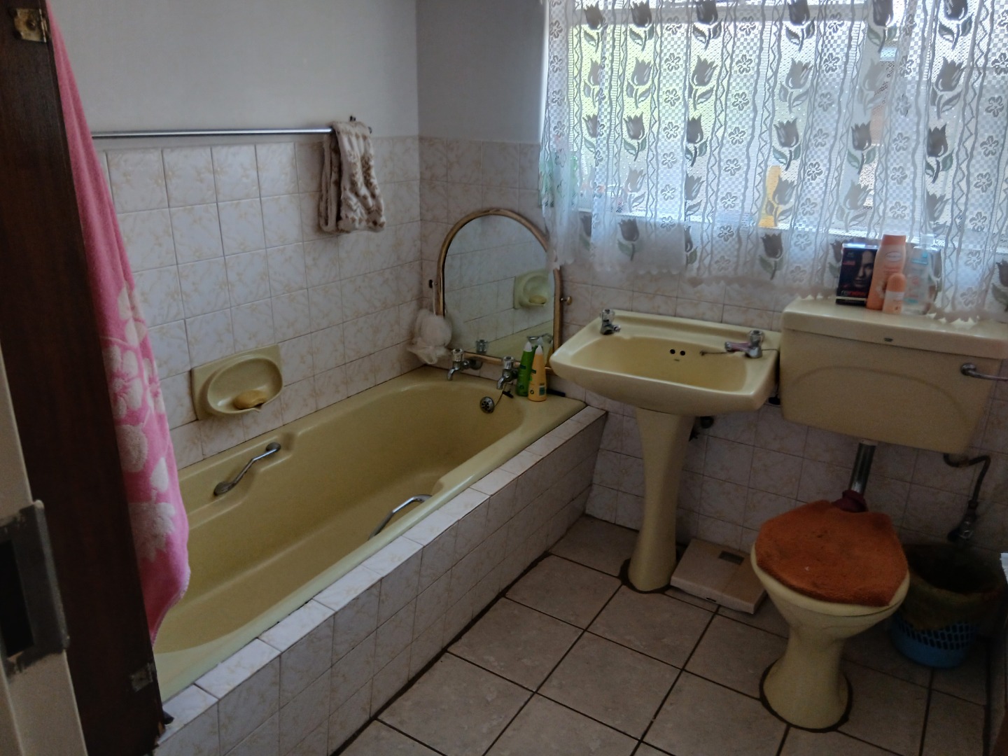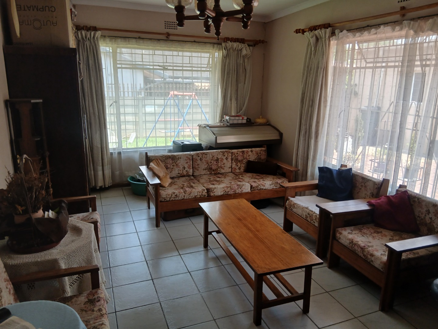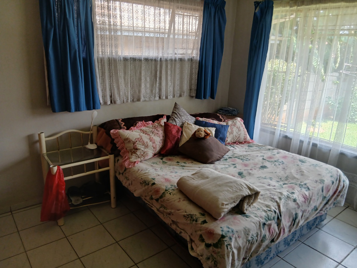 The country-style kitchen is a true highlight, featuring plenty of wooden cupboards, space for a table in the center, and ample room for all your electrical appliances. A door from the kitchen leads to an additional spacious area consisting of a large tiled lounge, bedroom, bathroom, and small kitchen. This section can be used as a flatlet or easily incorporated as part of the main house.