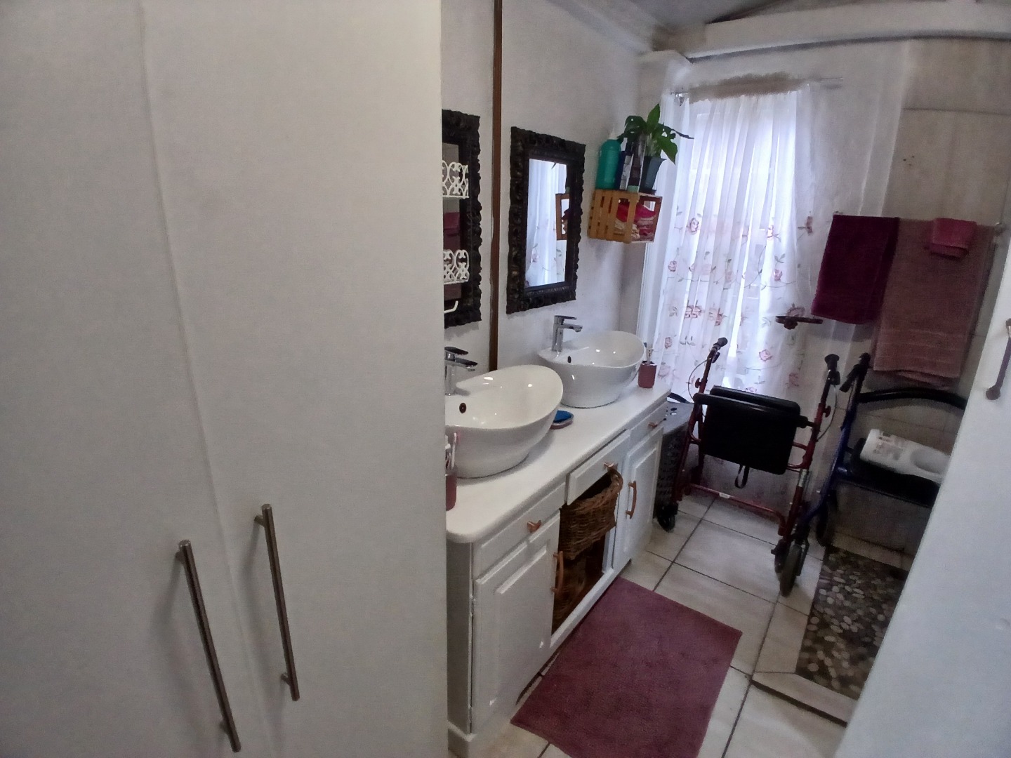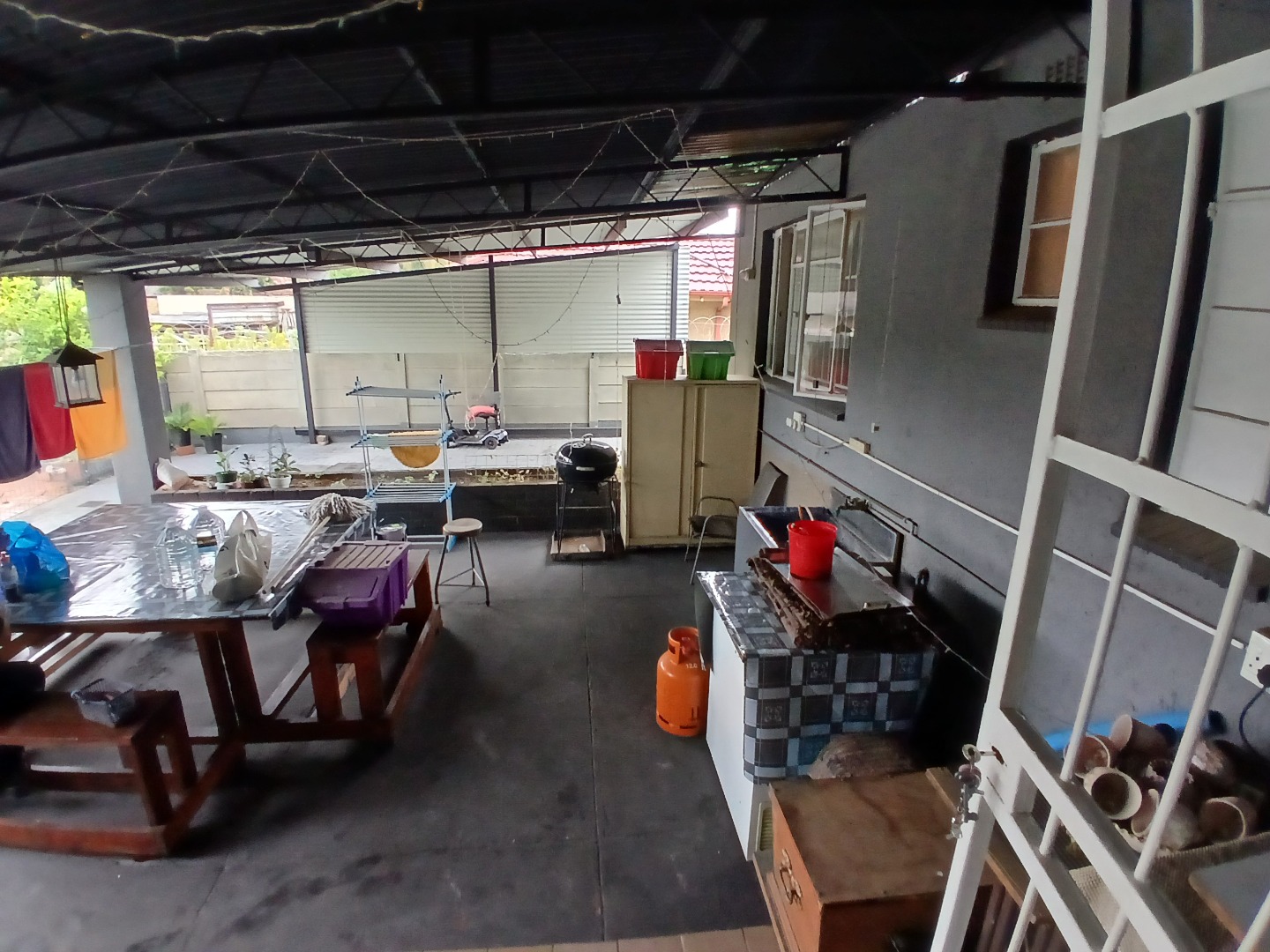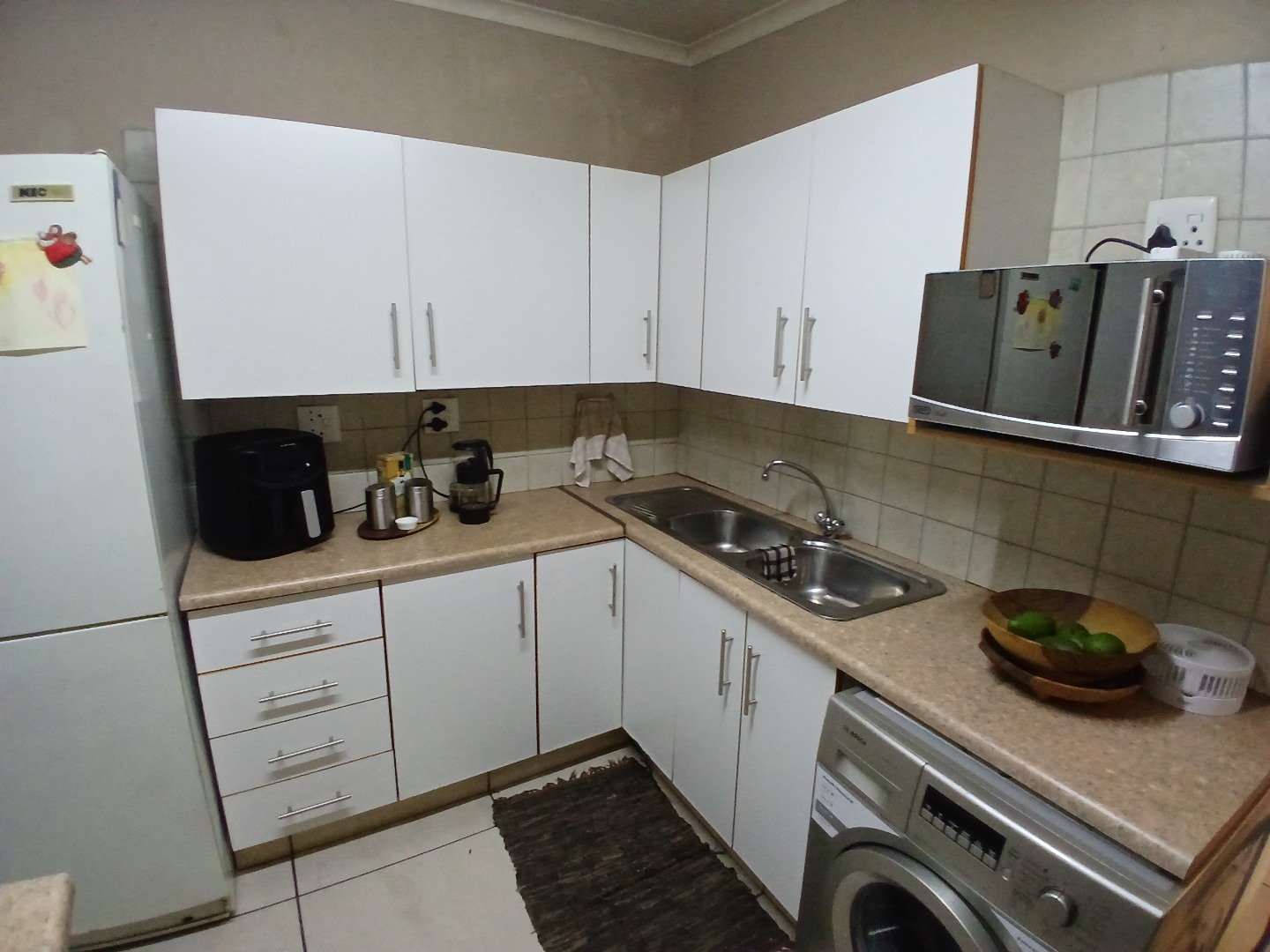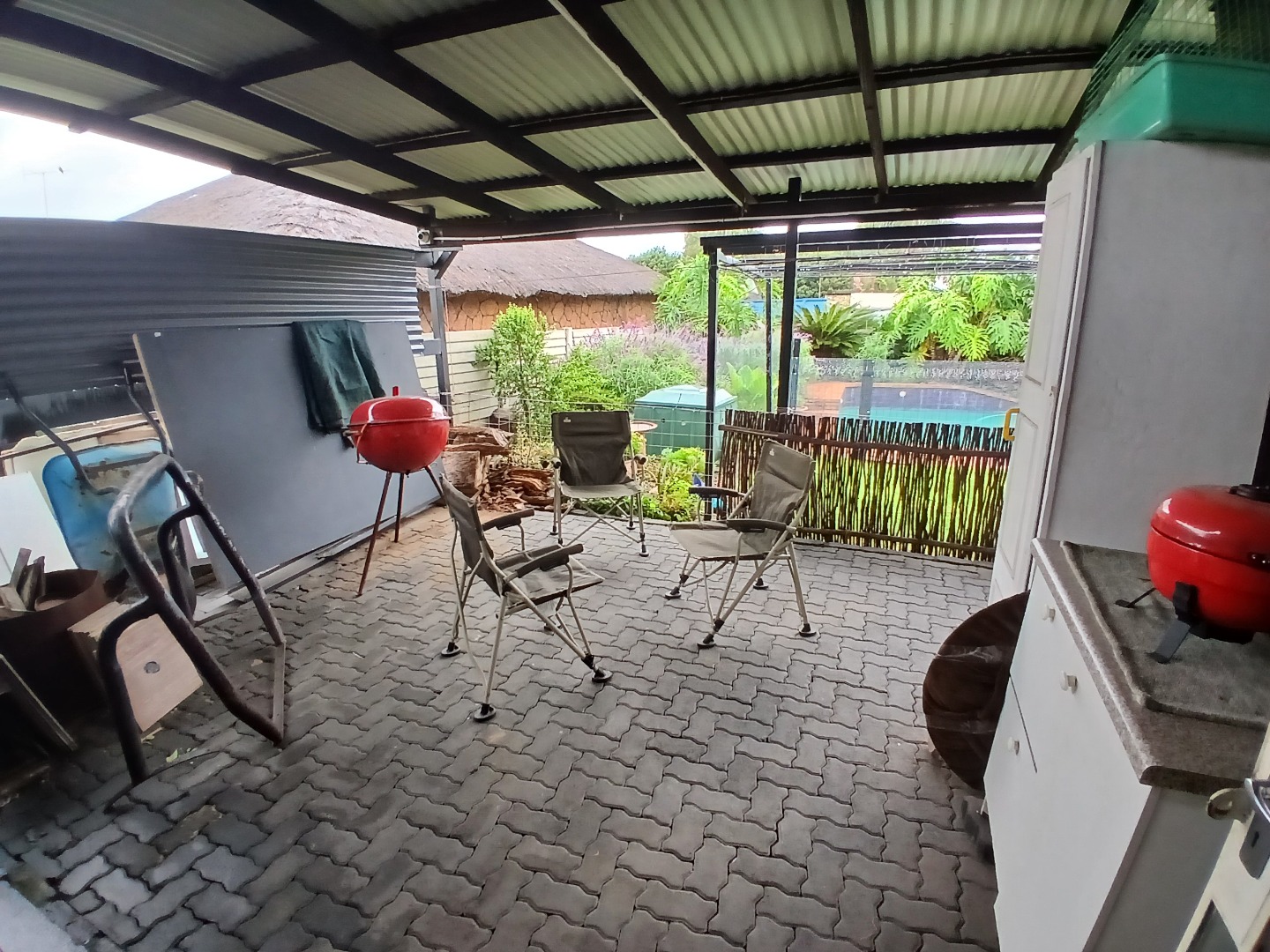 Ideal for an extended family or as an income-earning property. The main house features an open-plan lounge, dining area and large kitchen, 3 bedrooms and 3 bathrooms (each with shower, basin and toilet). Plenty of built-in cupboards. Outside offers a patio with built-in braai, groomed garden, pool, two separate entrances, carports and neat paving.