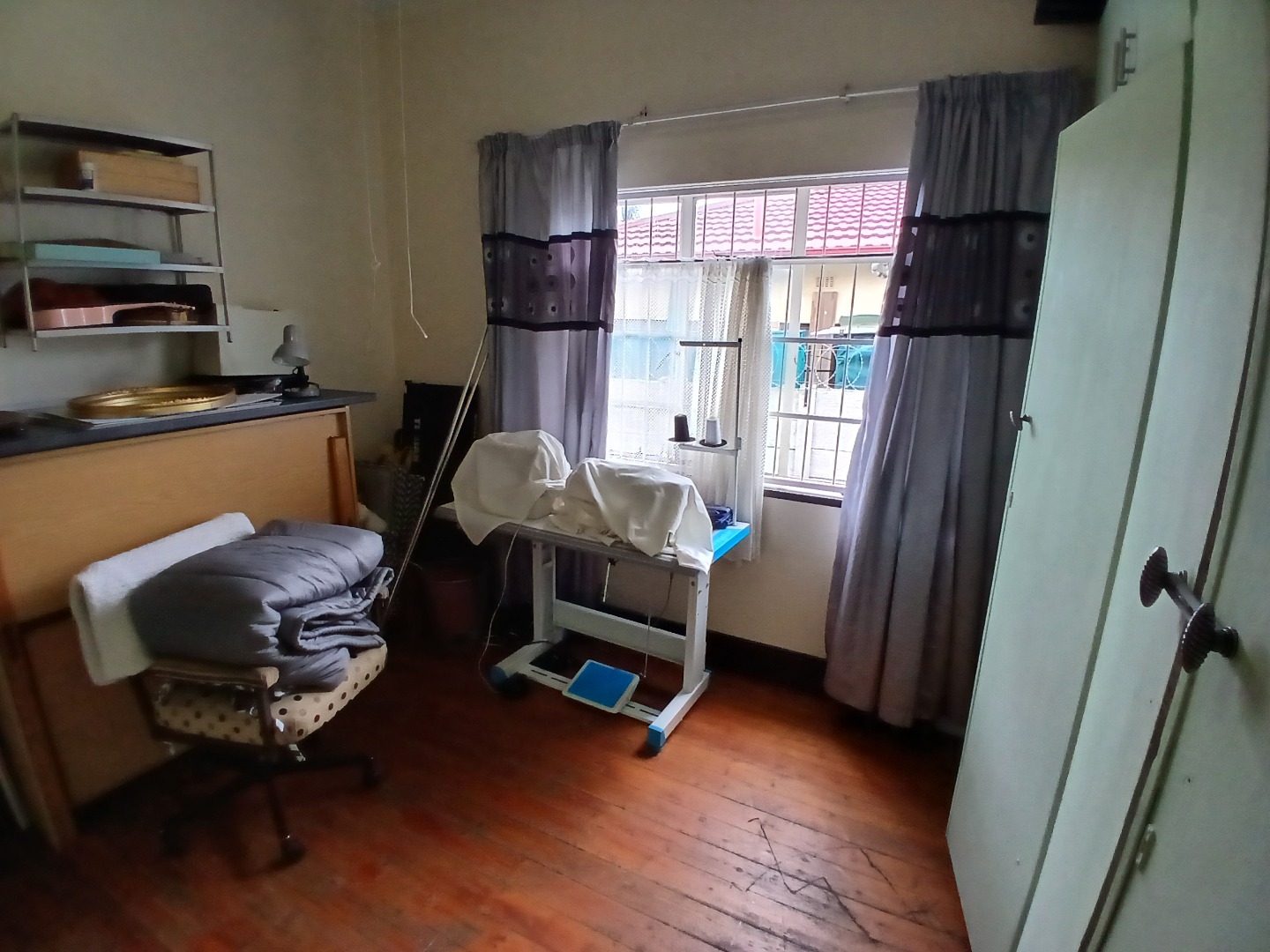 The tiled flat at the back comprises a lounge, kitchen, 2 bedrooms and a bathroom with shower, basin and toilet — perfect for rental or independent family living.