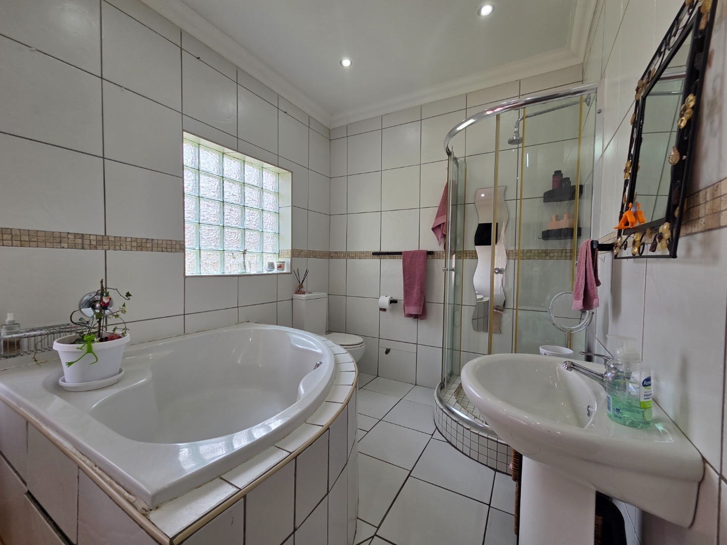 Step outside and discover the ultimate entertainment area! The large tiled lapa is fitted with roll-up blinds, a ceiling fan, built-in bar, and built-in braai – perfect for hosting friends and family all year round. The sparkling swimming pool and garden complete this outdoor haven.