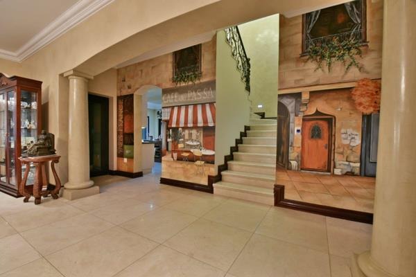 A spectacular double-volume entrance hall welcomes you into the home, where a designer staircase becomes an architectural focal point, leading to five exquisitely appointed bedrooms crafted for comfort and serenity.