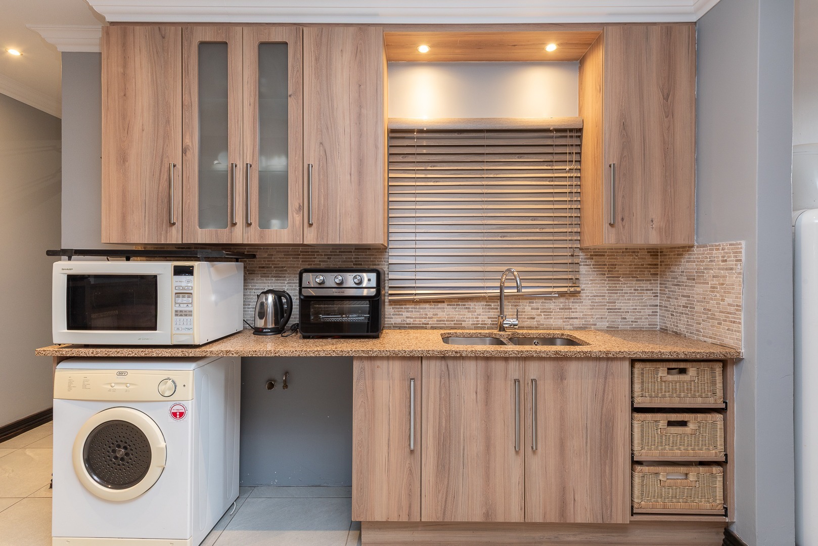 At the heart of this single-storey simplex lies the designer kitchen—a true showstopper—featuring :