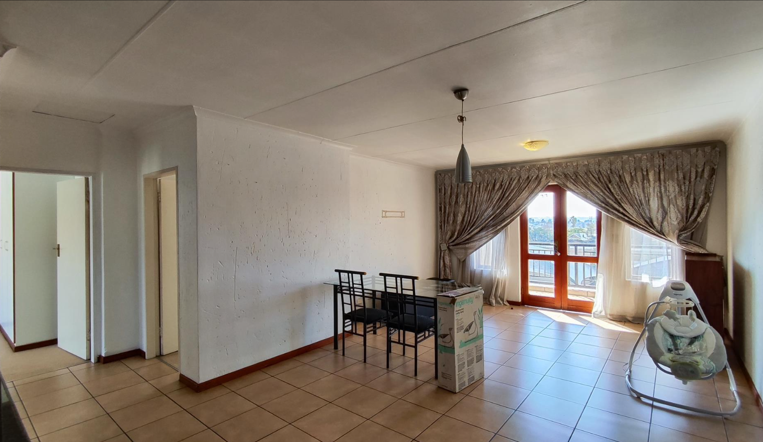 The property extends its appeal to the outdoors with a private balcony and a patio, perfect for enjoying the South African climate and outdoor dining. Residents of this complex benefit from access to a refreshing communal swimming pool, offering a perfect escape during warmer months, and a well-maintained garden area, providing a tranquil environment for leisure. The presence of sliding doors seamlessly connects the indoor living spaces with the outdoor areas, promoting an open and airy feel throughout the home.