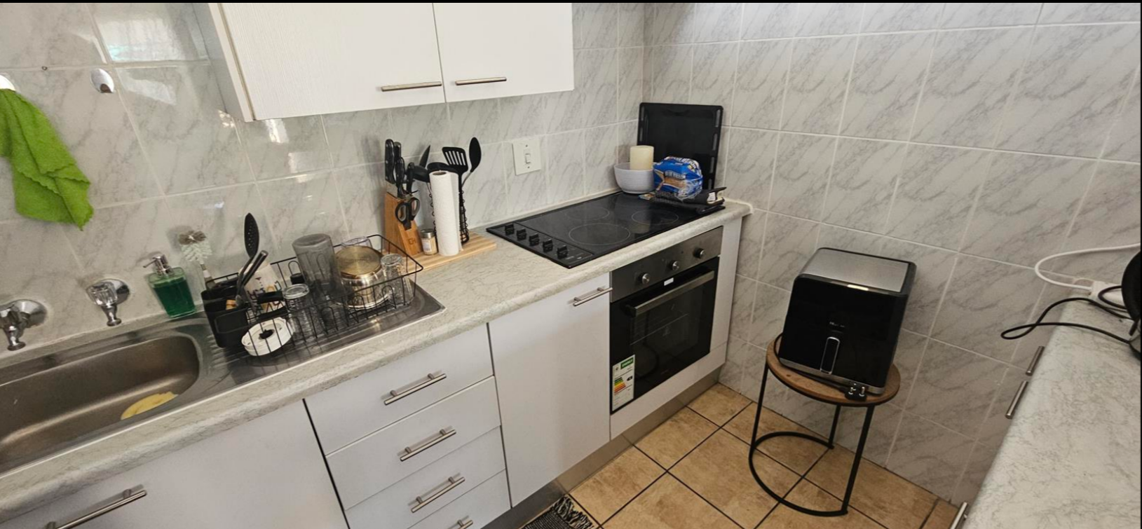 Discover comfortable suburban living in this inviting 2-bedroom, 1-bathroom home located in Meyersdal, Alberton. This well-maintained property offers a practical layout and access to desirable communal amenities, perfect for individuals or small families seeking a convenient lifestyle in a vibrant South African city. The exterior of the unit presents a neat appearance with modern tan and dark trim paintwork, complemented by a private fenced patio area. This outdoor space, featuring a brick-paved path and greenery, provides a secure and tranquil spot for relaxation. Enhanced security features, including window bars and security gates, offer peace of mind. A dedicated carport ensures convenient covered parking, while the complex boasts a well-maintained communal swimming pool surrounded by green spaces, ideal for leisure and recreation. Inside, the 59 sqm floor plan features an open-plan living and kitchen area, designed for modern functionality. Vaulted ceilings with exposed beams create a sense of spaciousness, while high windows allow ample natural light to fill the room. The kitchen is equipped with contemporary white cabinetry, light countertops, and an integrated electric stovetop and oven, providing a clean and efficient cooking environment. Tiled flooring extends throughout the main living areas, ensuring easy maintenance. The residence includes two comfortable bedrooms, each benefiting from good natural light and ample built-in wardrobe storage, promoting an organised living space. The single bathroom is appointed with modern grey wall tiling, a bathtub with an integrated shower and glass screen, and a functional pedestal sink and toilet suite. This pet-friendly property in Meyersdal offers a blend of private comfort and community amenities, making it an excellent opportunity for those looking to buy in Alberton. Its practical features and access to a communal pool enhance its appeal for a relaxed suburban lifestyle. Key Features: * 2 Bedrooms, 1 Bathroom * 59 sqm Floor Size * Open-plan Living & Kitchen * Modern Kitchen Cabinetry * Vaulted Ceilings * Private Fenced Patio * Communal Swimming Pool * Dedicated Carport * Pet-Friendly * Suburban Meyersdal Location