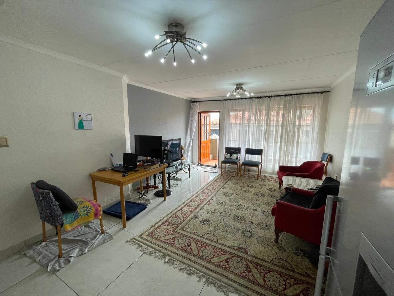This modern 88.00 sqm apartment offers secure and comfortable living within a well-maintained complex in Meyersdal, Alberton. As part of a gated community, residents benefit from 24-hour security, an access gate, electric fencing, and a dedicated security post, ensuring peace of mind. The complex features a contemporary aesthetic with light-colored buildings, red tile roofs, paved driveways, and manicured landscaping, creating an inviting first impression. Step inside to discover an inviting open-plan layout that seamlessly connects the living, dining, and kitchen areas. The kitchen is a highlight, boasting modern two-tone cabinetry, white countertops, and integrated appliances including an oven and hob. Tiled flooring extends throughout the living spaces, complemented by large windows and special doors that invite ample natural light. This thoughtful design promotes a fluid and functional environment for daily living and entertaining. The residence comprises two comfortable bedrooms and two well-appointed bathrooms, providing practical accommodation. A private balcony extends the living space outdoors, offering a personal retreat. Additional features include convenient storage options and two dedicated parking spaces, ensuring ease of access for residents. Residents can enjoy a communal braai area, perfect for social gatherings. The property is fibre-ready and equipped with satellite and TV antenna connections. The complex also includes domestic rooms, adding to the comprehensive amenities. Nestled in the suburban heart of Meyersdal, Alberton, this location offers a desirable lifestyle with convenient access to local amenities and transport routes. Key Features: * 2 Bedrooms, 2 Bathrooms * 88.00 sqm Floor Size * Open-Plan Living Area * Modern Kitchen with Integrated Appliances * Private Balcony * 2 Parking Spaces * Gated Community with 24-Hour Security * Fibre Ready * Communal Braai Area * Storage