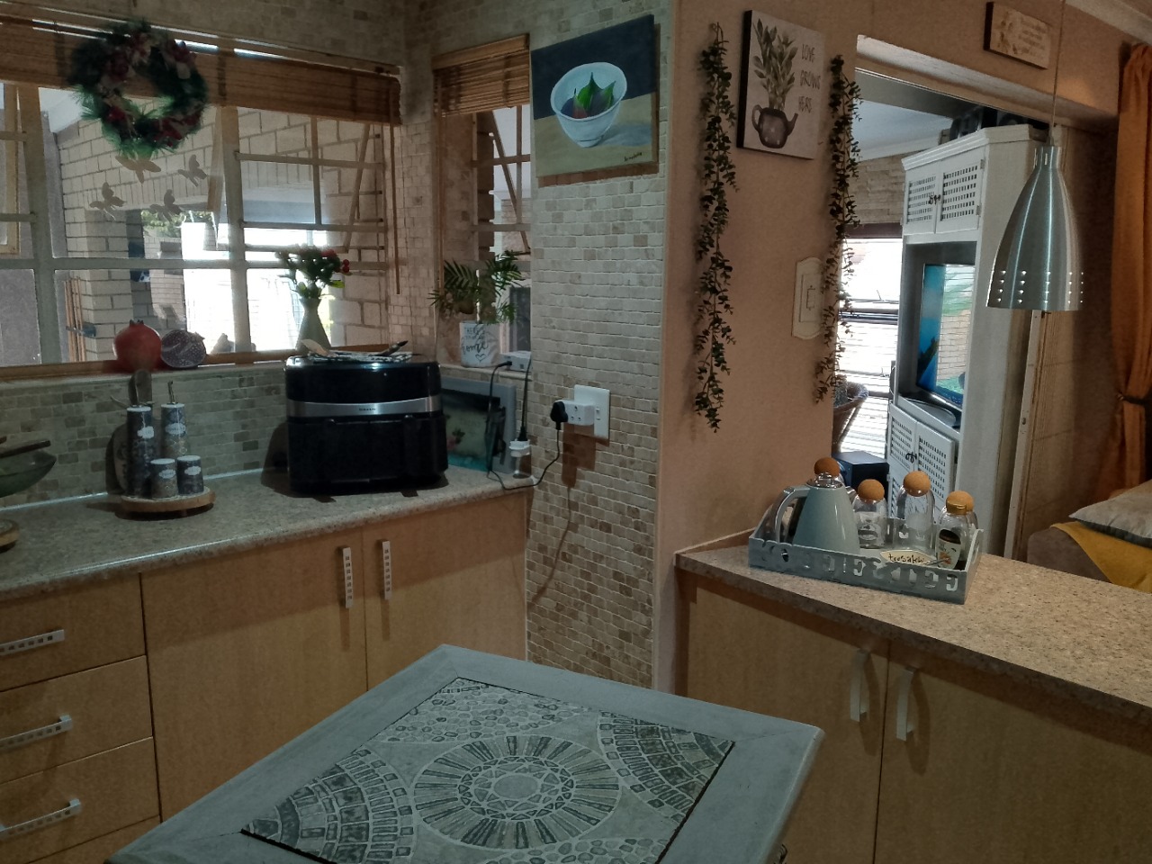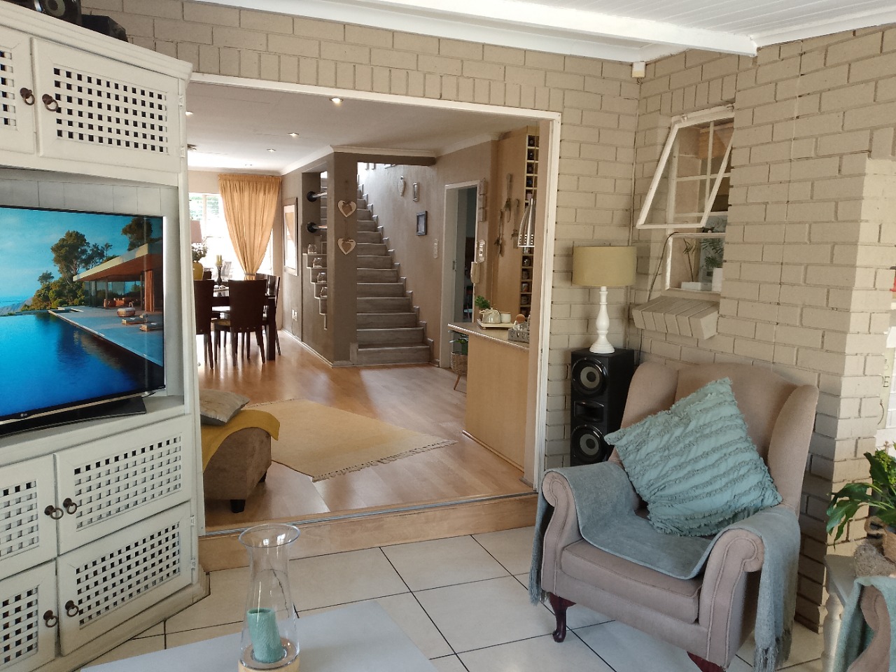 The home itself is not in an actual complex. It is a stand alone cluster with it's own gate. You enter into a small entrance area leading through to two lounges and a cozy dining area. The kitchen is well fitted and also open plan to the living space.