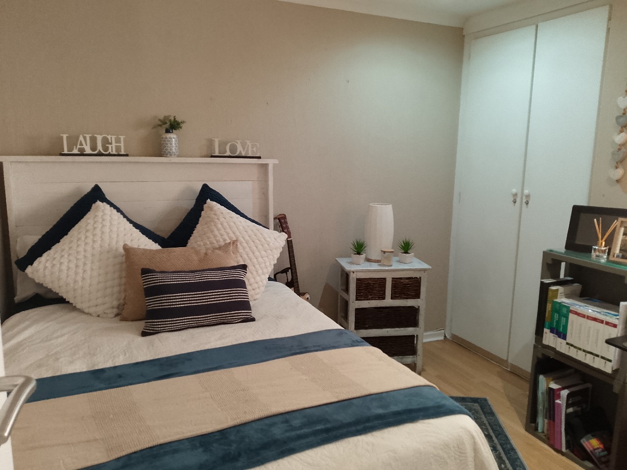 Downstairs it offers two bedrooms with built in cupboards, They share an en suite bathroom with a toilet shower and basin.