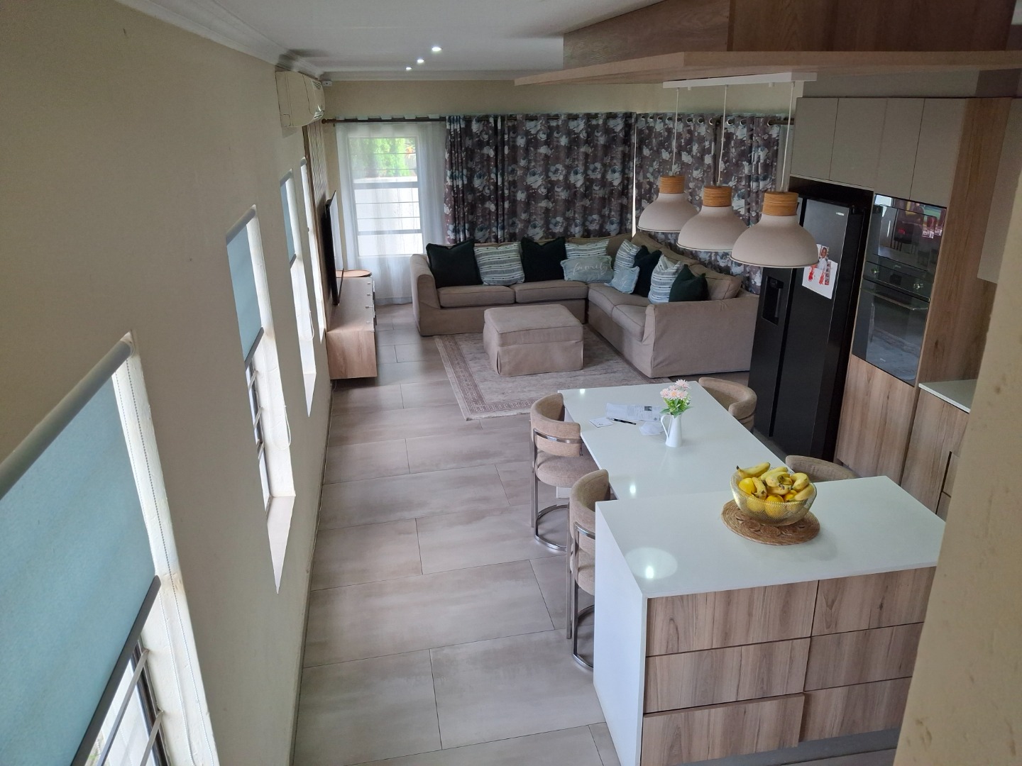 Outside, you’ve got your own little garden – perfect for relaxing or letting your furry friends play, because yes, pets are allowed here! And get this, there’s a built-in braai and a dedicated braai room, so you’re all set for those awesome South African get-togethers. You’ll also love the air conditioning for those hot days, and the best part? This home comes with solar panels and a battery inverter, meaning fewer worries about loadshedding and lower electricity bills. How cool is that?