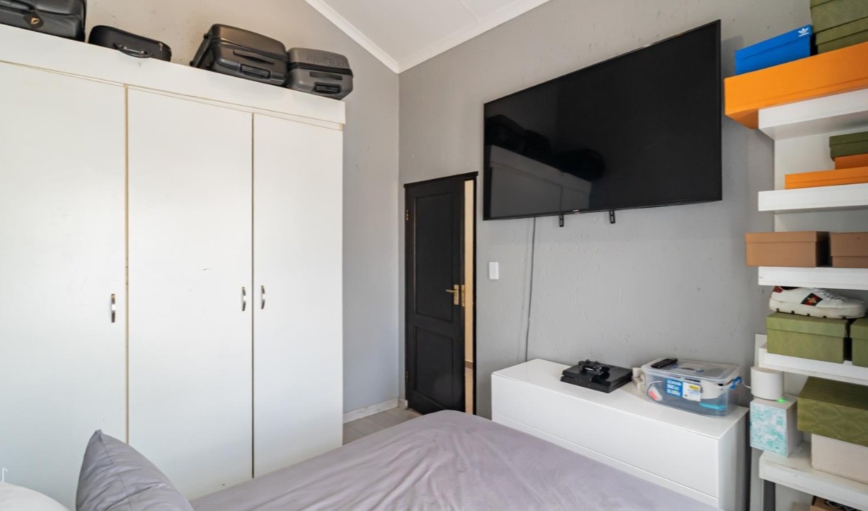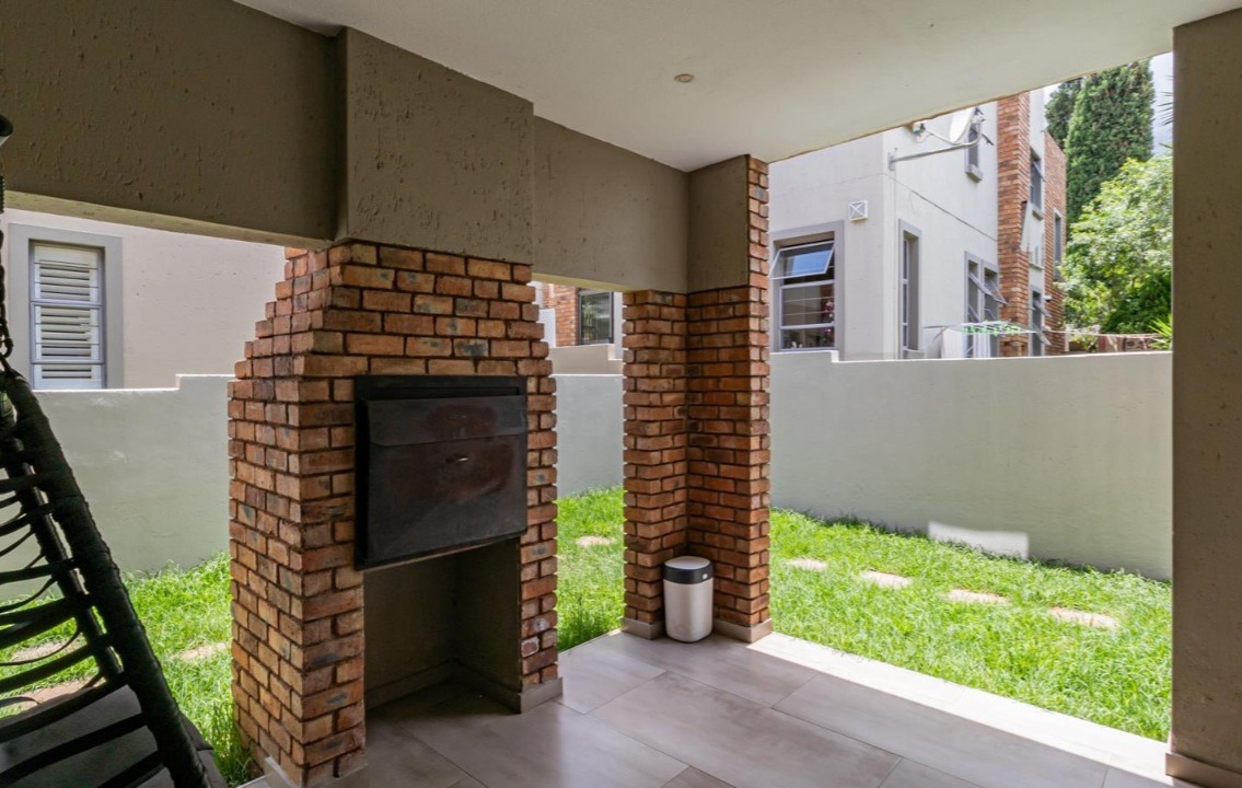 Beyond the interiors, a private patio extends to a charming garden, offering a tranquil outdoor haven for relaxation or al fresco dining. The property is securely situated within a complex, benefiting from an access gate, electric fencing, and a fully walled perimeter, ensuring peace of mind. With a dedicated garage and additional parking, convenience is paramount. This pet-friendly abode invites you to experience a lifestyle of elegance and ease in a coveted South African locale.