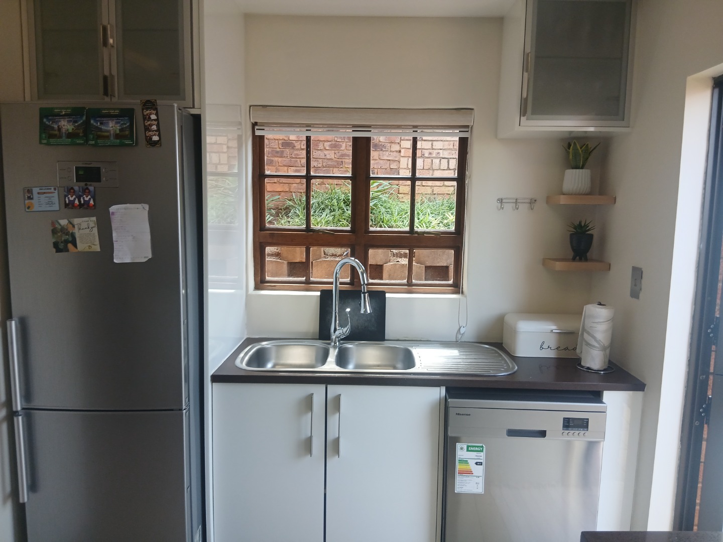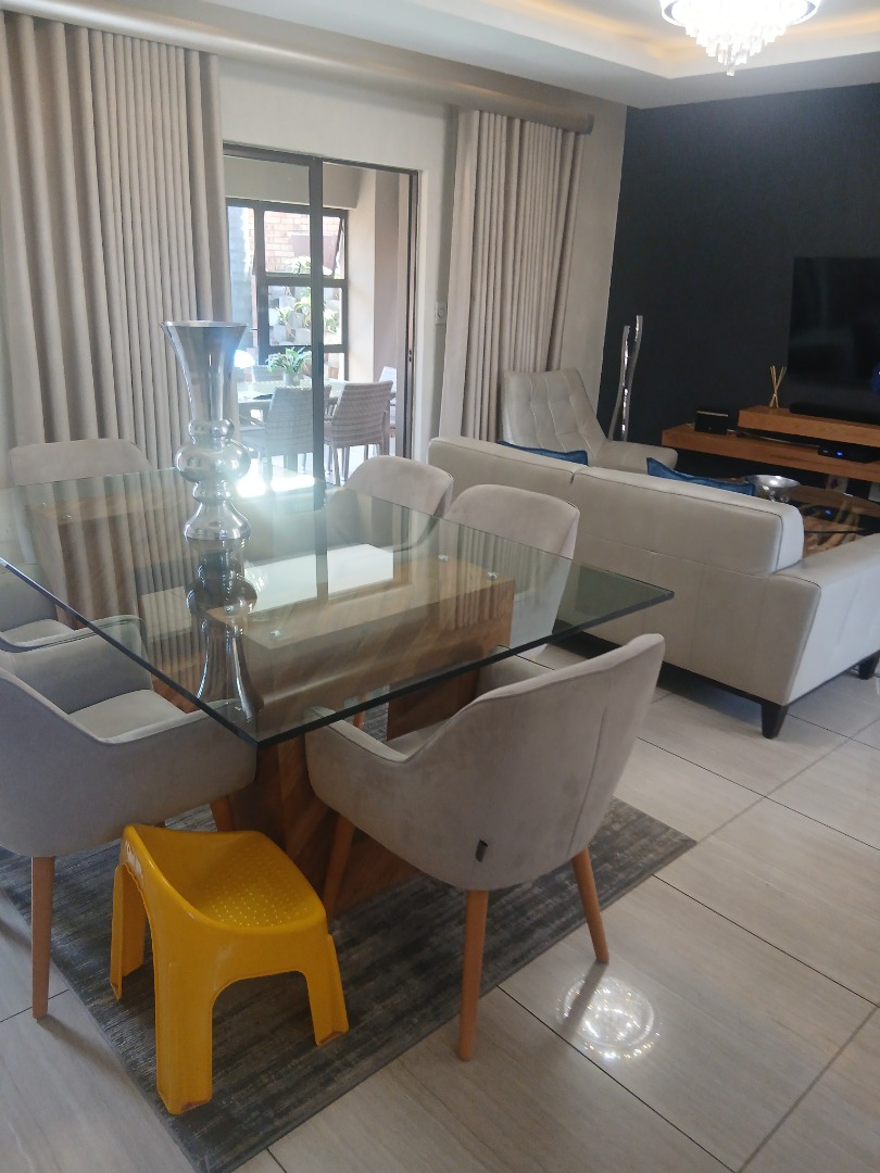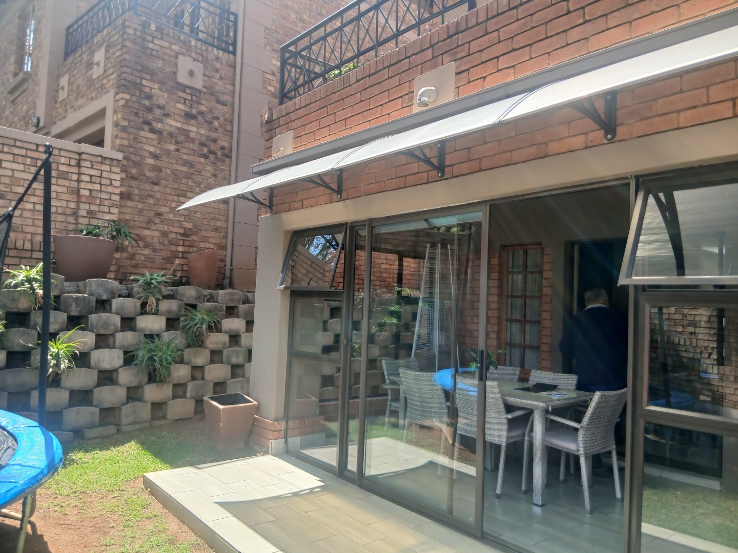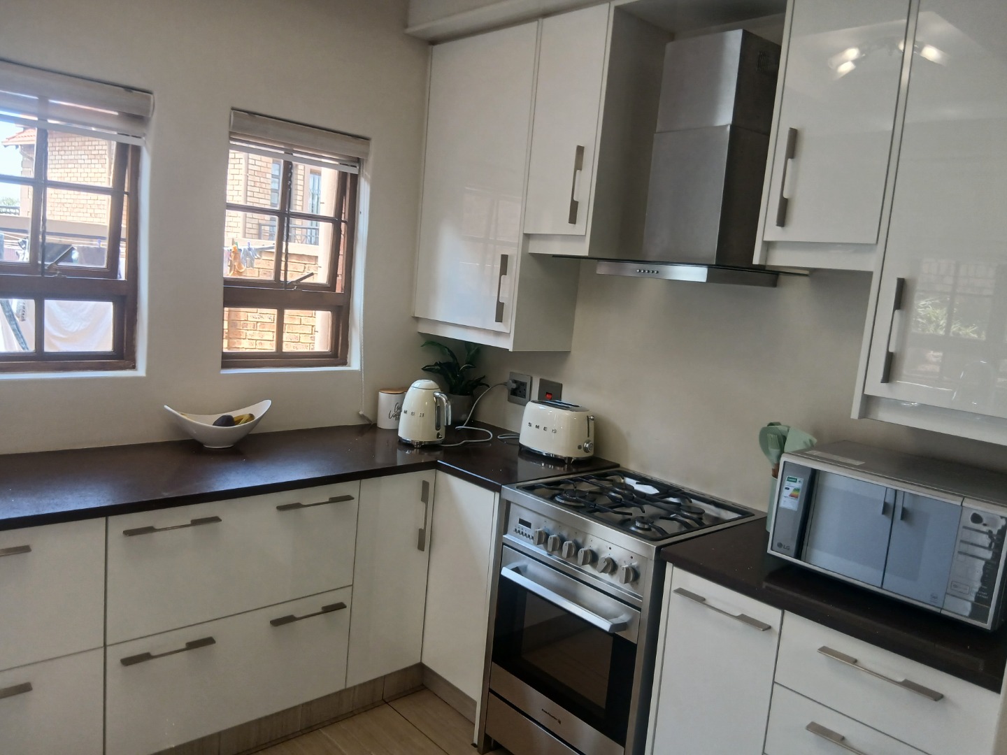 What a gem! Well kept double story cluster in a security complex with dedicated parking spots for visitors. Modern tiled open plan living areas, patio, modern kitchen and guest toilet downstairs. The stairs lead to the upstairs lounge, main spacious bedroom with ample cupboards and full modern en-suite bathroom. The other 2 spacious bedrooms have built in cupboards and share a bathroom with a shower, basin and toilet. The bonus is servant quarters with built in cupboards and bathroom. Make an appointment today to view this stunning property!