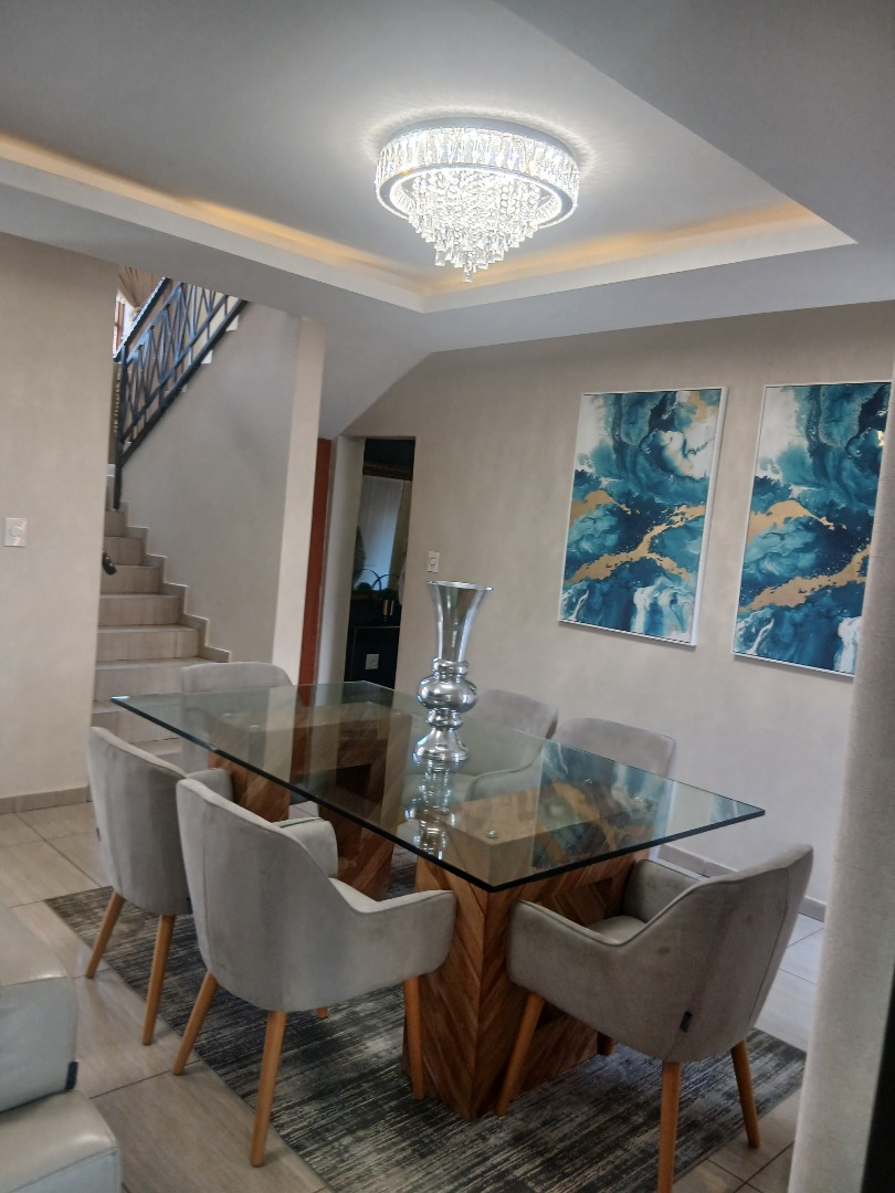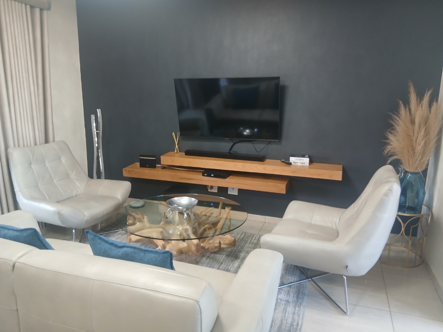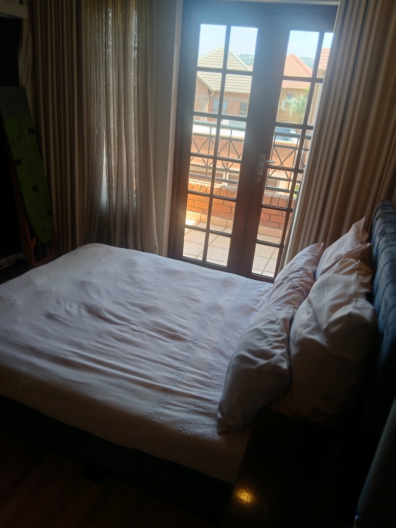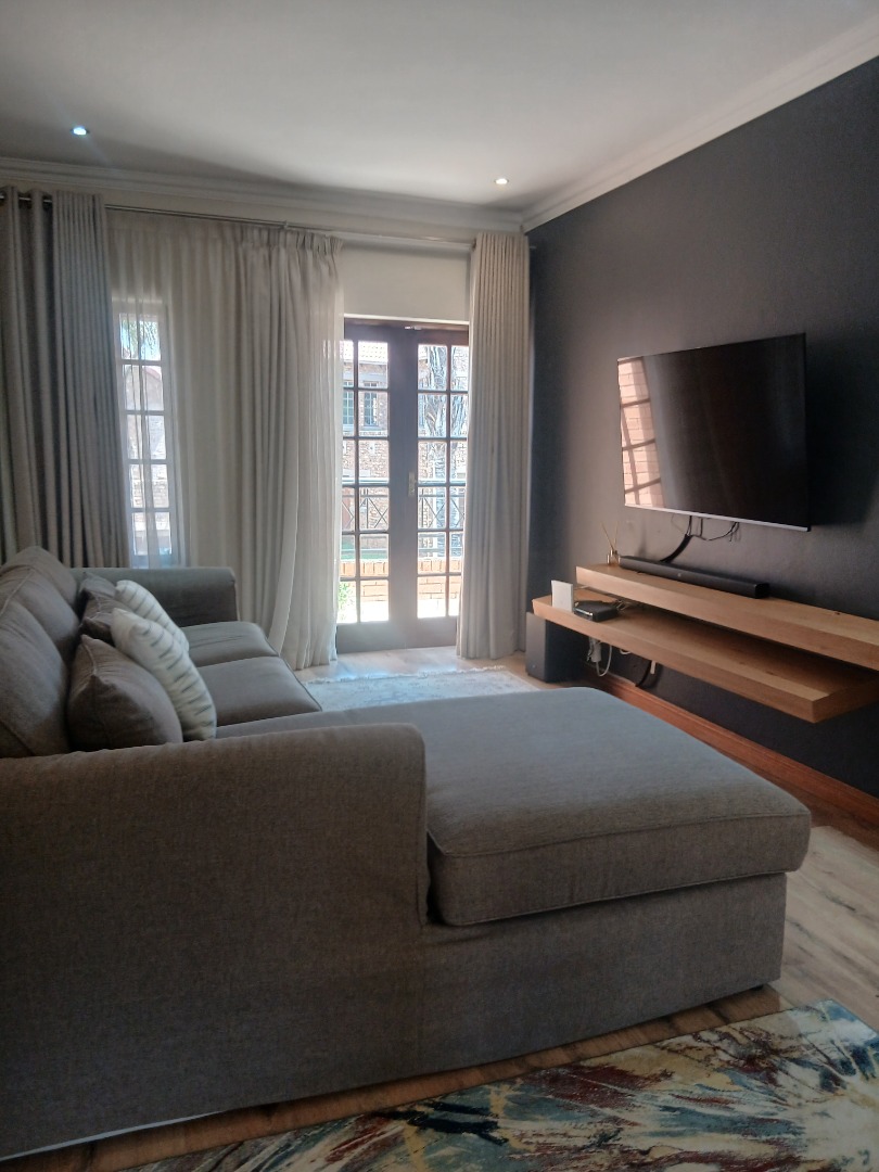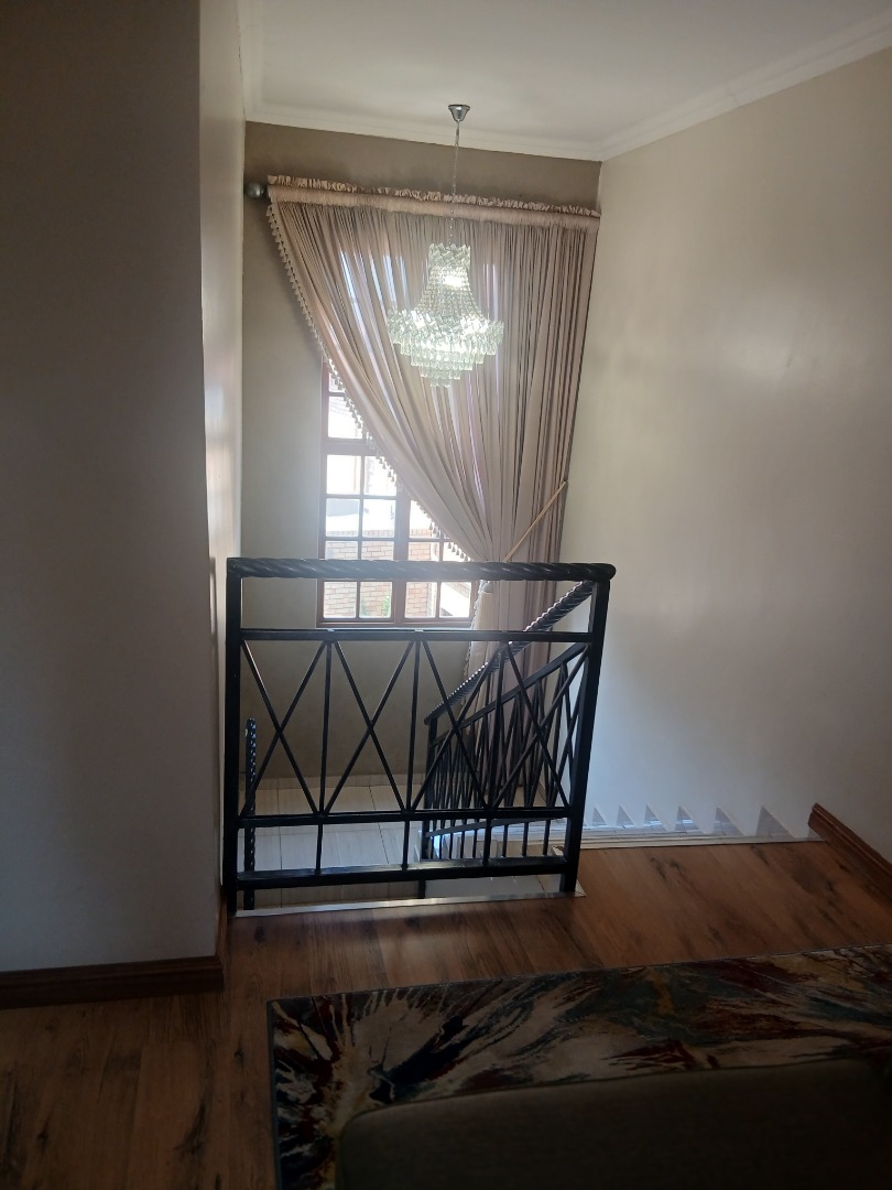What a gem! Well kept double story cluster in a security complex with dedicated parking spots for visitors. Modern tiled open plan living areas, patio, modern kitchen and guest toilet downstairs. The stairs lead to the upstairs lounge, main spacious bedroom with ample cupboards and full modern en-suite bathroom. The other 2 spacious bedrooms have built in cupboards and share a bathroom with a shower, basin and toilet. The bonus is servant quarters with built in cupboards and bathroom. Make an appointment today to view this stunning property!