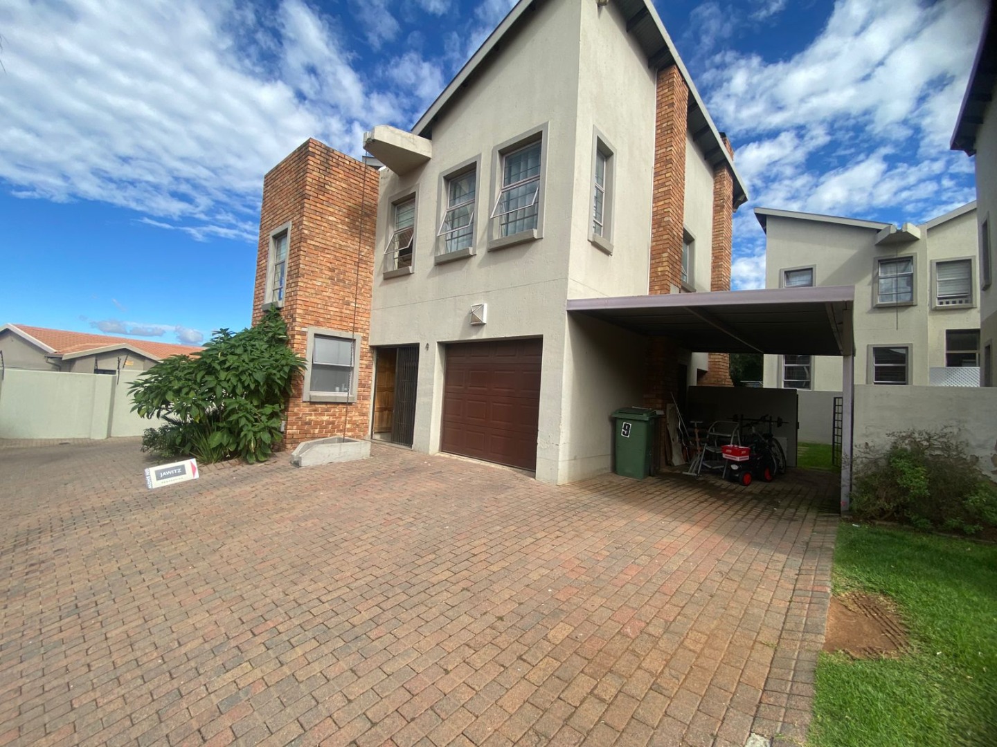 Outside, residents can enjoy a private garden space, offering an opportunity for outdoor enjoyment and a built-in braai for entertaining guests. Parking is facilitated by a single garage, complemented by additional paved areas for ease of access.