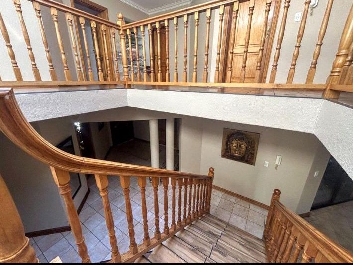 Located in a prestigious boomed-off area of Meyersdal, this double-storey home on a 1202 m² corner stand offers space, style, and security. With 457 m² under roof and two separate gated entrances, it’s perfect for family living and entertaining.