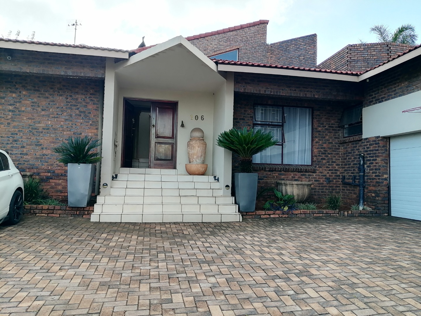 The exterior boasts a private swimming pool, perfect for relaxation and entertaining, complemented by an established garden. Enjoy outdoor gatherings with the convenience of a built-in braai and a dedicated braai room. Practical features include a laundry area, storage, and two garages.