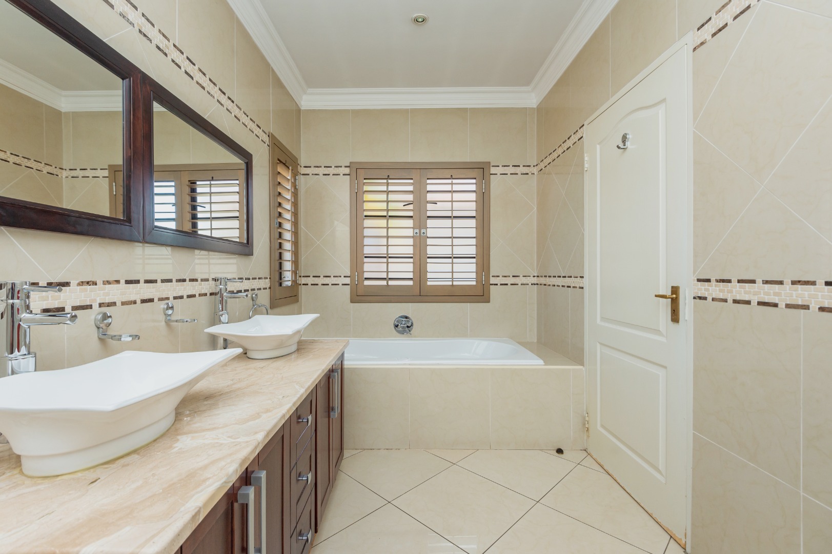 Outside, the property boasts a private, well-maintained garden and a family-sized swimming pool — perfect for relaxation or weekend gatherings. The home also offers two automated garages and additional parking space for visitors.