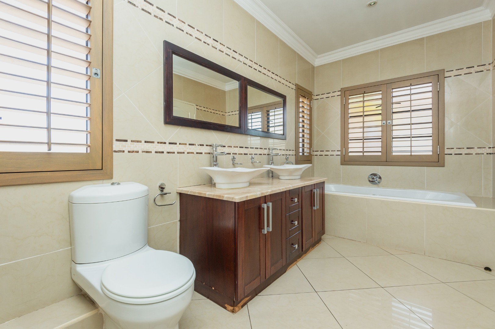 Accommodation includes four well-sized bedrooms, one of which is conveniently located downstairs and can also serve as a study. Each bedroom features built-in cupboards and air conditioning for year-round comfort. The master suite provides a tranquil retreat with its luxurious en-suite bathroom.