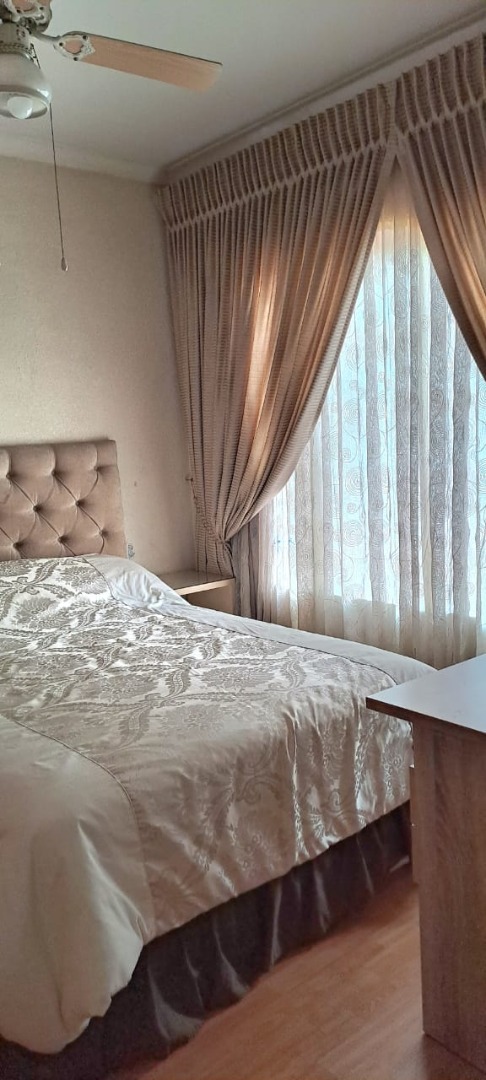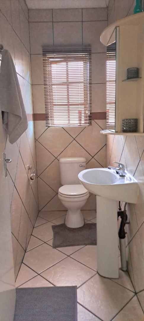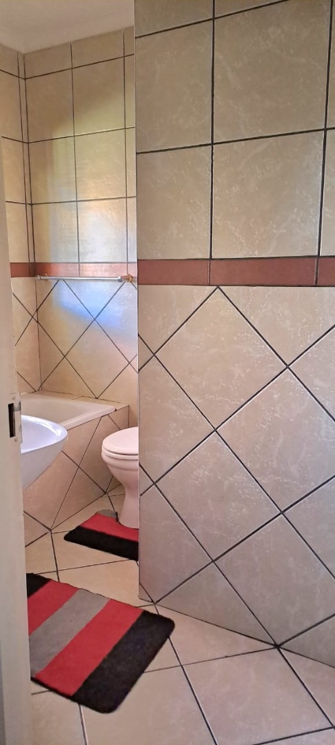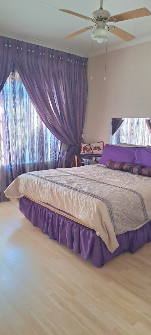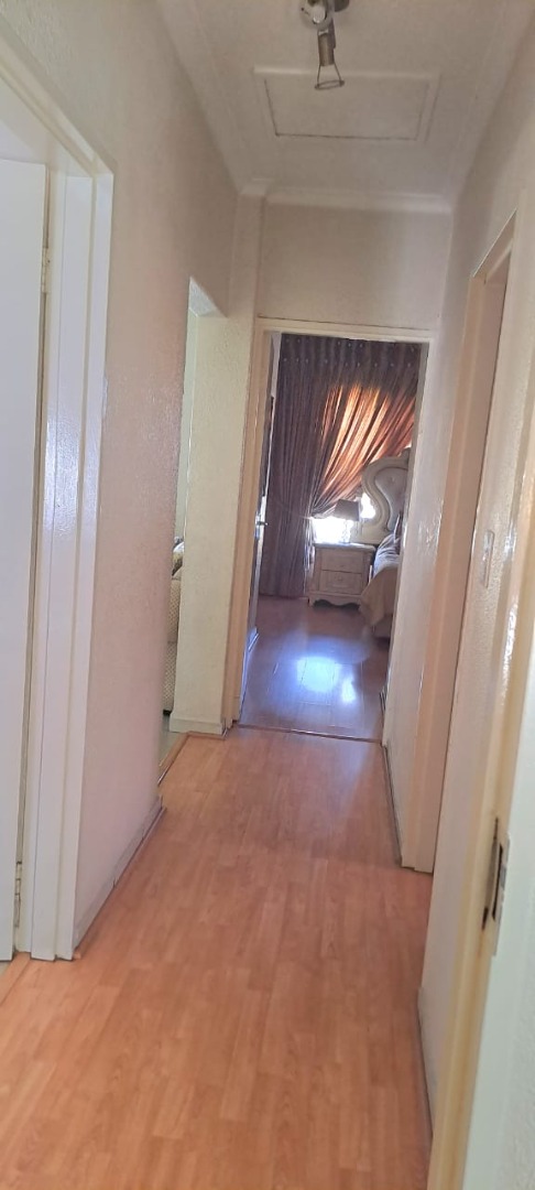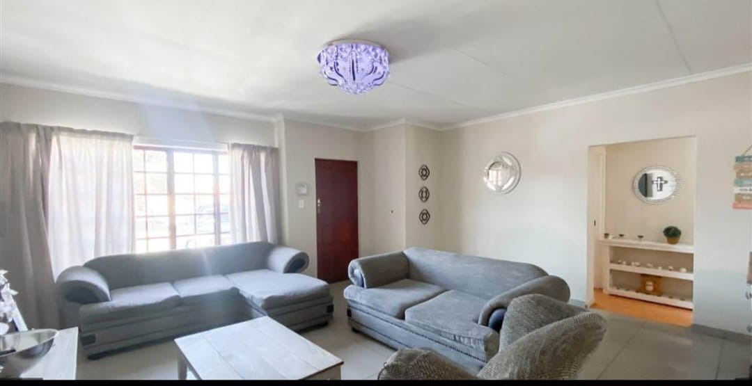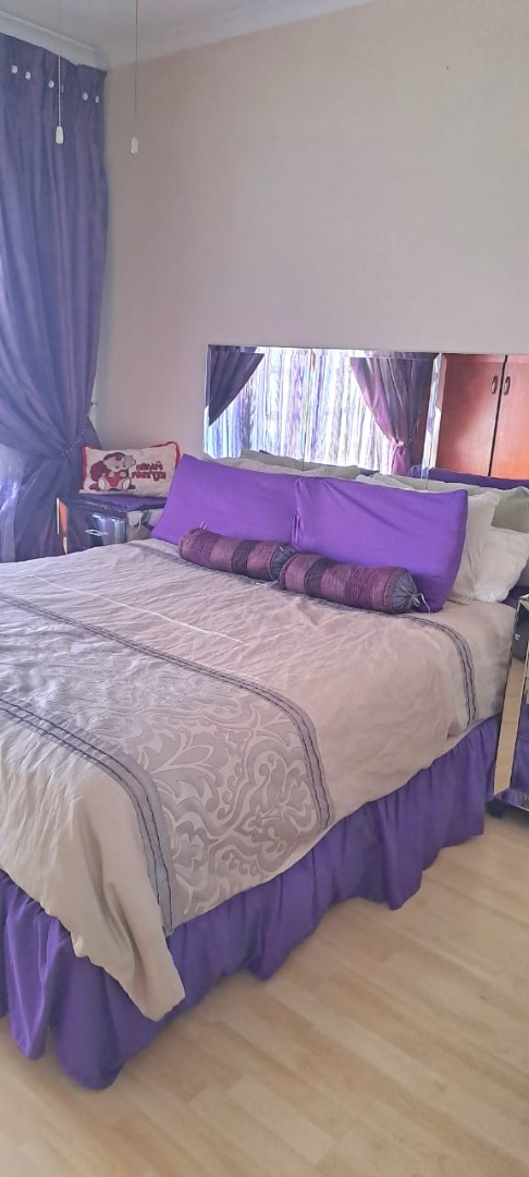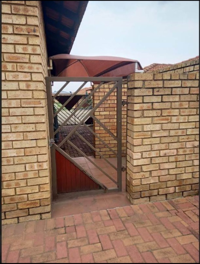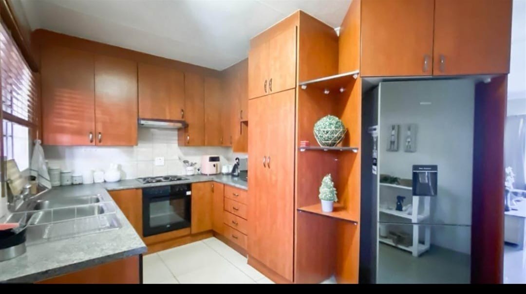 Nestled within a secure complex in New Market Park, Alberton, this charming 3-bedroom, 2-bathroom home offers a welcoming first impression. The property features a neat brick exterior, a classic tiled roof, and a well-maintained front lawn, complemented by an integrated single garage, providing both curb appeal and practical parking solutions. Step inside to discover a spacious lounge area, complete with tiled flooring and abundant natural light, providing a comfortable setting for relaxation and entertainment. The main entrance is secured with a security gate, enhancing peace of mind. Adjacent to the lounge is a dedicated dining room, perfect for family meals. The functional kitchen boasts ample wooden cabinetry, a built-in oven and hob, a double sink, and space for a modern refrigerator, offering practical utility with potential for personalized updates. The residence comprises three well-proportioned bedrooms, including one with an en-suite bathroom, ensuring privacy and convenience. The bedrooms feature a mix of laminate and wood-look flooring, and benefit from natural light, with one offering a ceiling fan for added comfort. A second full bathroom serves the remaining bedrooms and guests. Outside, the property includes a private garden and paved areas, ideal for outdoor enjoyment. With a single garage and additional parking for two vehicles, convenience is assured. Residents benefit from 24-hour security within the complex, providing a secure living environment. Pets are allowed, adding to the home's appeal. New Market Park in Alberton is a well-established suburb, known for its community feel and accessibility to local amenities. Key Features: * 3 Bedrooms, 2 Bathrooms (1 en-suite) * Spacious Lounge and Dining Room * Functional Kitchen with Built-in Oven & Hob * Integrated Single Garage & 3 Parking Spaces * Private Garden & Paved Areas * 24-Hour Complex Security * Pet-Friendly Environment * Tiled and Laminate Flooring * Ample Natural Light
