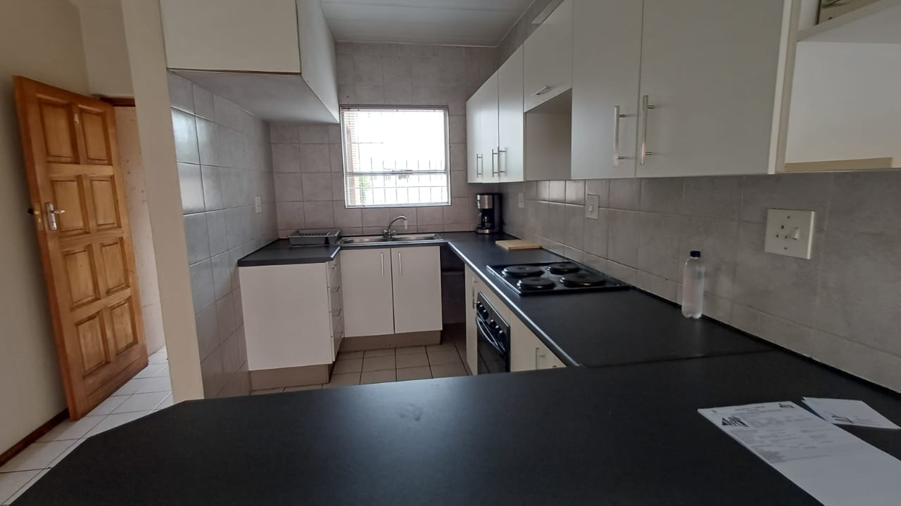 Discover comfortable and secure living in this inviting 2-bedroom unit, ideally situated within a well-maintained complex in the suburban heart of New Redruth, Alberton. This residential sale offers a functional and appealing layout, beginning with an entrance hall that leads into the open-plan living areas. The modern kitchen is a highlight, featuring sleek white cabinetry, dark countertops, a built-in oven and hob, and a practical tiled backsplash. A convenient breakfast bar provides additional counter space, perfect for casual dining. The adjacent lounge and dining room create a cohesive space for relaxation and entertaining, complemented by a dedicated family TV room. The unit comprises two comfortable bedrooms and a well-appointed bathroom, ensuring privacy and convenience. Step outside to enjoy a private balcony, offering a pleasant outdoor retreat. Security is paramount, with features including burglar bars, a security gate, electric fencing, and an intercom system, all within a totally walled complex. Each unit benefits from its own individual garage, providing secure parking and additional storage. The complex boasts neat, paved common areas and a functional, light tan exterior, enhancing its kerb appeal. New Redruth offers a metropolitan lifestyle with easy access to local amenities and transport routes, making this an excellent opportunity for discerning buyers seeking a secure and convenient home. Key Features: * 2 Bedrooms, 1 Bathroom * Modern Kitchen with Built-in Oven/Hob * Open-Plan Lounge & Dining Room * Dedicated Family TV Room * Private Balcony * Individual Garage & Paved Driveway * Enhanced Security: Burglar Bars, Security Gate, Electric Fencing, Intercom * Well-Maintained Complex Environment * Located in desirable New Redruth, Alberton