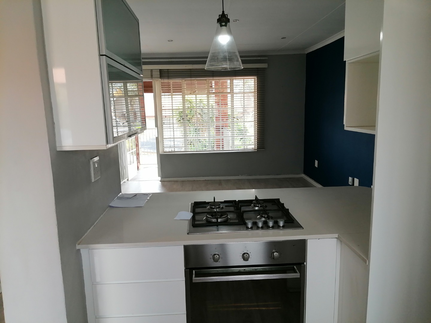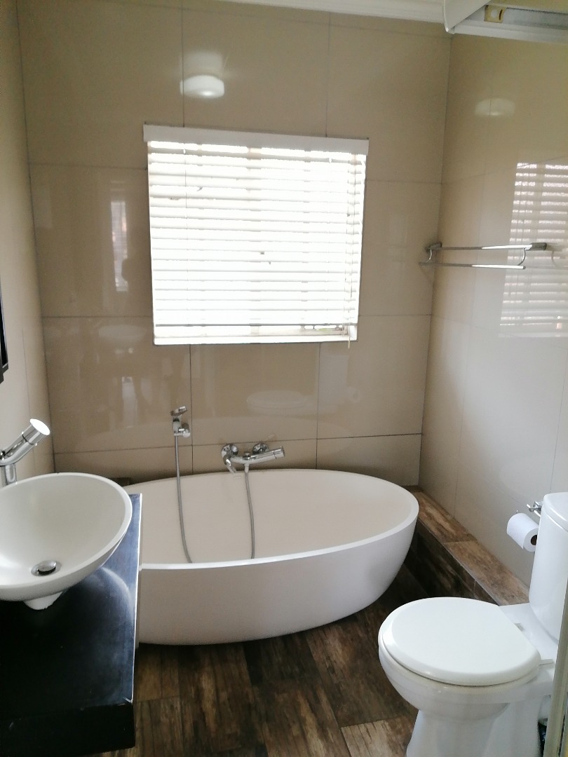 The apartment offers a modern 2-bedroom home in New Redruth, Alberton. The open-plan living area flows into a contemporary kitchen, featuring white cabinetry, an integrated gas hob, oven, and stylish arabesque backsplash. Two bedrooms provide modern laminate flooring and built-in wardrobes. The sleek bathroom boasts a freestanding oval bathtub and vessel sink. Enjoy a private tiled balcony with security gates and one dedicated parking bay. This property combines modern comfort and security in a desirable suburban location.