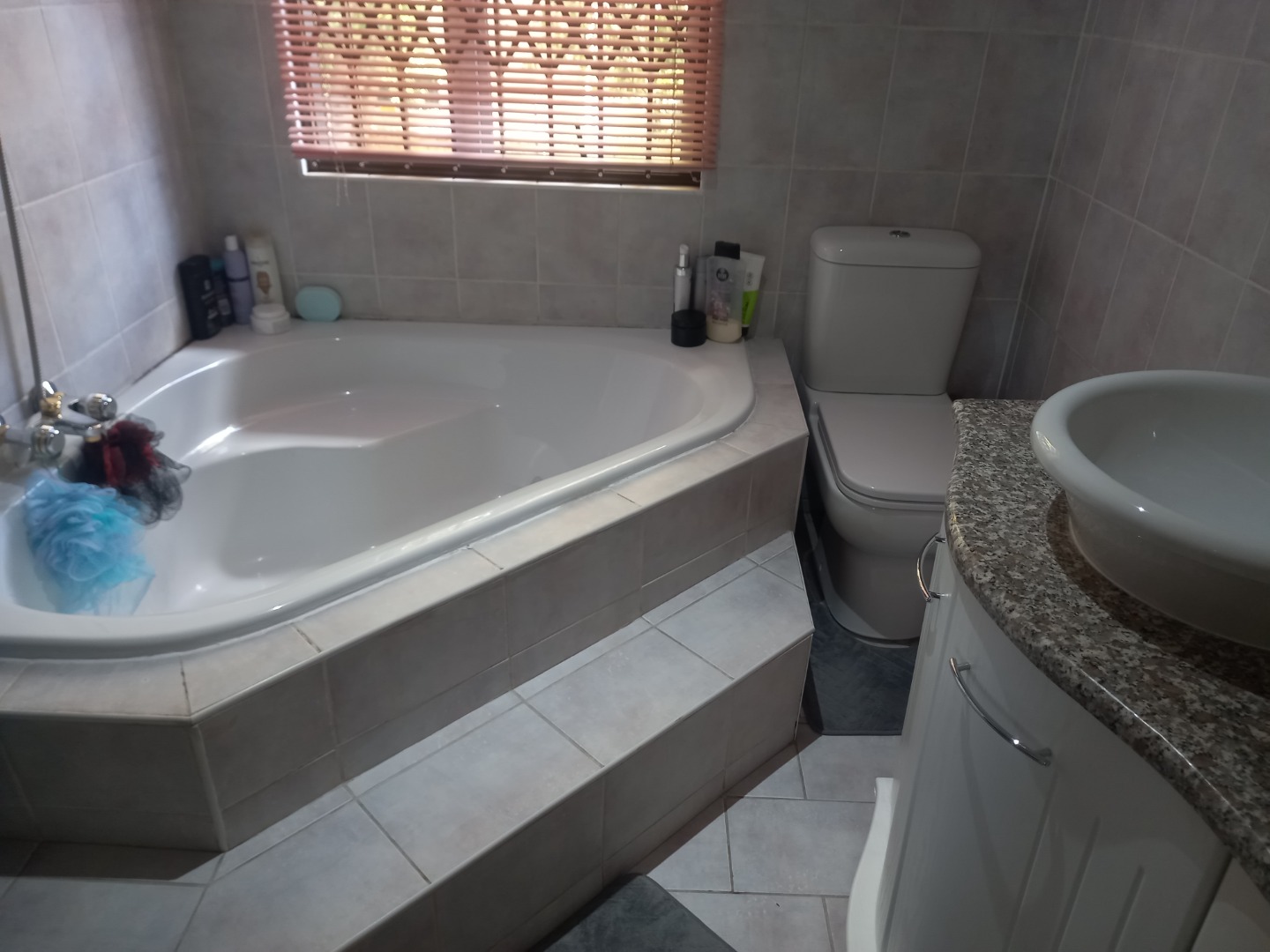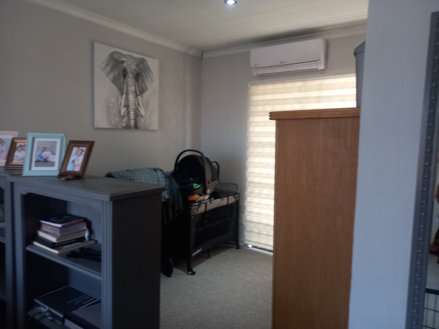 Discover comfortable suburban living in this inviting 3-bedroom, 2-bathroom residence located in the established area of New Redruth, Alberton. This home offers a harmonious blend of modern design and practical features, ideal for families seeking a well-appointed space. Upon entry, a secure trellis gate and a wooden-framed glass door lead into a bright, open-plan living area. The heart of the home features a contemporary white kitchen, complete with ample cabinetry and tiled flooring that extends throughout the main living spaces, ensuring easy maintenance. An integrated workspace provides a convenient area for productivity, seamlessly connecting to the lounge and dining areas for effortless entertaining and daily life. The property boasts three comfortable bedrooms, each offering a private retreat. The main bedroom features a large bed with an upholstered headboard and carpeted flooring for added warmth, complemented by a window fitted with security bars for peace of mind. The two well-appointed bathrooms include a spacious main bathroom with a large corner bath, complete with steps, and a modern vanity with a granite countertop and vessel sink. The second bathroom is functional and tiled, featuring a sink and toilet. Climate control is ensured with modern wall-mounted air conditioning units found in key areas, providing comfort throughout the seasons. Security is a priority, evident in the secure entrance and window bars. The property also includes a double garage, offering secure parking and additional storage solutions. Situated in a suburban setting, this New Redruth home provides convenient access to local amenities and transport routes, making it a desirable location for a balanced lifestyle. Key Features: * 3 Bedrooms, 2 Bathrooms * Open-plan living and modern kitchen * Double garage * Air conditioning * Secure entrance with trellis gate * Tiled flooring in living areas * Carpeted bedrooms * Integrated workspace