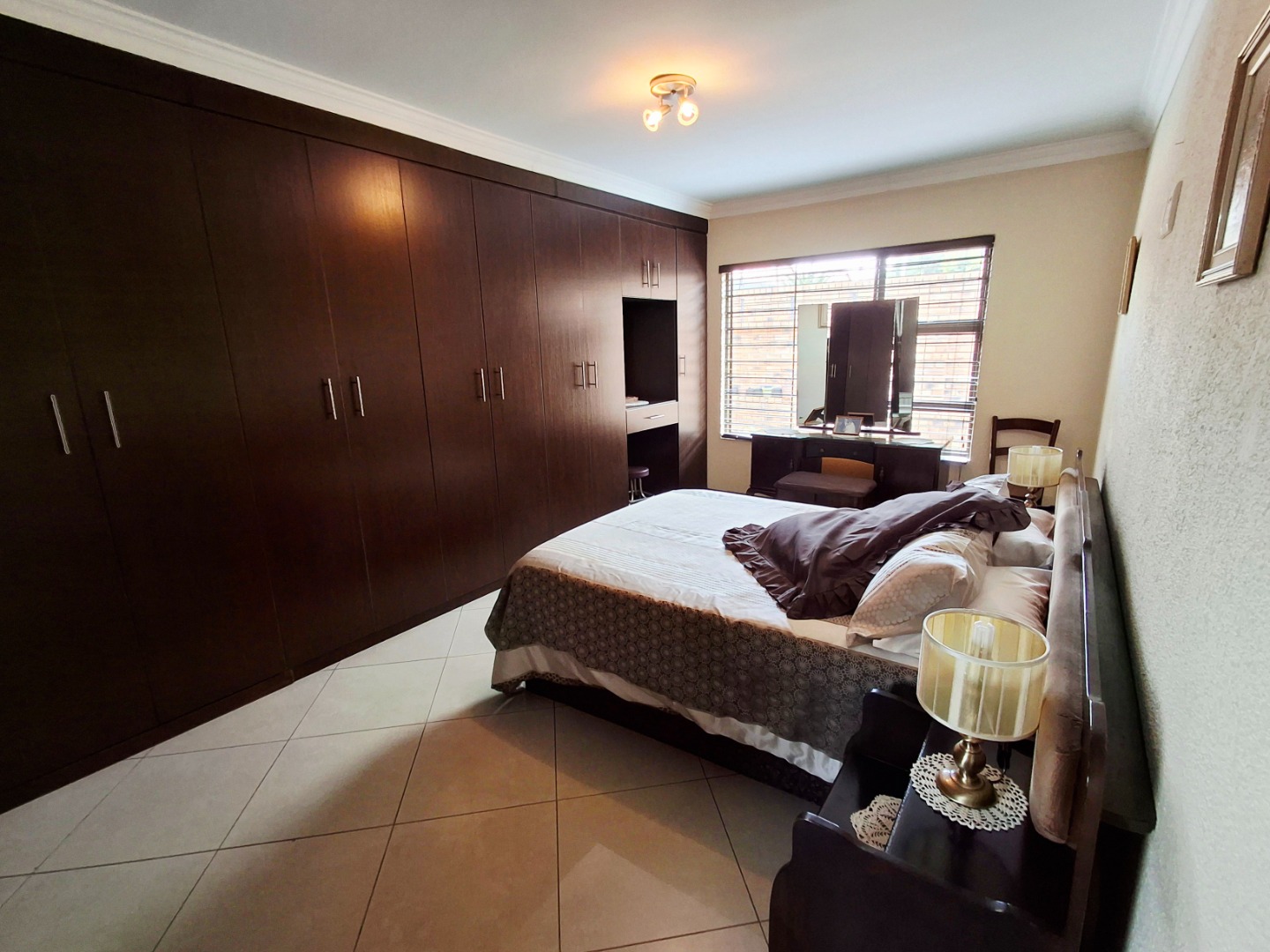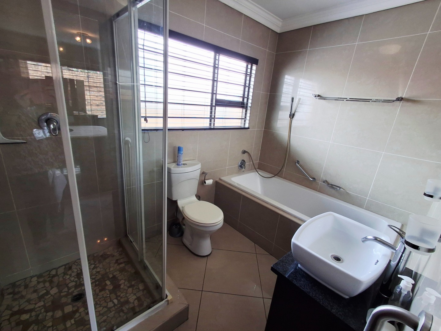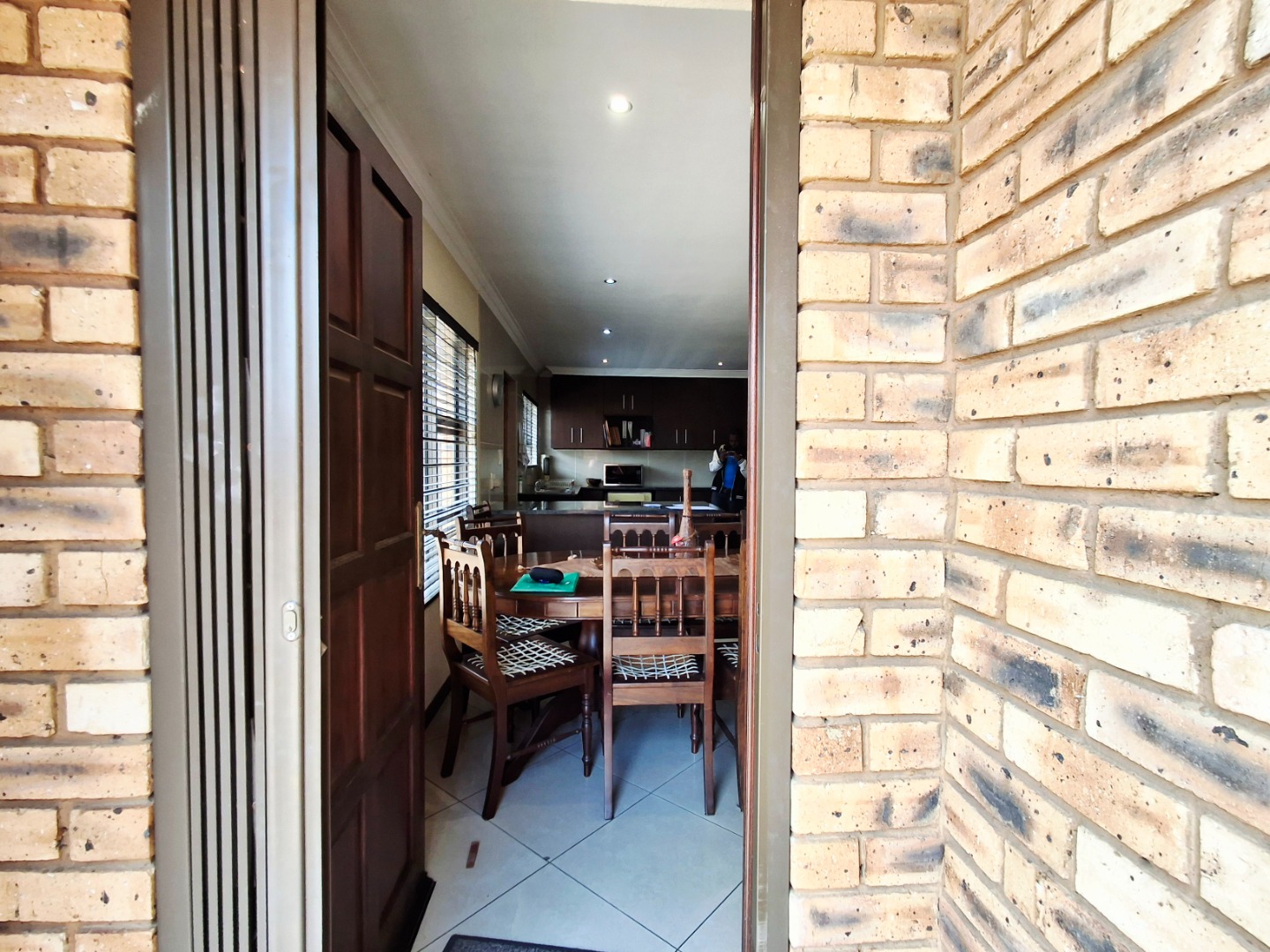 Discover this inviting 3-bedroom, 2-bathroom residence in the established suburban area of New Redruth, Alberton, South Africa. With an erf size of 330 sqm and a floor size of 193 sqm, this property offers comfort and practicality for family living. Its brick exterior and paved driveway create a welcoming first impression on a pleasant, tree-lined street. Step inside to an intelligently designed interior featuring modern tiled flooring and recessed lighting. The open-plan dining and kitchen area fosters seamless flow for daily living and entertaining. The kitchen boasts ample dark wood cabinetry, sleek granite countertops, and modern stainless steel appliances, including a gas range with a matching range hood. A comfortable lounge, dedicated dining room, and versatile family TV room provide additional living spaces. The home offers three well-proportioned bedrooms, including an en-suite bathroom, ensuring private retreats for all occupants. Each space is designed with functionality, complemented by neutral wall colours and durable finishes. Outdoor amenities include a secure garden and a double garage, providing ample parking and storage. The property prioritises security with electric fencing, an access gate, and burglar bars for peace of mind. Sustainable living is embraced with installed solar panels and a solar water heater, significantly reducing utility costs. Fibre connectivity is also available. Key Features: * 3 Bedrooms, 2 Bathrooms (1 En-suite) * Open-plan Kitchen & Dining Area * Modern Kitchen with Granite Countertops & Gas Range * Lounge, Dining Room & Family TV Room * Double Garage & Paved Driveway * Solar Panels & Solar Water Heater * Electric Fencing, Access Gate & Burglar Bars * Fibre Ready * Erf Size: 330 sqm, Floor Size: 193 sqm