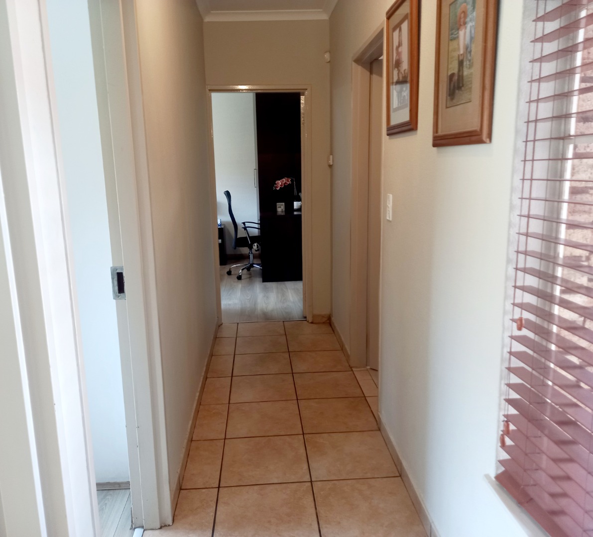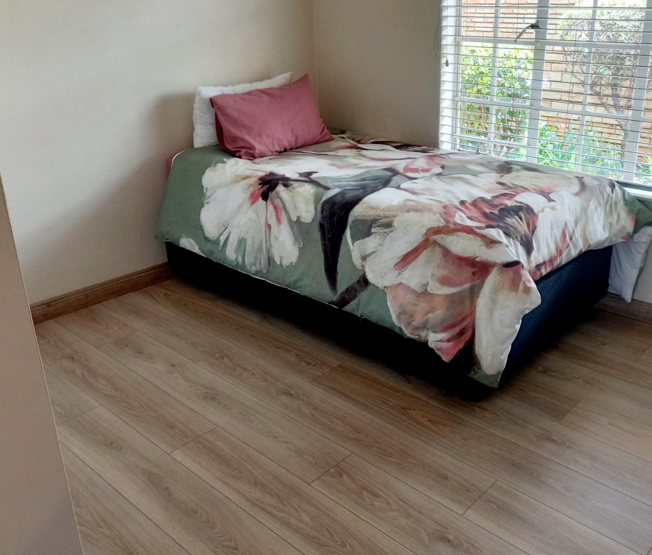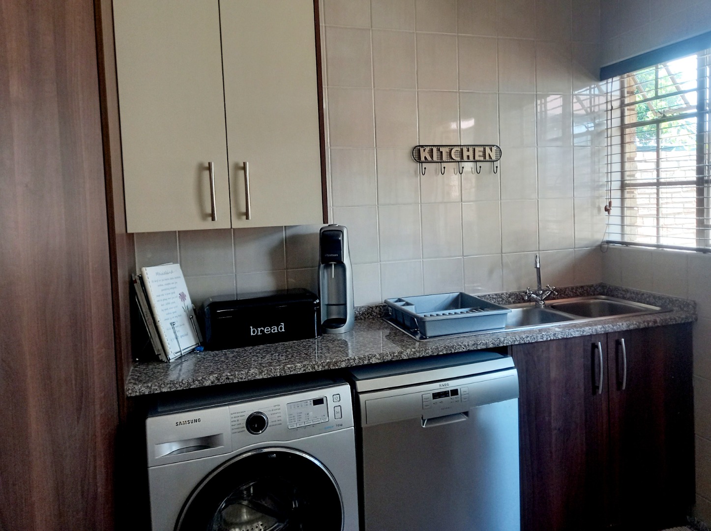 Discover this inviting residential property located in the suburban area of New Redruth, Alberton. Boasting a floor size of 218.00 sqm on a 348.00 sqm erf, this home offers a comfortable and functional living environment. The interior features a well-appointed layout designed for modern living. The spacious lounge, complete with durable tiled flooring, provides ample room for relaxation and entertainment, with sliding doors offering seamless access to a private patio. The contemporary kitchen is a highlight, showcasing stylish two-tone cabinetry, granite-look countertops, an integrated gas hob, and an under-counter oven. It also includes dedicated space for a refrigerator and a clean tiled backsplash, ensuring both aesthetic appeal and practicality. A separate dining room complements the living spaces, perfect for family meals. This residence comprises three comfortable bedrooms and two bathrooms, providing ample accommodation for a family. One bedroom features modern wooden laminate flooring, offering a fresh and clean aesthetic. The property benefits from practical security features, including burglar bars and security gates on interior doorways, enhancing peace of mind. An access gate further secures the premises. Externally, the property presents a neat brick facade with a tiled roof, contributing to its kerb appeal. A paved driveway leads to a double garage, offering secure parking and additional storage. The patio area extends the living space outdoors, ideal for enjoying the South African climate. Pets are allowed, making it suitable for animal lovers. New Redruth, situated in Alberton, is a well-established suburban area known for its community feel and convenient access to local amenities. This property offers a balanced lifestyle within a desirable neighbourhood. Key Features: * 3 Bedrooms, 2 Bathrooms * Spacious Lounge and Dining Room * Modern Kitchen with Gas Hob * Double Garage * Private Patio * Durable Tiled and Laminate Flooring * Burglar Bars and Security Gates * Paved Driveway * Pet-Friendly * Located in a Complex