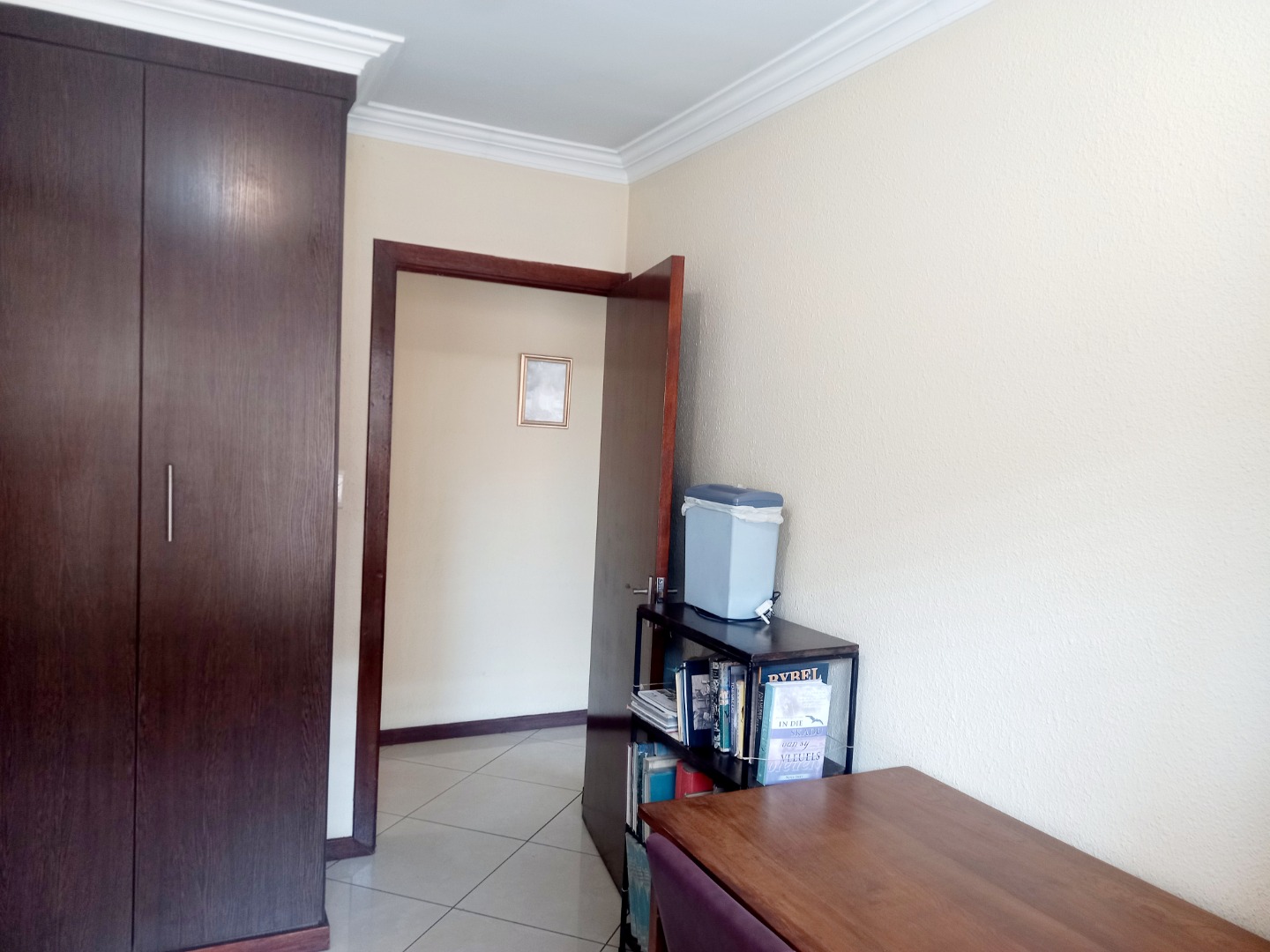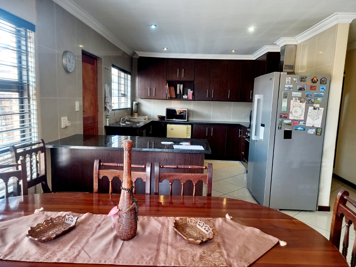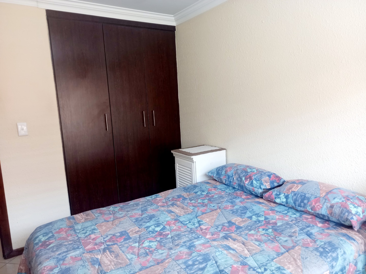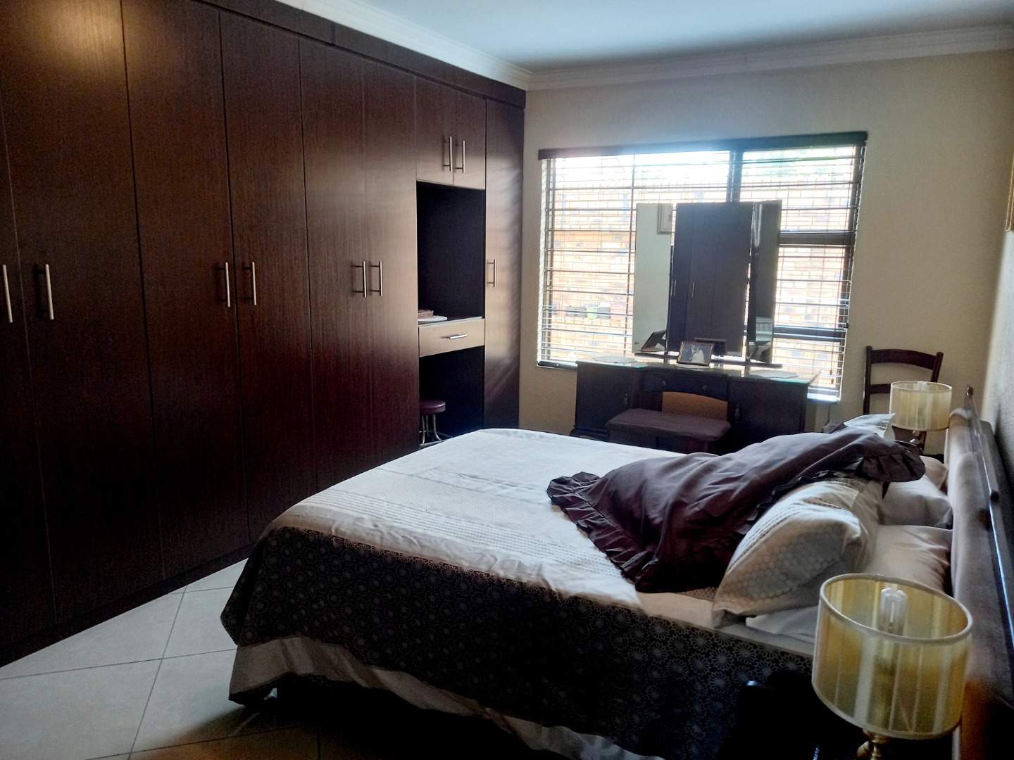 Nestled in the suburban heart of New Redruth, Alberton, this complex offers a desirable lifestyle in South Africa, providing convenient access to local amenities and a tranquil residential environment. Discover this inviting property, boasting excellent kerb appeal with its sturdy brick exterior and tiled roof. The entrance features a unique mural and a paved driveway, leading to a double wooden garage door. Enhanced security is paramount, evident through electric fencing, a large metal gate, and prominent 24-hour armed response signage, ensuring peace of mind within this well-maintained complex. Step inside to a spacious 193 sqm interior, designed for comfortable living. The open-plan layout seamlessly connects the modern kitchen and dining area, featuring elegant dark wood-grain cabinetry, dark speckled granite countertops, and a tiled backsplash. Equipped with stainless steel appliances, including a gas range and oven, this kitchen is both functional and stylish. The generous lounge area, with its durable tiled flooring and recessed lighting, provides a welcoming space for relaxation, complemented by ample natural light from large windows. This residence offers three comfortable bedrooms, each designed with practicality in mind. Built-in dark wood wardrobes provide extensive storage, while tiled flooring and neutral walls create a versatile canvas for personal style. Two well-appointed bathrooms serve the home, ensuring convenience for residents. Further enhancing this home's appeal is the double garage, featuring an attractive wooden sectional door and an automatic opener for ease of access. The garage space is thoughtfully designed with tiled flooring and extensive built-in cabinetry, offering exceptional storage and utility. Key Features: * 3 Bedrooms, 2 Bathrooms * 193 sqm Floor Size * Double Garage with automatic opener * Modern Kitchen with granite countertops * Open-plan Lounge and Dining * Tiled Flooring throughout * Enhanced Security (electric fencing, armed response) * Paved Driveway and Entrance * Built-in Wardrobes