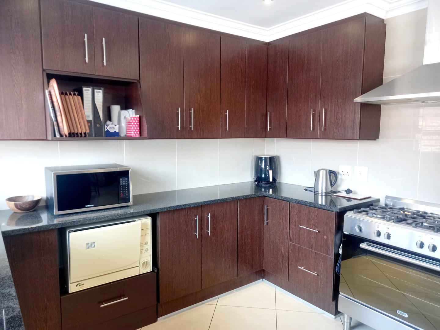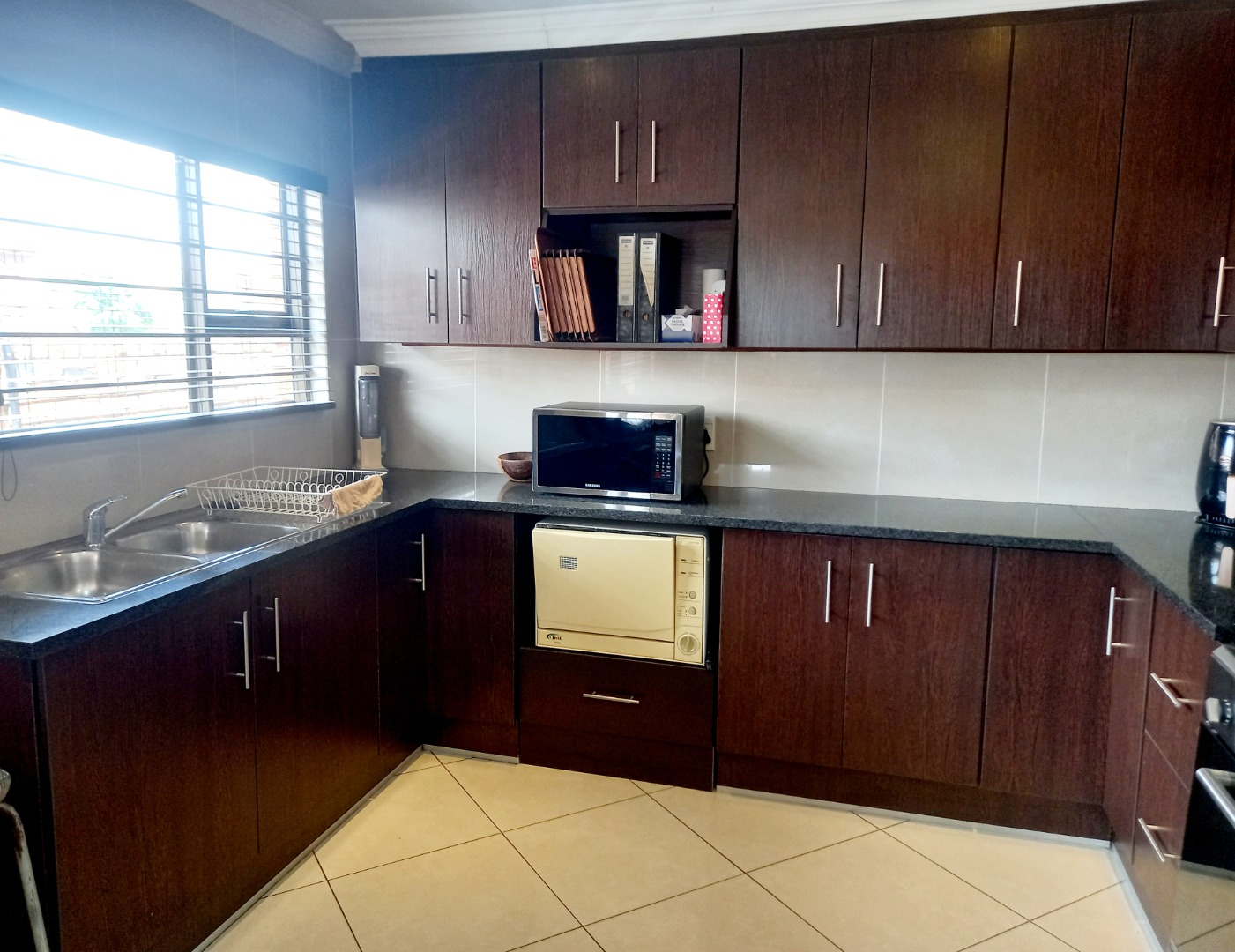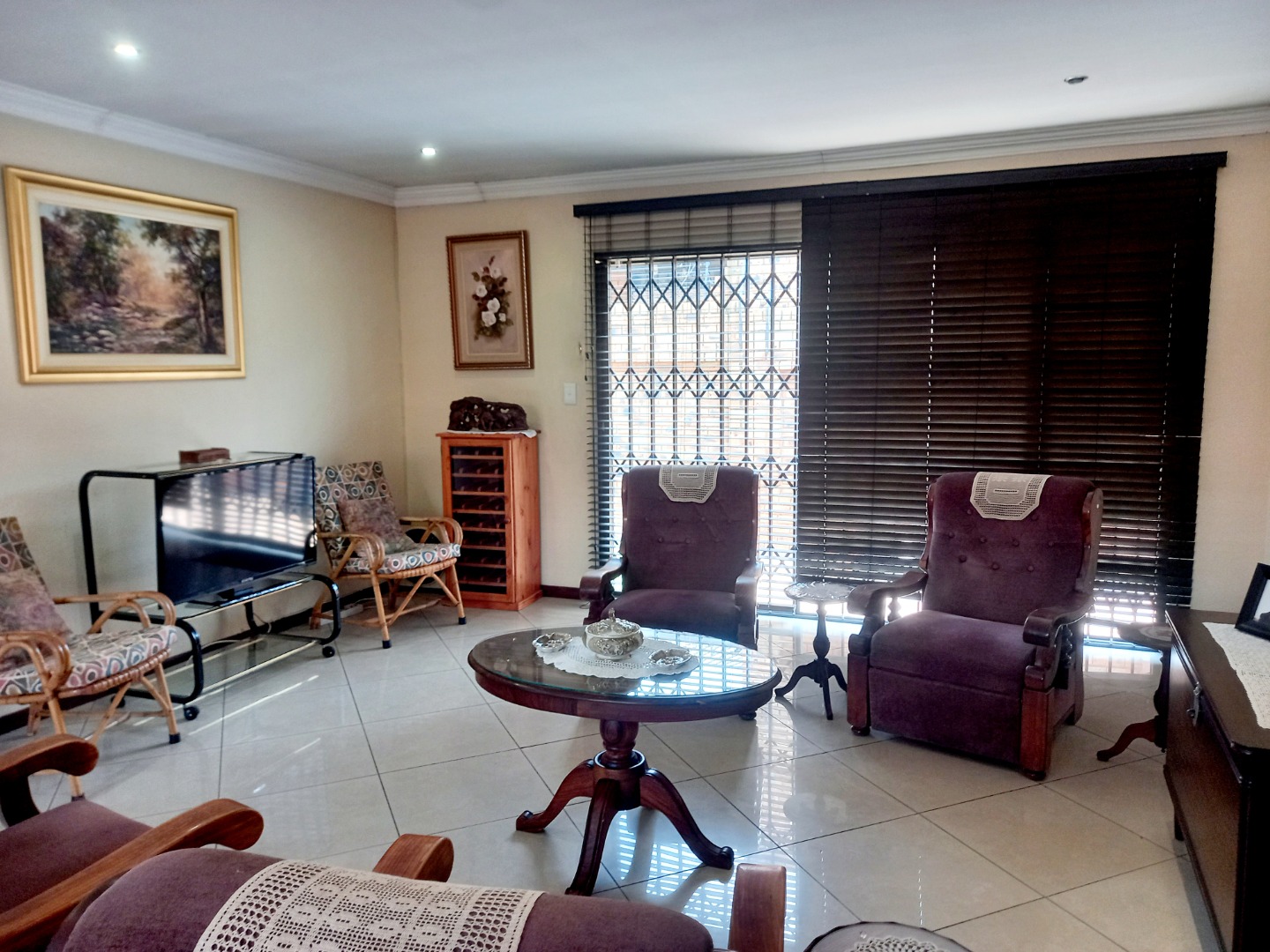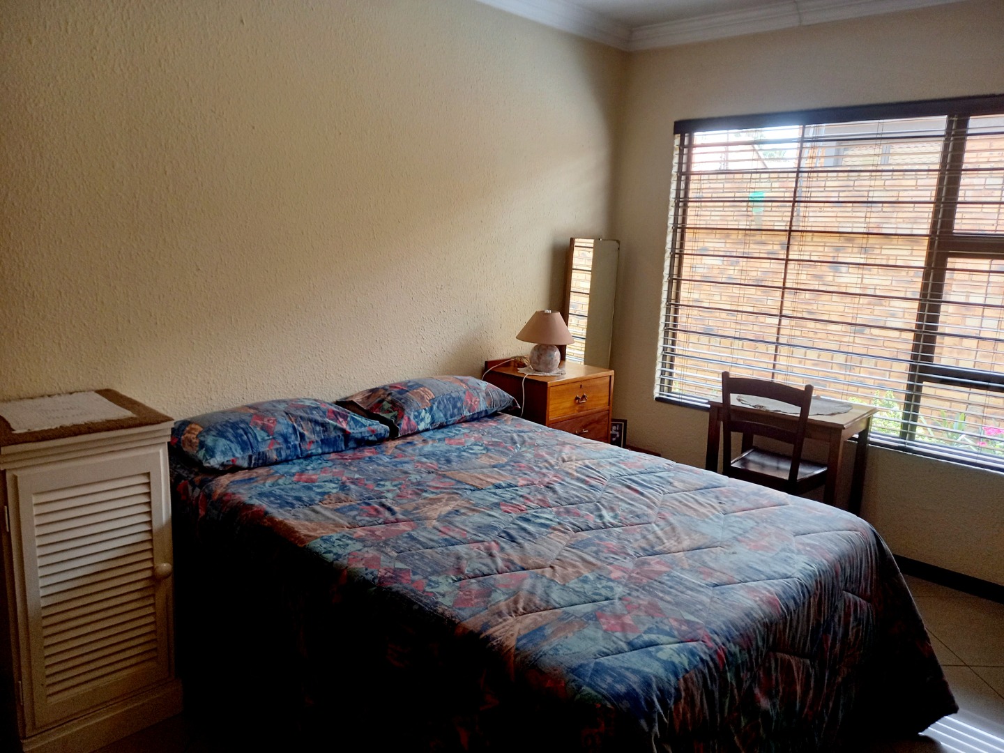 Nestled in the suburban heart of New Redruth, Alberton, this complex offers a desirable lifestyle in South Africa, providing convenient access to local amenities and a tranquil residential environment. Discover this inviting property, boasting excellent kerb appeal with its sturdy brick exterior and tiled roof. The entrance features a unique mural and a paved driveway, leading to a double wooden garage door. Enhanced security is paramount, evident through electric fencing, a large metal gate, and prominent 24-hour armed response signage, ensuring peace of mind within this well-maintained complex. Step inside to a spacious 193 sqm interior, designed for comfortable living. The open-plan layout seamlessly connects the modern kitchen and dining area, featuring elegant dark wood-grain cabinetry, dark speckled granite countertops, and a tiled backsplash. Equipped with stainless steel appliances, including a gas range and oven, this kitchen is both functional and stylish. The generous lounge area, with its durable tiled flooring and recessed lighting, provides a welcoming space for relaxation, complemented by ample natural light from large windows. This residence offers three comfortable bedrooms, each designed with practicality in mind. Built-in dark wood wardrobes provide extensive storage, while tiled flooring and neutral walls create a versatile canvas for personal style. Two well-appointed bathrooms serve the home, ensuring convenience for residents. Further enhancing this home's appeal is the double garage, featuring an attractive wooden sectional door and an automatic opener for ease of access. The garage space is thoughtfully designed with tiled flooring and extensive built-in cabinetry, offering exceptional storage and utility. Key Features: * 3 Bedrooms, 2 Bathrooms * 193 sqm Floor Size * Double Garage with automatic opener * Modern Kitchen with granite countertops * Open-plan Lounge and Dining * Tiled Flooring throughout * Enhanced Security (electric fencing, armed response) * Paved Driveway and Entrance * Built-in Wardrobes