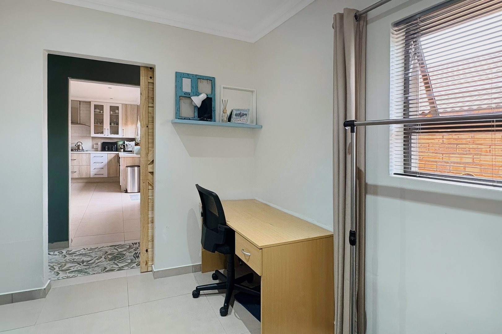 For entertaining, the home boasts a private bar and entertainment lounge, alongside a covered outdoor area with a built-in braai. This overlooks the beautifully maintained, pet-friendly garden and a sparkling swimming pool—perfect for hosting guests on the generous 479 sqm erf.