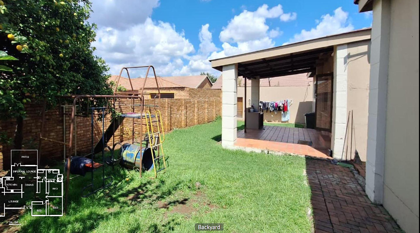 - Covered patio with space to play and unwind.