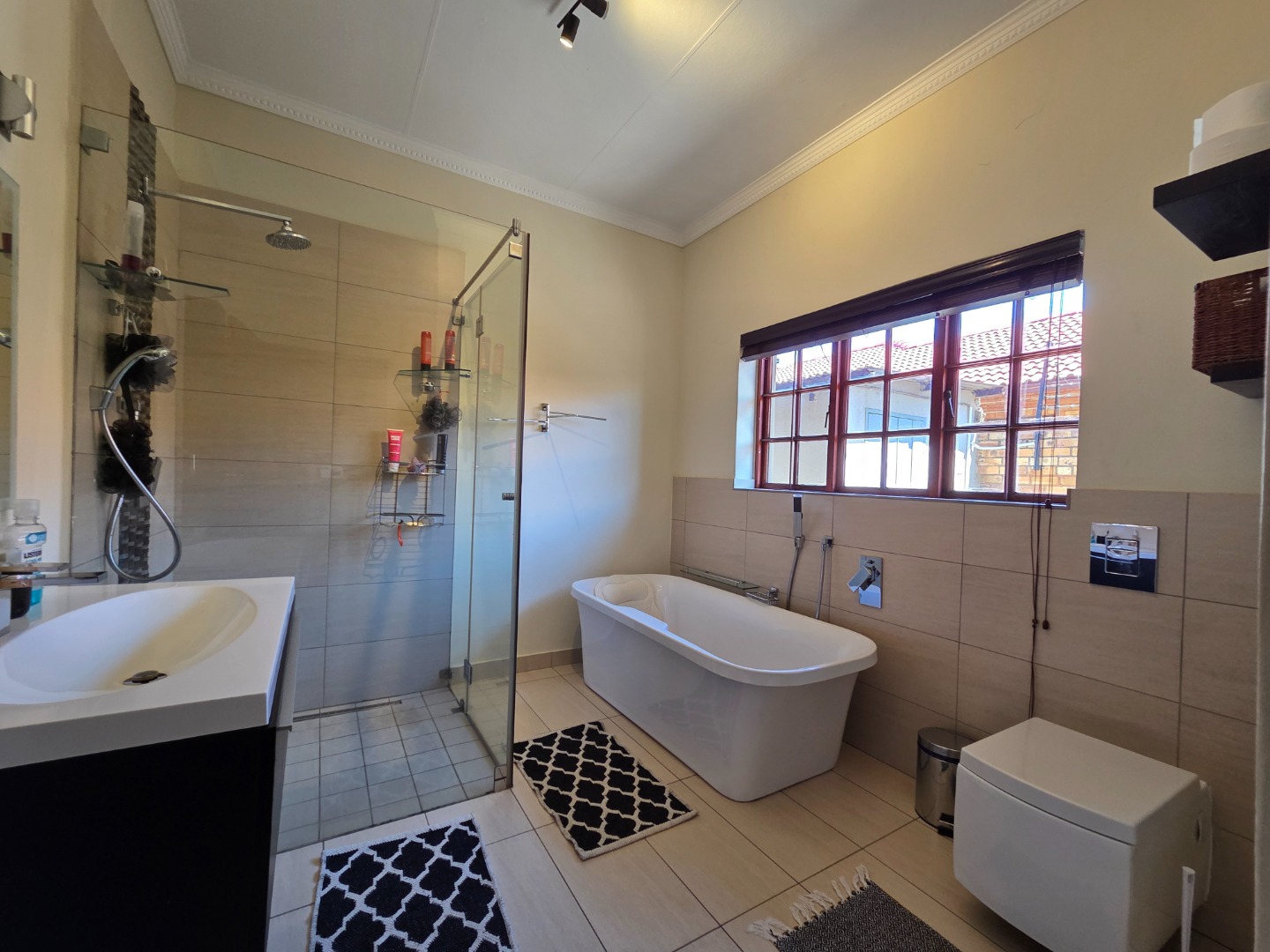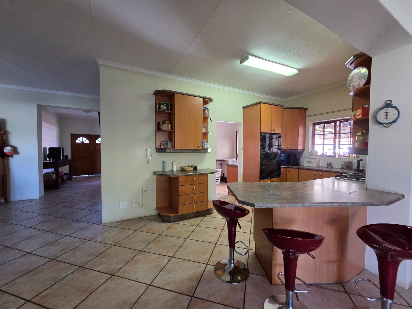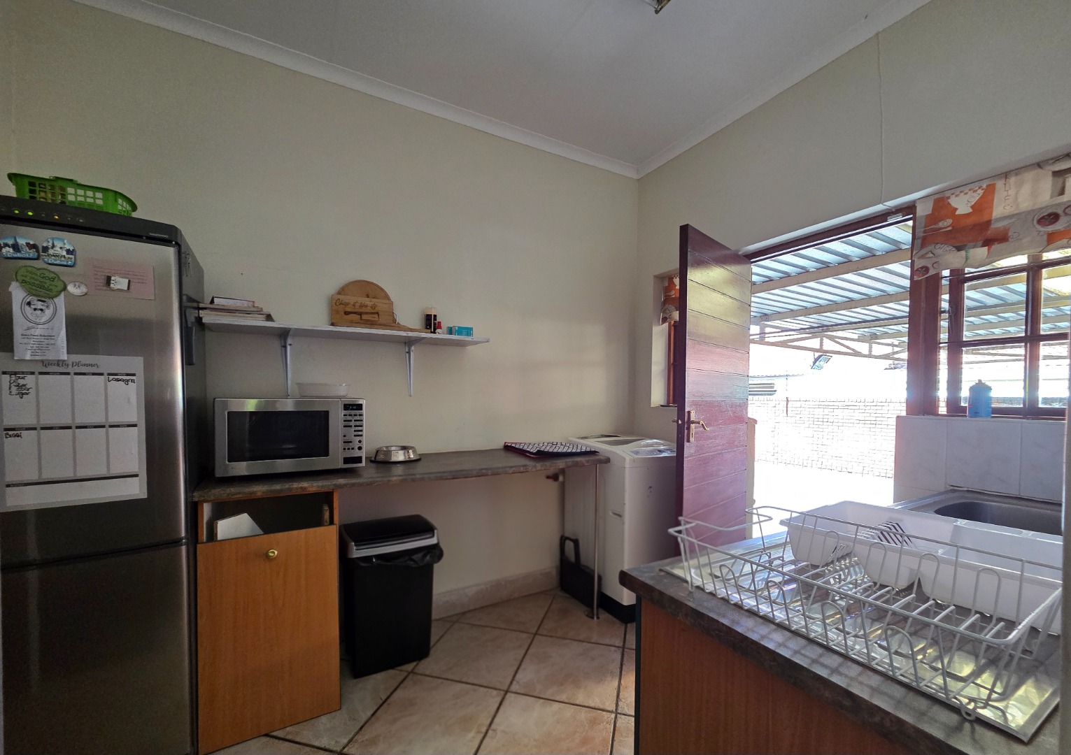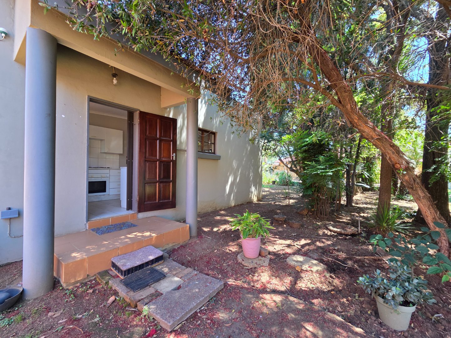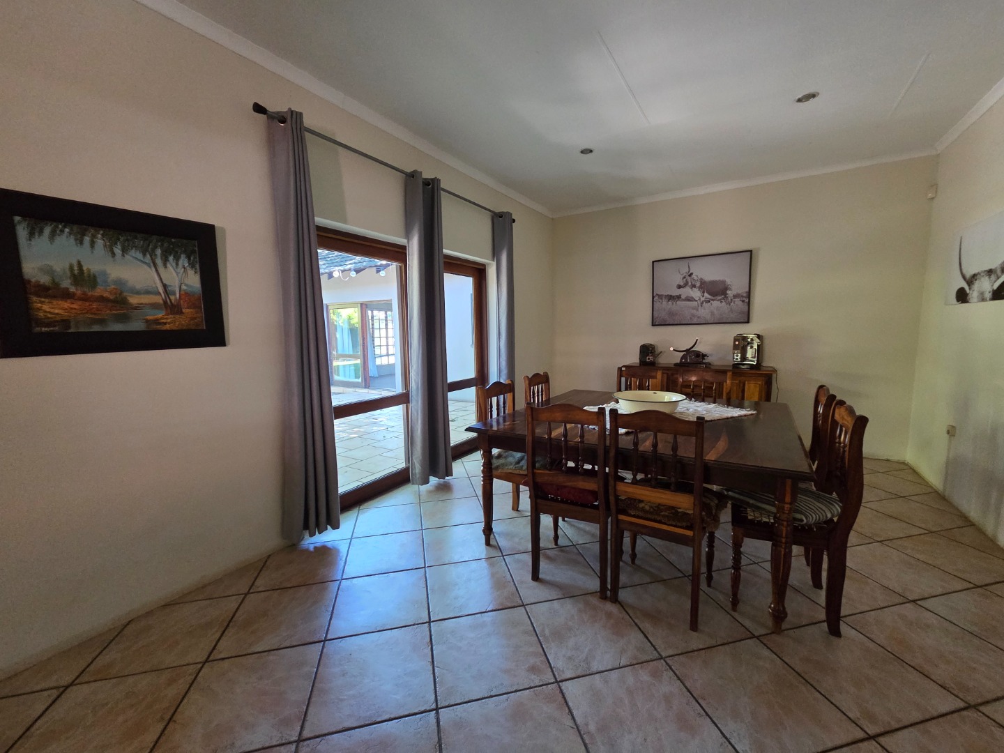 Enjoy outdoor living on the patio with a tiled floor, shaded by a large tree—perfect for weekend braais or quiet evenings. Parking is a breeze with 2 garages and 2 covered carports.