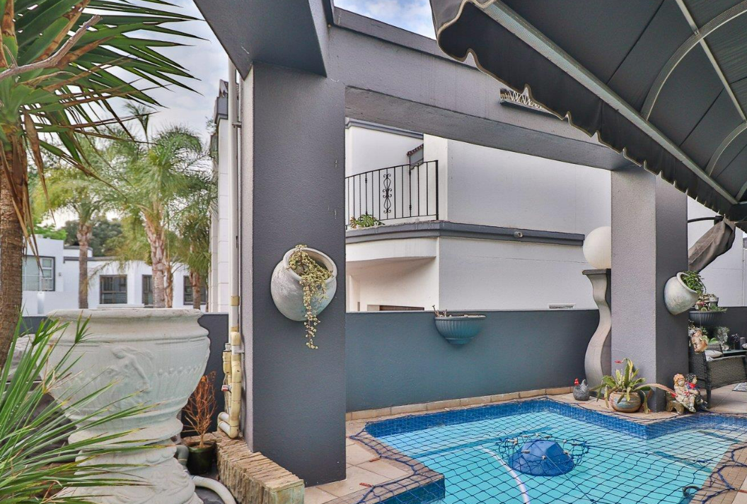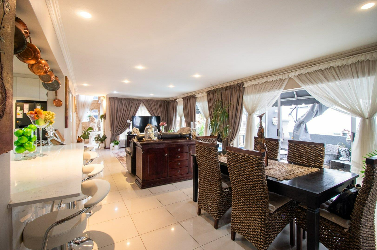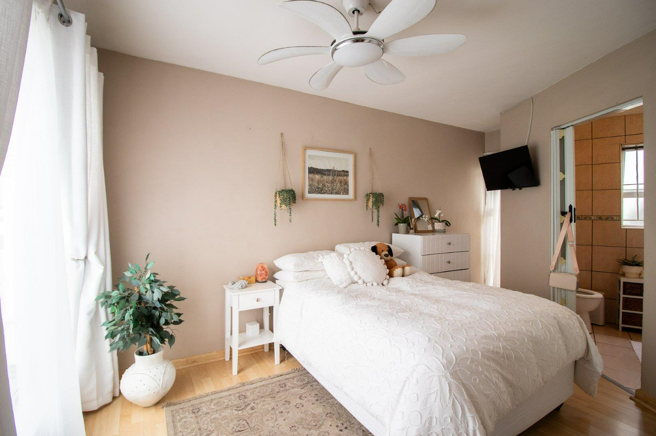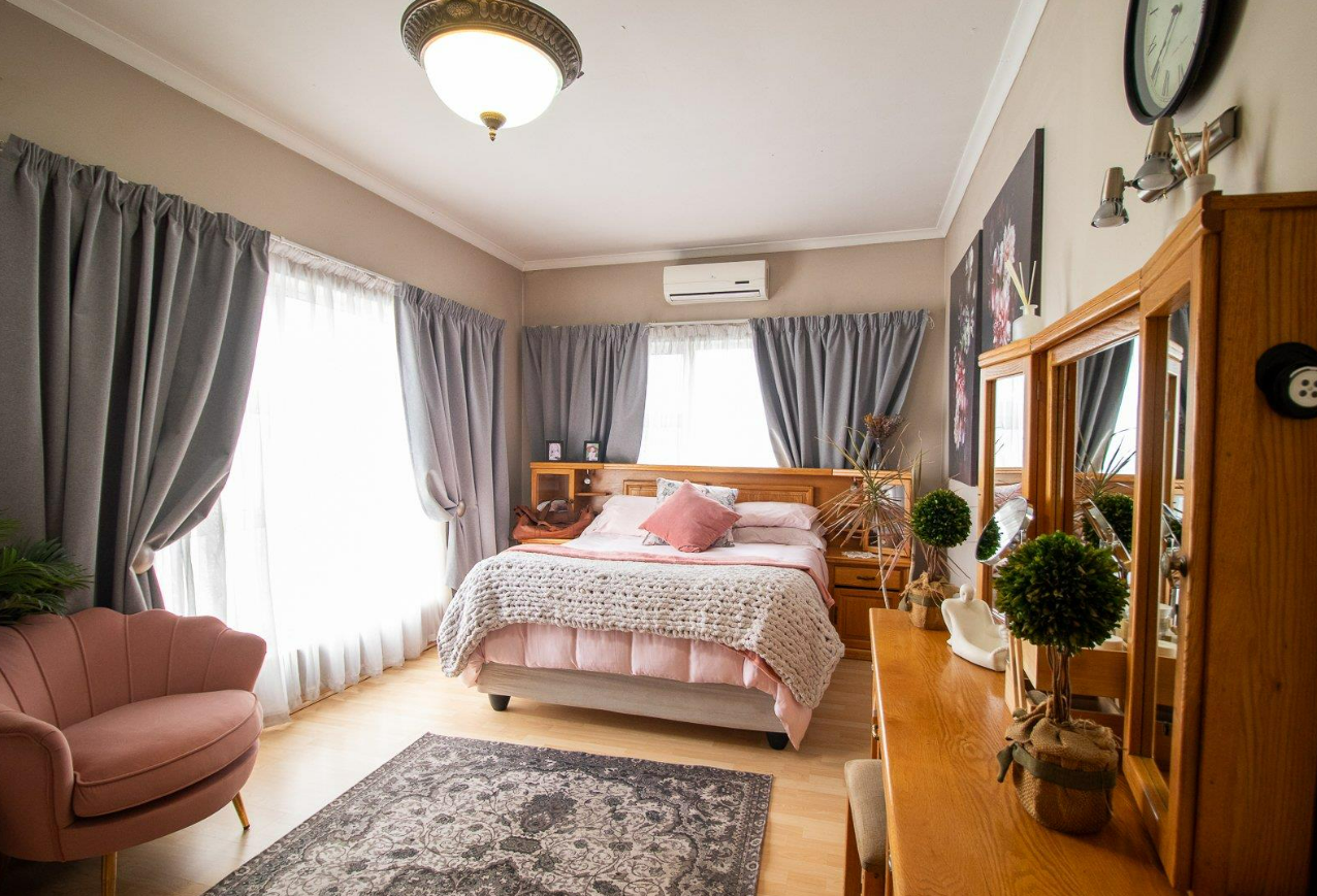 Discover this charming 4-bedroom, 3.5-bathroom residence located in the desirable suburban area of New Redruth, Alberton. The property immediately impresses with its unique modern architectural design featuring curved walls, a striking wooden front door, and a double garage. A large, tiled driveway provides ample parking space, enhancing its kerb appeal. The interior offers a well-appointed kitchen and a dedicated study, perfect for remote work or quiet contemplation. The home seamlessly extends to a bright, enclosed patio or sunroom, providing an ideal space for relaxation or entertaining guests, with excellent indoor-outdoor flow via large sliding glass doors. Accommodation includes four comfortable bedrooms, two of which boast private en-suite bathrooms. Each bedroom is designed for comfort, featuring amenities such as air conditioning units and ceiling fans, as seen in various rooms. The main bathroom is particularly spacious, offering a luxurious corner jetted tub and a separate glass shower, complemented by a double vanity. Outdoor living is a delight with a private plunge pool, complete with a safety net, and a covered patio area under an awning, perfect for enjoying the South African climate. The property also features a built-in bar, ideal for social gatherings, and is pet-friendly. Sustainability is addressed with solar panels, contributing to energy efficiency. Situated within a secure estate, this home offers peace of mind in a well-established community. New Redruth is known for its convenient location within Alberton, providing easy access to local amenities and services. Key Features: * 4 Bedrooms, 3.5 Bathrooms (2 En-suite) * Modern Architectural Design * Private Plunge Pool * Enclosed Patio/Sunroom * Dedicated Study * Double Garage & Ample Parking * Built-in Bar * Pet-Friendly * Solar Panels * Security Estate Living