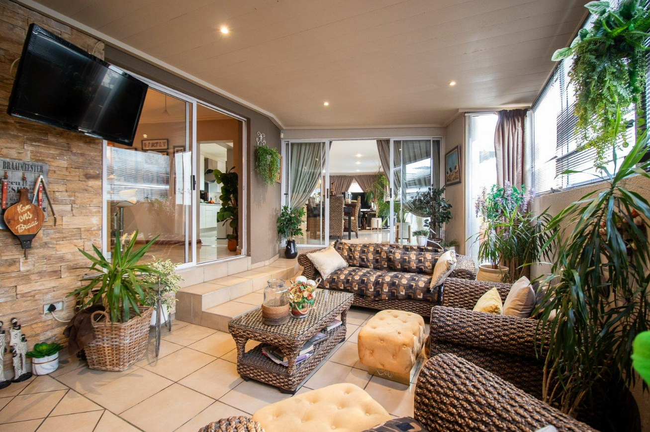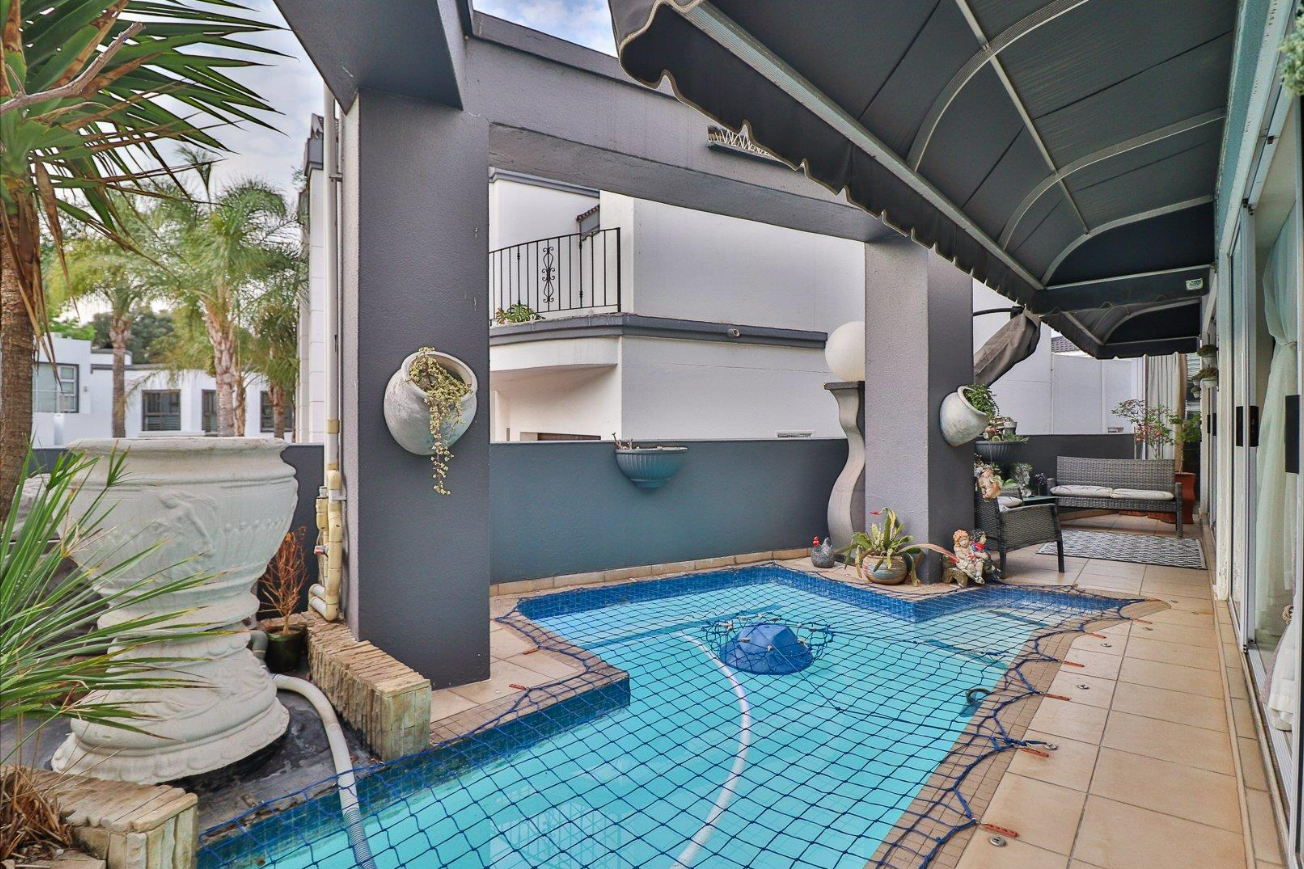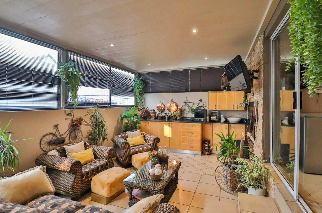 Discover this charming 4-bedroom, 3.5-bathroom residence located in the desirable suburban area of New Redruth, Alberton. The property immediately impresses with its unique modern architectural design featuring curved walls, a striking wooden front door, and a double garage. A large, tiled driveway provides ample parking space, enhancing its kerb appeal. The interior offers a well-appointed kitchen and a dedicated study, perfect for remote work or quiet contemplation. The home seamlessly extends to a bright, enclosed patio or sunroom, providing an ideal space for relaxation or entertaining guests, with excellent indoor-outdoor flow via large sliding glass doors. Accommodation includes four comfortable bedrooms, two of which boast private en-suite bathrooms. Each bedroom is designed for comfort, featuring amenities such as air conditioning units and ceiling fans, as seen in various rooms. The main bathroom is particularly spacious, offering a luxurious corner jetted tub and a separate glass shower, complemented by a double vanity. Outdoor living is a delight with a private plunge pool, complete with a safety net, and a covered patio area under an awning, perfect for enjoying the South African climate. The property also features a built-in bar, ideal for social gatherings, and is pet-friendly. Sustainability is addressed with solar panels, contributing to energy efficiency. Situated within a secure estate, this home offers peace of mind in a well-established community. New Redruth is known for its convenient location within Alberton, providing easy access to local amenities and services. Key Features: * 4 Bedrooms, 3.5 Bathrooms (2 En-suite) * Modern Architectural Design * Private Plunge Pool * Enclosed Patio/Sunroom * Dedicated Study * Double Garage & Ample Parking * Built-in Bar * Pet-Friendly * Solar Panels * Security Estate Living