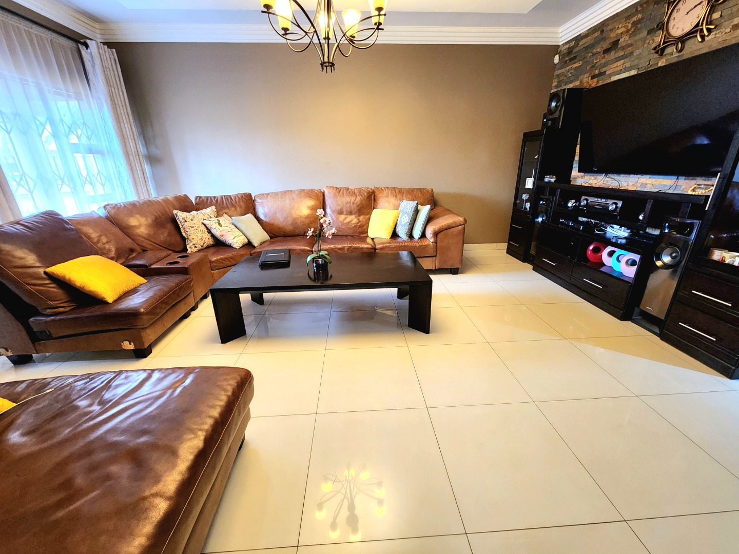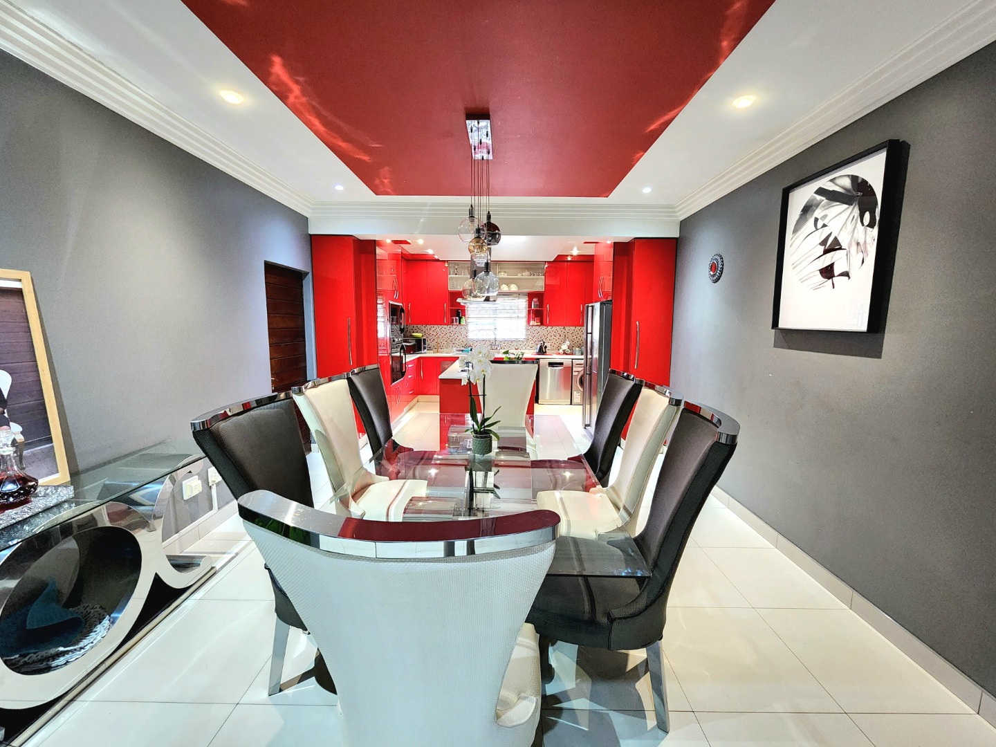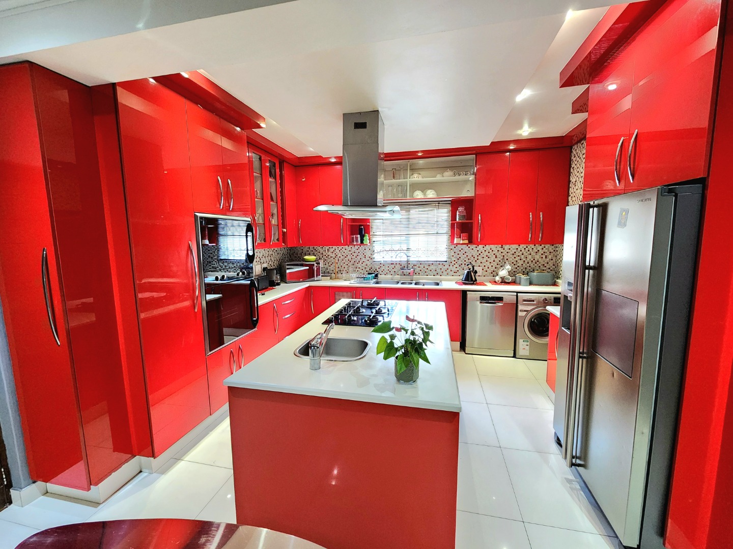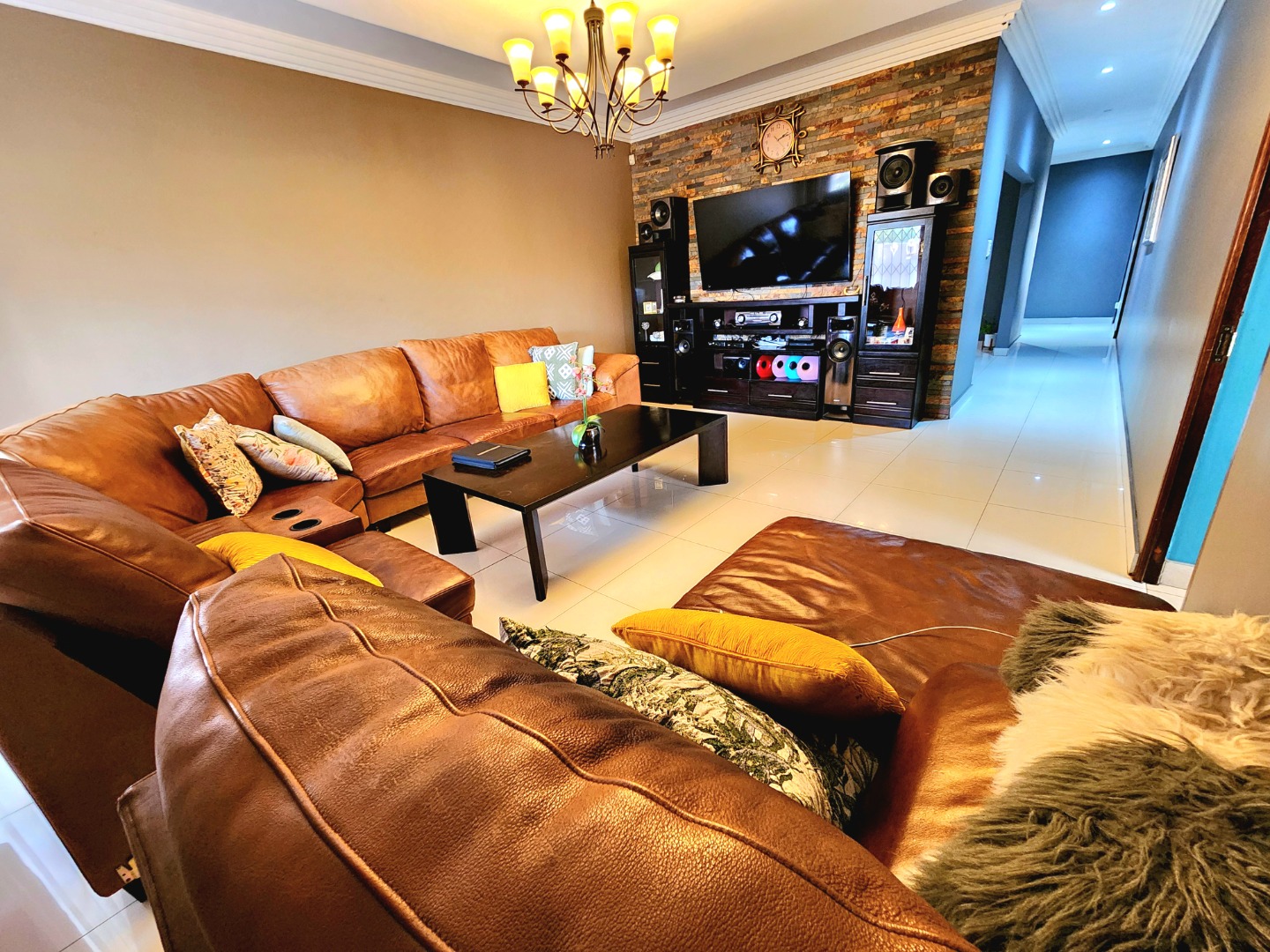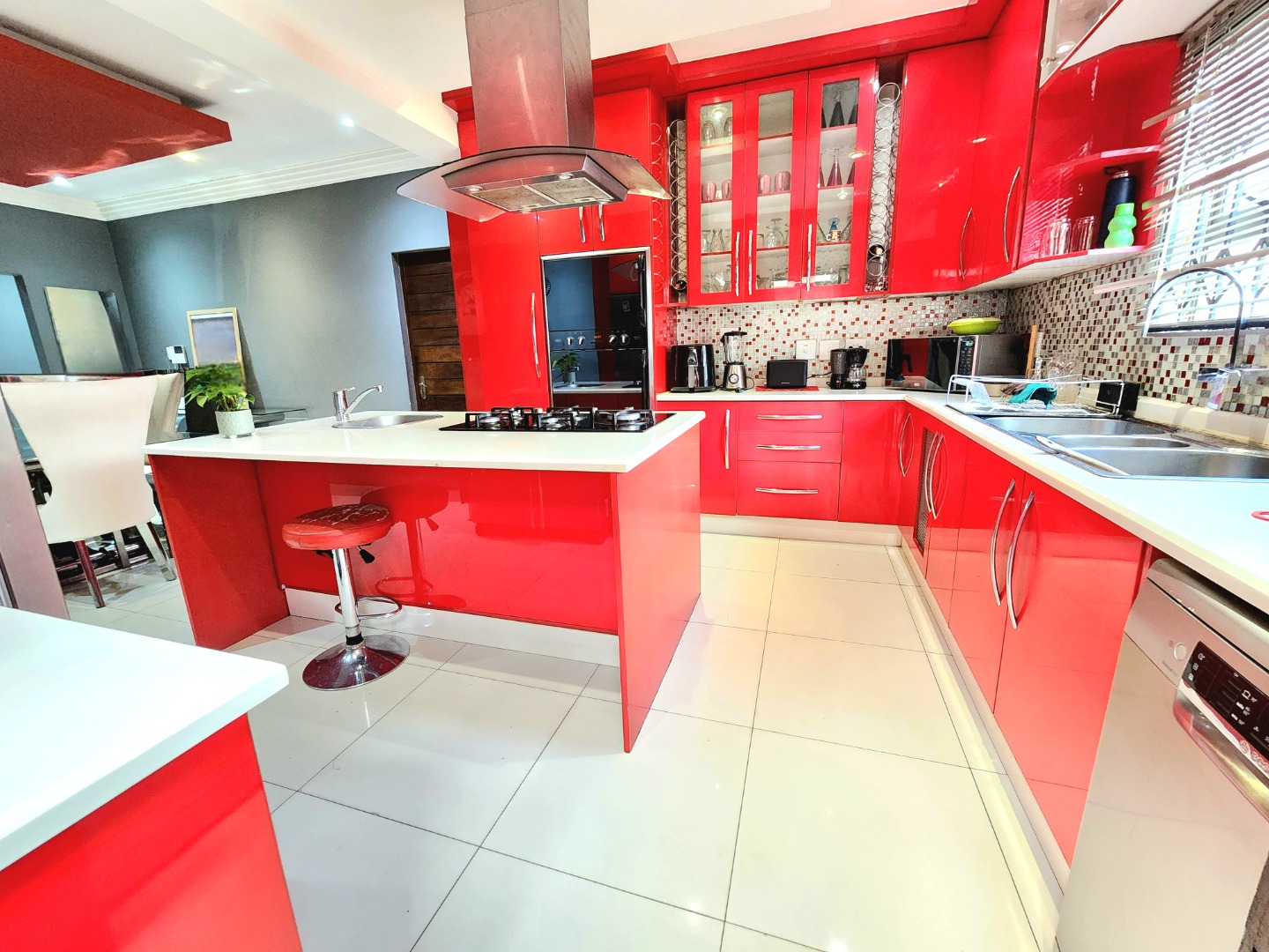Welcome to this exquisite family home in the heart of Palmridge, offering the perfect blend of style, comfort and functionality. Boasting 4 spacious bedrooms and 3 modern bathrooms including en-suites. This home is designed for for elegant family living. Step into a gourmet kitchen that's truly the heart of a home, featuring high-gloss built-in cupboards, a chic breakfast nook, a central kitchen island, gas stove, extractor fan, and sleek finishes that will inspire your chef. The open plan lounge and dining area flows effortlessly, perfect for entertaining, or cozy family night.