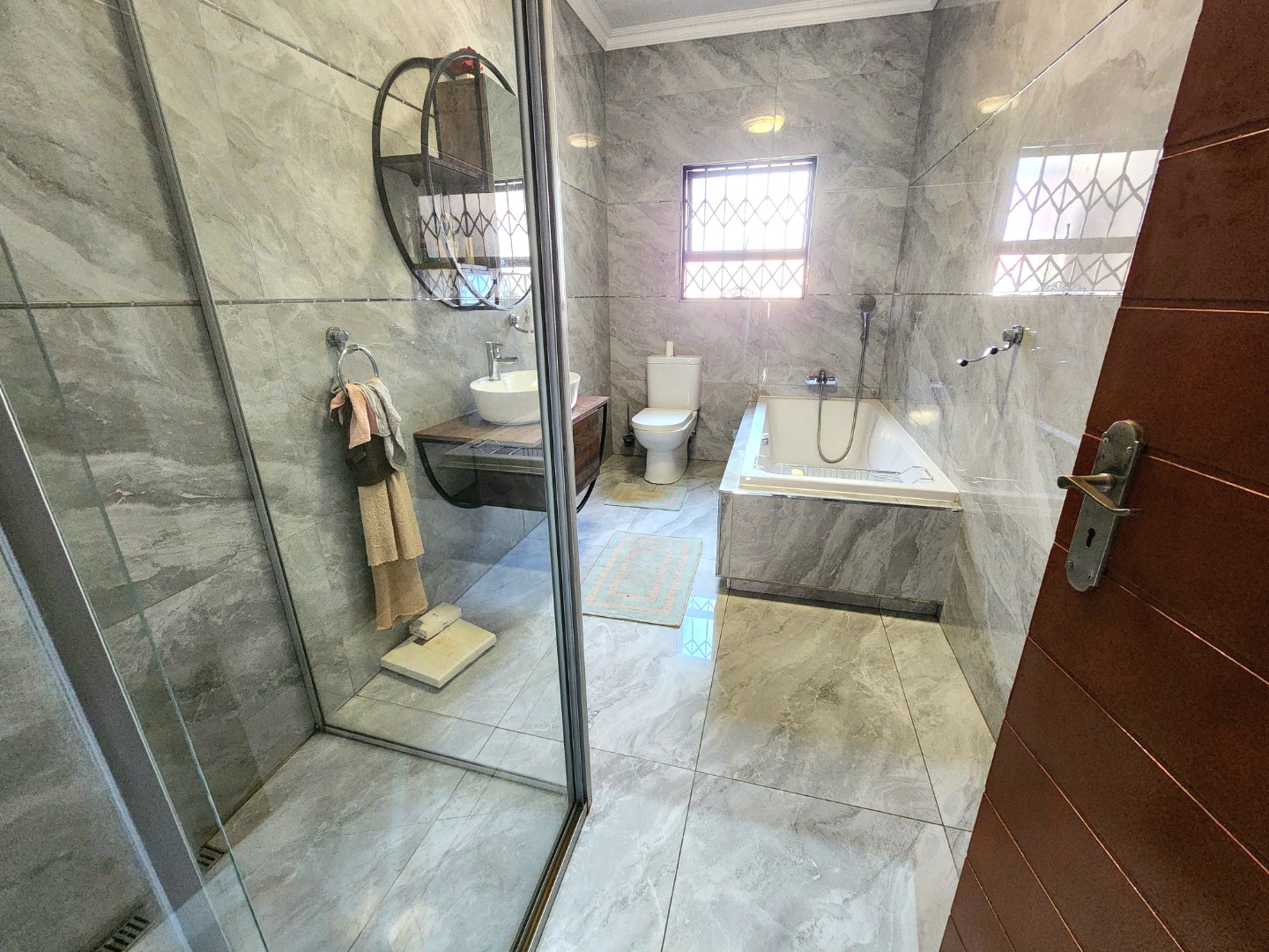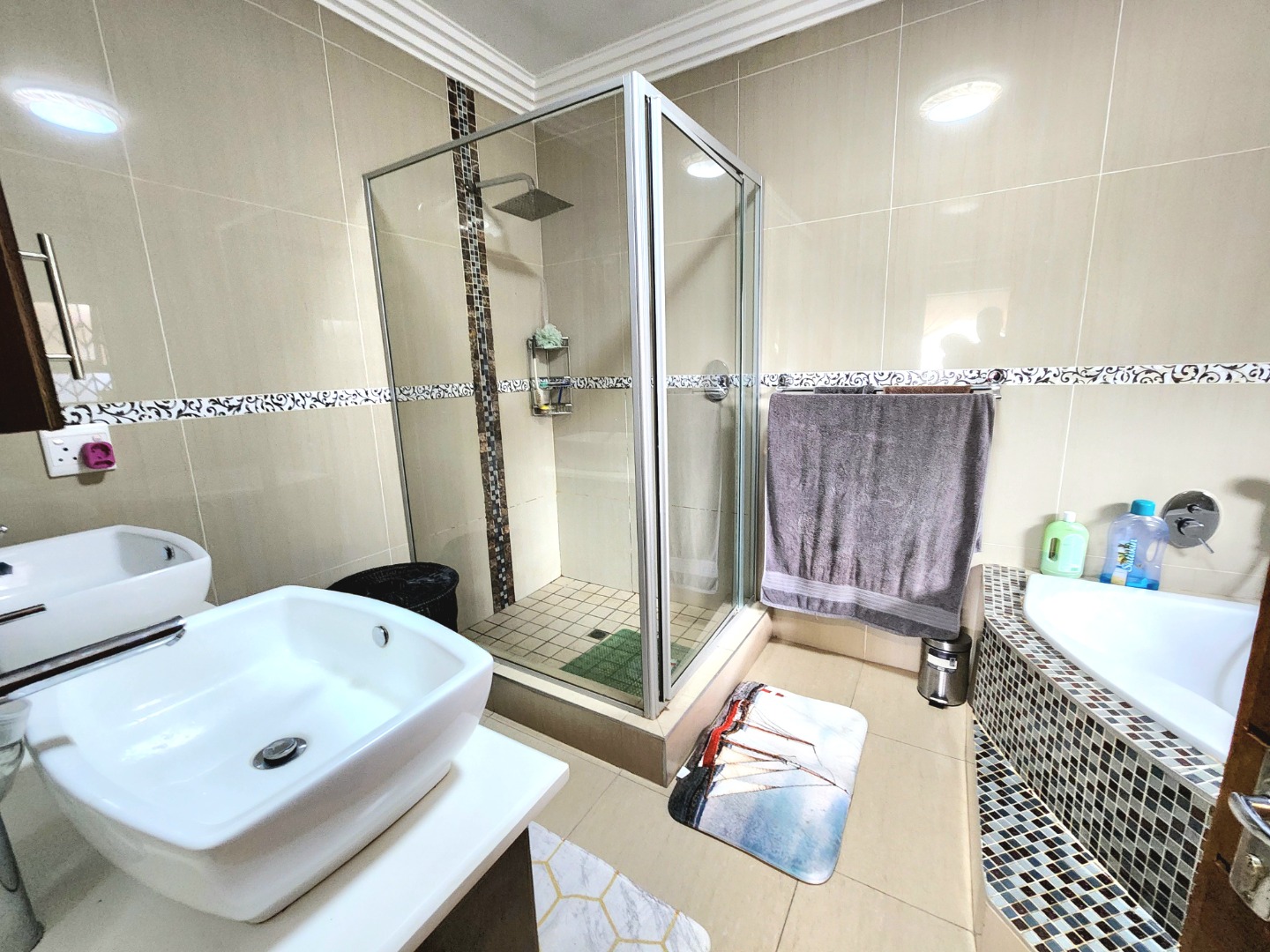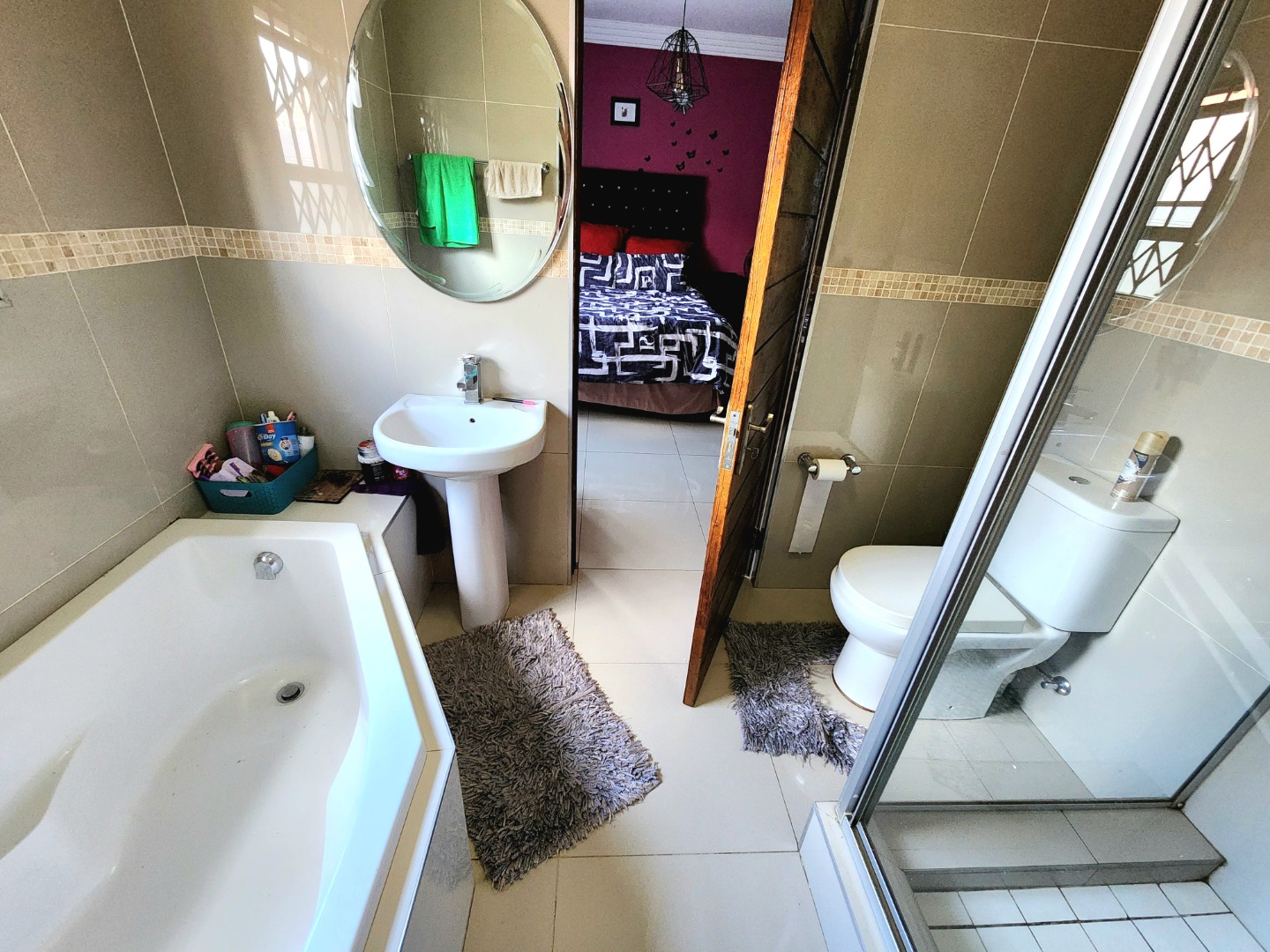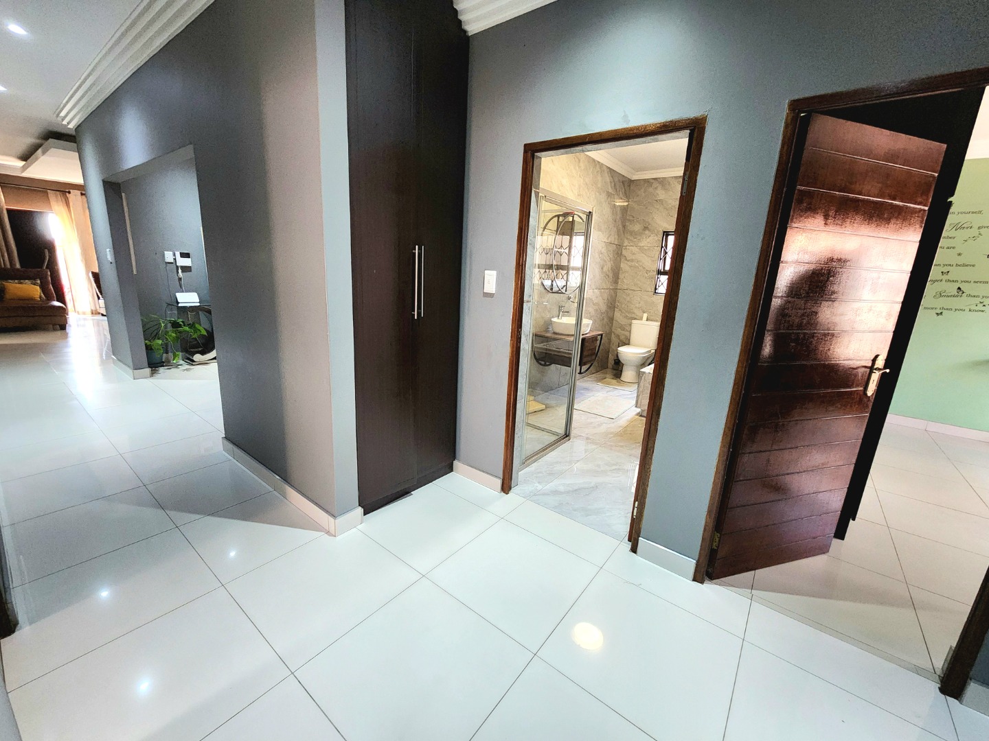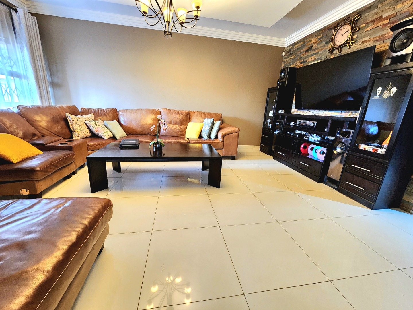 Welcome to this exquisite family home in the heart of Palmridge, offering the perfect blend of style, comfort and functionality. Boasting 4 spacious bedrooms and 3 modern bathrooms including en-suites. This home is designed for for elegant family living. Step into a gourmet kitchen that's truly the heart of a home, featuring high-gloss built-in cupboards, a chic breakfast nook, a central kitchen island, gas stove, extractor fan, and sleek finishes that will inspire your chef. The open plan lounge and dining area flows effortlessly, perfect for entertaining, or cozy family night.