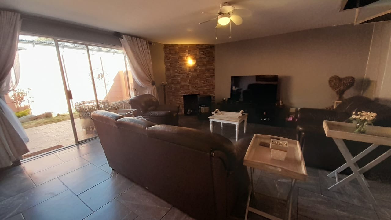 The exterior of the property is neat and well-maintained, featuring a warm-toned finish and tiled roofing. Ample parking is available with garages and additional covered parking, catering comfortably to residents and visitors. Security is a key feature, with the complex offering controlled access, electric fencing, and additional security measures for complete peace of mind.