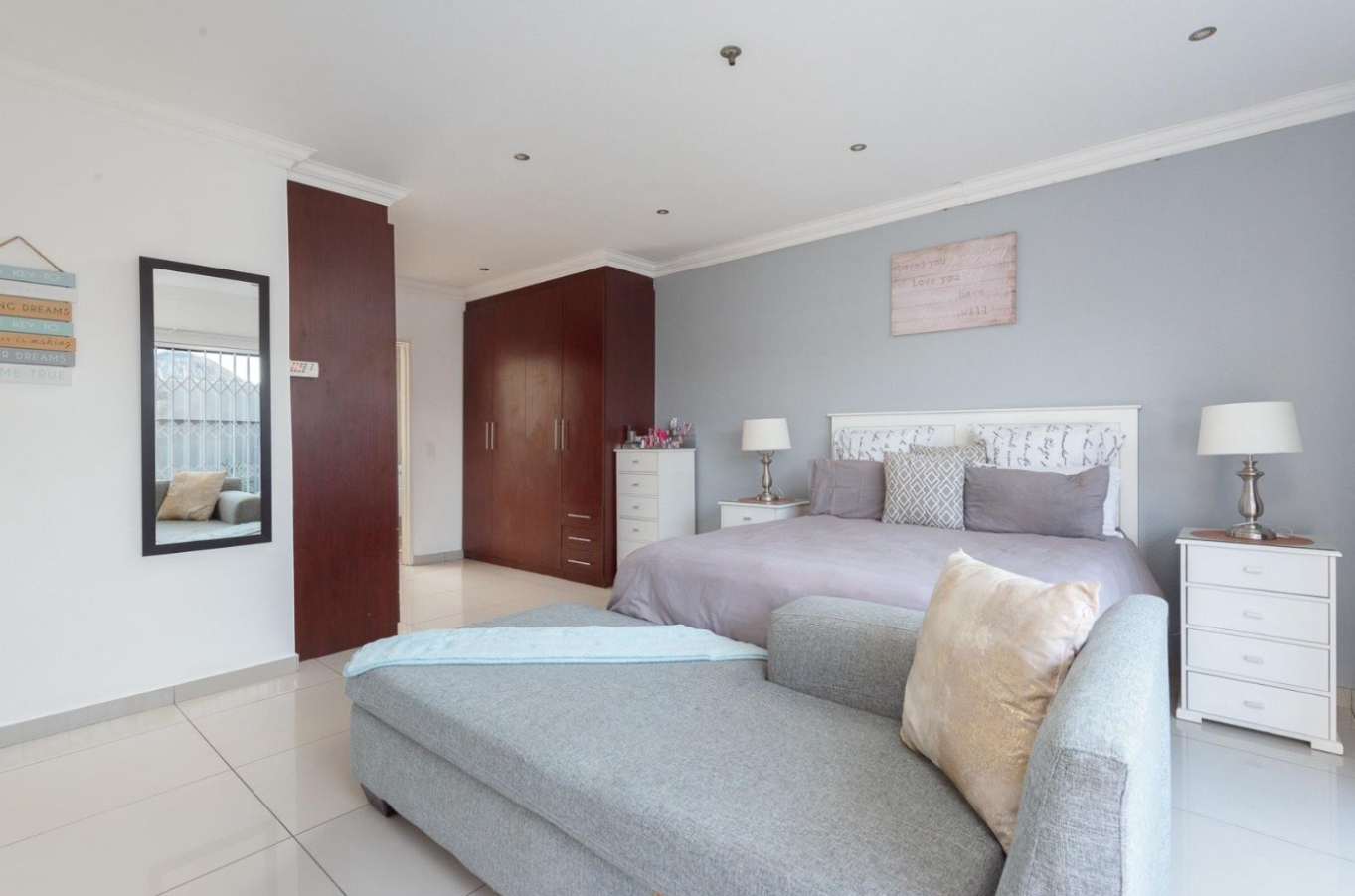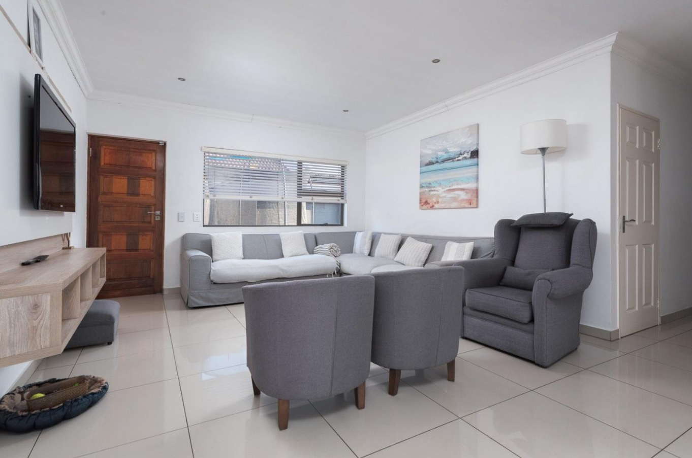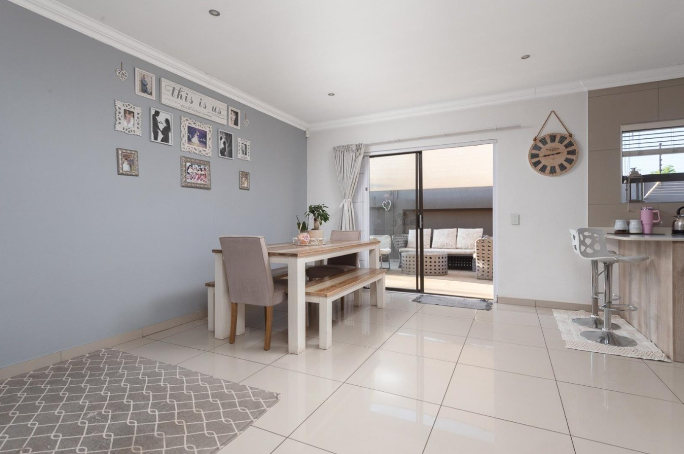 Outdoors, the property features a patio perfect for alfresco dining and a low-maintenance garden with artificial turf, ideal for those seeking a neat and tidy exterior. Pets are allowed, making this a welcoming home for animal lovers. The property is equipped with a solar geyser for energy efficiency and fibre connectivity, ensuring modern convenience.