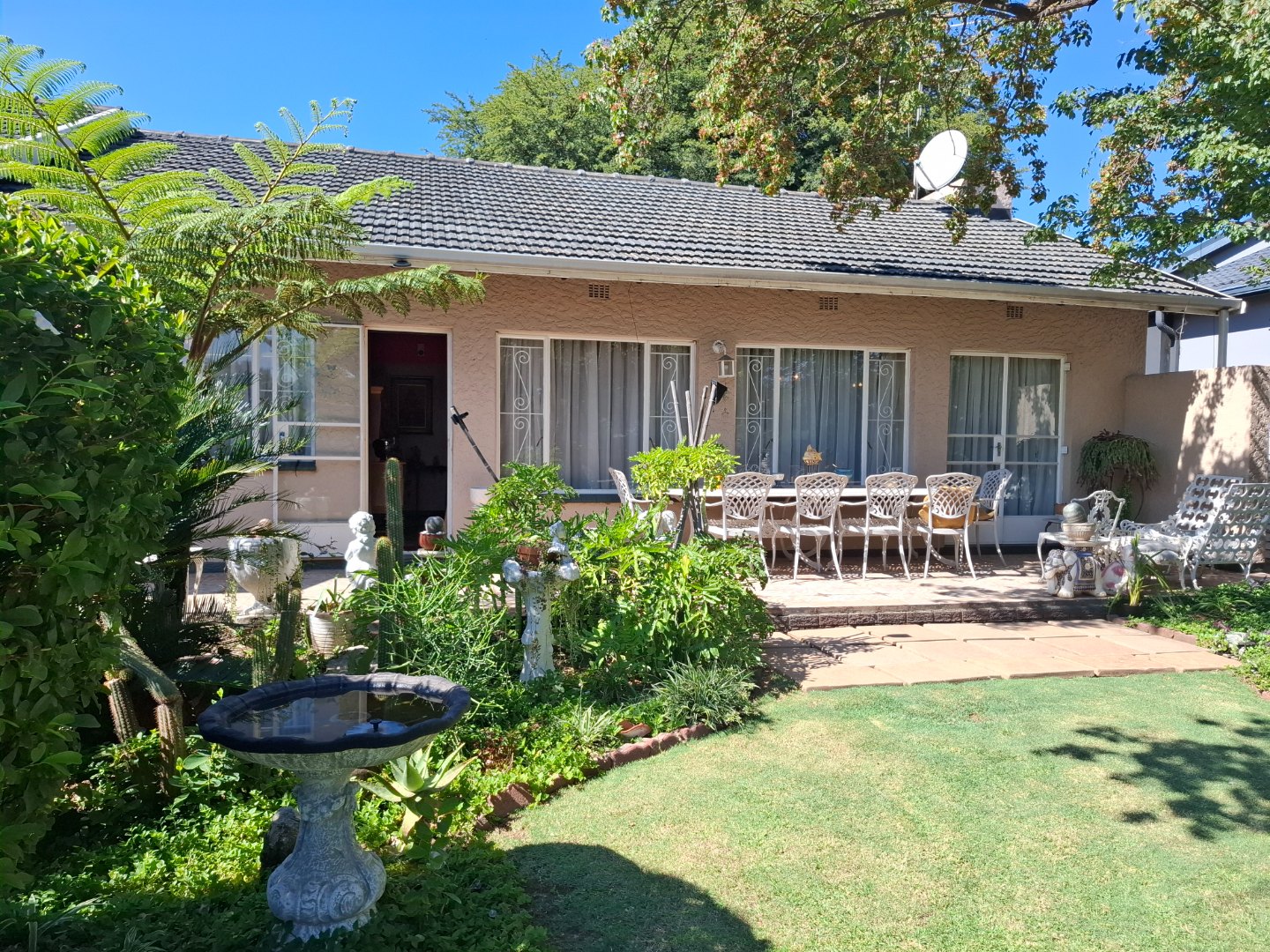 Discover this spacious residential property located in the established suburban area of Raceview, Alberton. Boasting an impressive Erf size of 1078.00 sqm and a generous floor size of 334.00 sqm, this home offers ample space for comfortable family living and entertaining. The exterior presents a well-maintained garden featuring lush greenery, mature trees, and diverse planting, creating a serene outdoor environment. A large tiled patio provides an ideal setting for outdoor dining and relaxation, complementing the home's inviting curb appeal. Inside, the residence features a functional layout designed for everyday convenience. The property includes a dedicated lounge and a dining room, both benefiting from abundant natural light through large windows. While currently showcasing a traditional aesthetic, these spaces offer significant potential for modern updates to suit contemporary tastes. The kitchen is well-appointed, providing a practical area for culinary activities. Accommodation comprises four comfortable bedrooms, ensuring ample private space for all residents. There are two bathrooms, with one being an en-suite, offering convenience and privacy. These bathrooms are spacious, featuring separate shower and bathtub facilities, double sinks, and built-in storage, ready for a personalized renovation to enhance their appeal. Further enhancing the property's functionality are the outdoor amenities, including a double garage and an attached carport, providing secure parking for multiple vehicles. The paved driveway ensures easy access. Additional features include a dedicated laundry area, staff quarters, and outside toilets, adding to the home's practical offerings. Security is addressed with burglar bars on windows, providing peace of mind. Raceview is a sought-after suburban neighbourhood in Alberton, known for its family-friendly atmosphere and convenient access to local amenities. This property represents a significant opportunity to acquire a substantial home with excellent potential for customisation and modernisation in a desirable location. Key Features: * 4 Bedrooms, 2 Bathrooms (1 En-suite) * Spacious Lounge and Dining Room * Well-maintained Garden with Mature Trees * Large Tiled Patio for Outdoor Living * Double Garage and Attached Carport * Dedicated Laundry Area * Staff Quarters and Outside Toilets * Burglar Bars for Enhanced Security * Generous 1078 sqm Erf Size