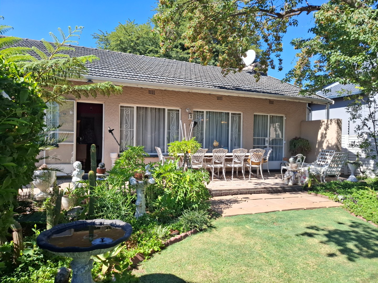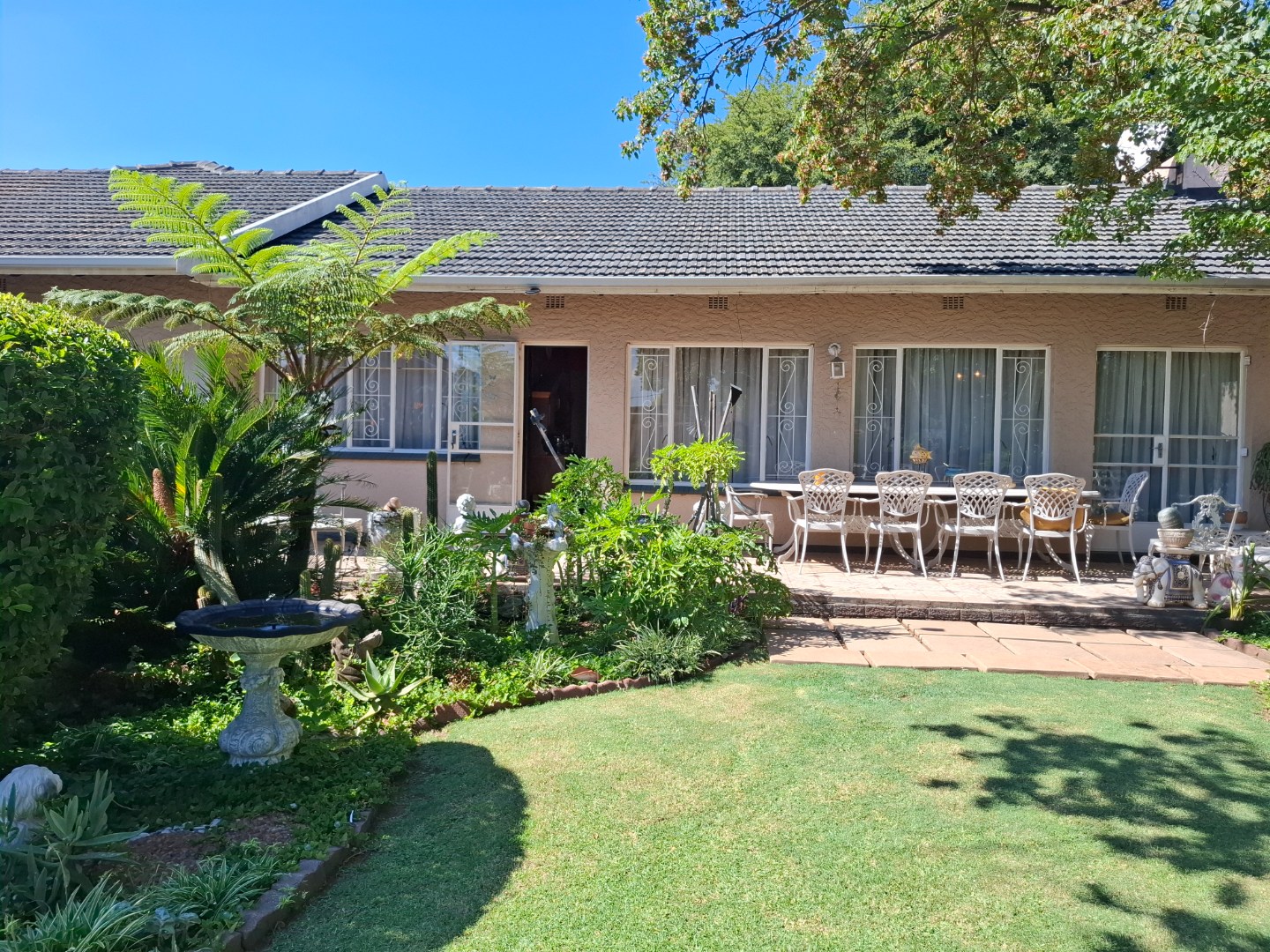 Discover this spacious residential property located in the established suburban area of Raceview, Alberton. Boasting an impressive Erf size of 1078.00 sqm and a generous floor size of 334.00 sqm, this home offers ample space for comfortable family living and entertaining. The exterior presents a well-maintained garden featuring lush greenery, mature trees, and diverse planting, creating a serene outdoor environment. A large tiled patio provides an ideal setting for outdoor dining and relaxation, complementing the home's inviting curb appeal. Inside, the residence features a functional layout designed for everyday convenience. The property includes a dedicated lounge and a dining room, both benefiting from abundant natural light through large windows. While currently showcasing a traditional aesthetic, these spaces offer significant potential for modern updates to suit contemporary tastes. The kitchen is well-appointed, providing a practical area for culinary activities. Accommodation comprises four comfortable bedrooms, ensuring ample private space for all residents. There are two bathrooms, with one being an en-suite, offering convenience and privacy. These bathrooms are spacious, featuring separate shower and bathtub facilities, double sinks, and built-in storage, ready for a personalized renovation to enhance their appeal. Further enhancing the property's functionality are the outdoor amenities, including a double garage and an attached carport, providing secure parking for multiple vehicles. The paved driveway ensures easy access. Additional features include a dedicated laundry area, staff quarters, and outside toilets, adding to the home's practical offerings. Security is addressed with burglar bars on windows, providing peace of mind. Raceview is a sought-after suburban neighbourhood in Alberton, known for its family-friendly atmosphere and convenient access to local amenities. This property represents a significant opportunity to acquire a substantial home with excellent potential for customisation and modernisation in a desirable location. Key Features: * 4 Bedrooms, 2 Bathrooms (1 En-suite) * Spacious Lounge and Dining Room * Well-maintained Garden with Mature Trees * Large Tiled Patio for Outdoor Living * Double Garage and Attached Carport * Dedicated Laundry Area * Staff Quarters and Outside Toilets * Burglar Bars for Enhanced Security * Generous 1078 sqm Erf Size