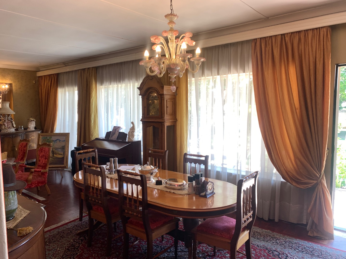 This distinguished residential property, situated in the established suburb of Raceview, Alberton, presents a substantial living opportunity. Boasting an impressive Erf size of 1078.00 sqm, the residence immediately conveys a sense of grandeur with its well-maintained front garden, mature trees, and a paved driveway offering convenient off-street parking. The exterior is fortified with robust palisade fencing and prominent security signage, ensuring a secure environment for its occupants. Encompassing a generous Floor Size of 334.00 sqm, the interior spaces are characterized by a traditional and opulent aesthetic. The formal lounge and dining room feature ornate furnishings, including a stone fireplace, elegant chandeliers, and rich fabrics, creating an atmosphere of classic sophistication. Large windows throughout these areas ensure ample natural light, enhancing the spacious feel. The kitchen, while functional with extensive wooden cabinetry and a double sink, offers significant potential for modern customisation. The residence comprises four well-proportioned bedrooms and two bathrooms, providing comfortable accommodation for a family. Practical amenities include a dedicated laundry area and staff quarters, catering to comprehensive household needs. A guest toilet is also available for convenience. The property benefits from a double garage, offering secure parking and additional storage solutions. Beyond the interior, the property features a well-kept garden and paved areas, ideal for outdoor enjoyment. An inviting outdoor seating area provides a private space for relaxation. Security is a paramount consideration, evidenced by the comprehensive measures in place, including 24-hour security services, security gates, and burglar bars, ensuring peace of mind for residents. Key Features: * 4 Bedrooms, 2 Bathrooms * 1 Lounge, 1 Dining Room * Erf Size: 1078.00 sqm, Floor Size: 334.00 sqm * Double Garage * Staff Quarters & Laundry * Well-maintained Garden & Paved Driveway * 24-Hour Security, Security Gates, Burglar Bars * Traditional, spacious interiors